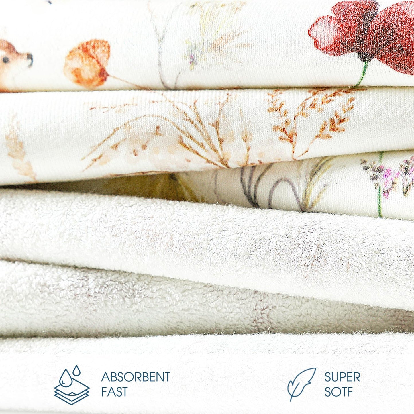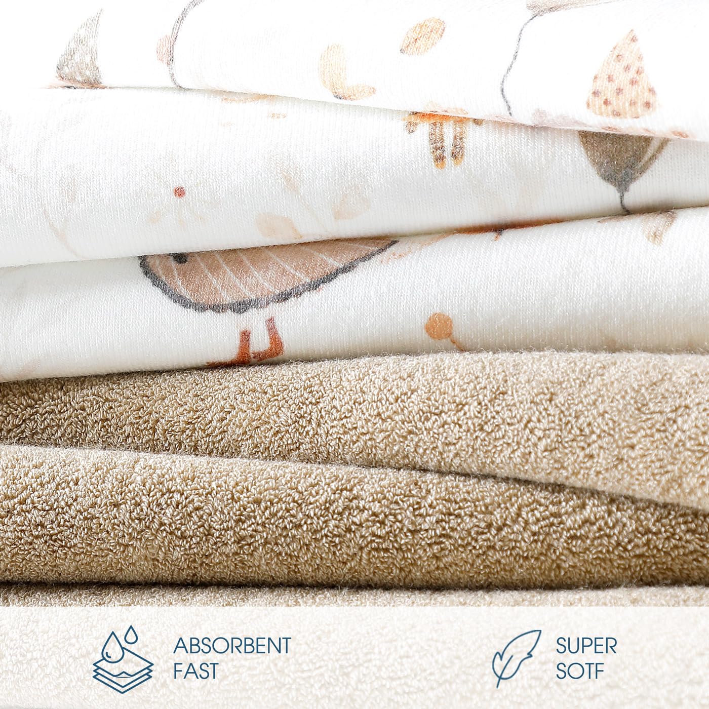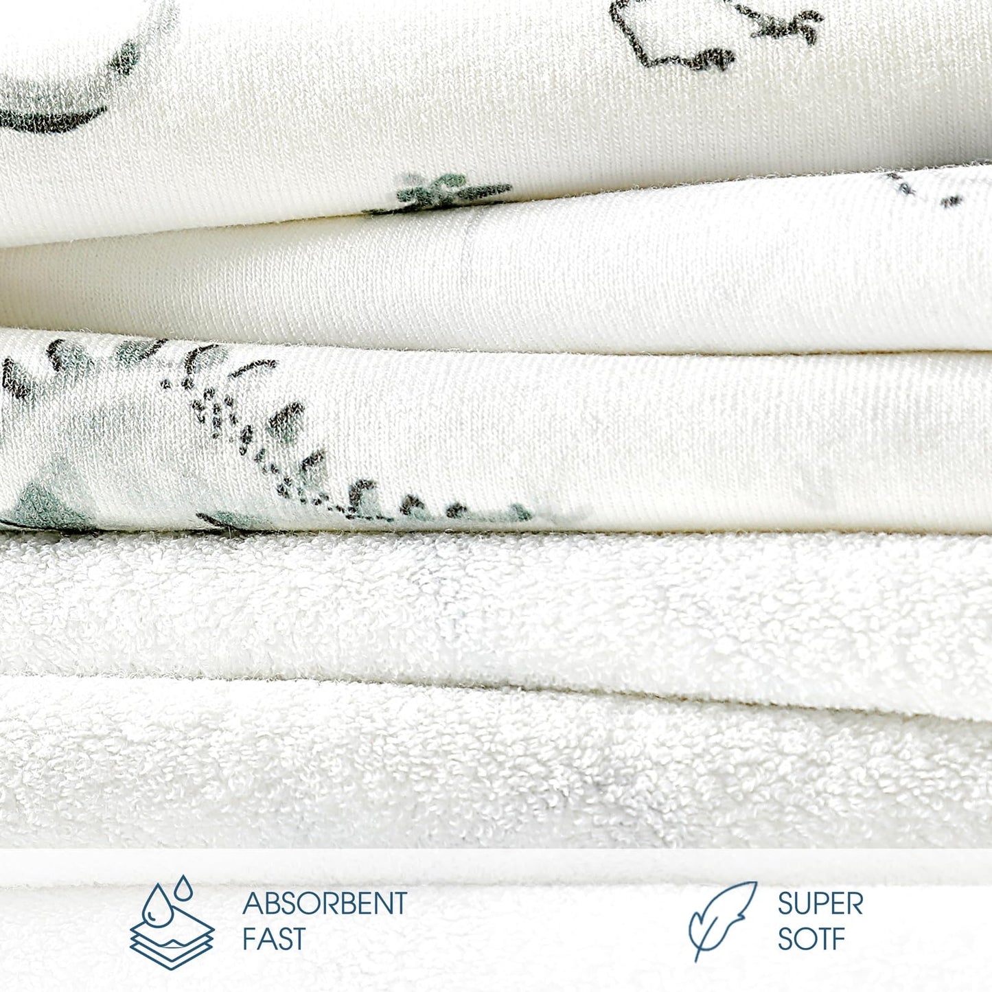 - Soft and Absorbent Fast: GRSSDER baby bath towels are made of super soft, high-weight cotton blend knit terry cloth which is three times more absorbent than a single material. Quickly absorb the moisture from baby's skin, ensuring your baby stays warm and dry after each bath.