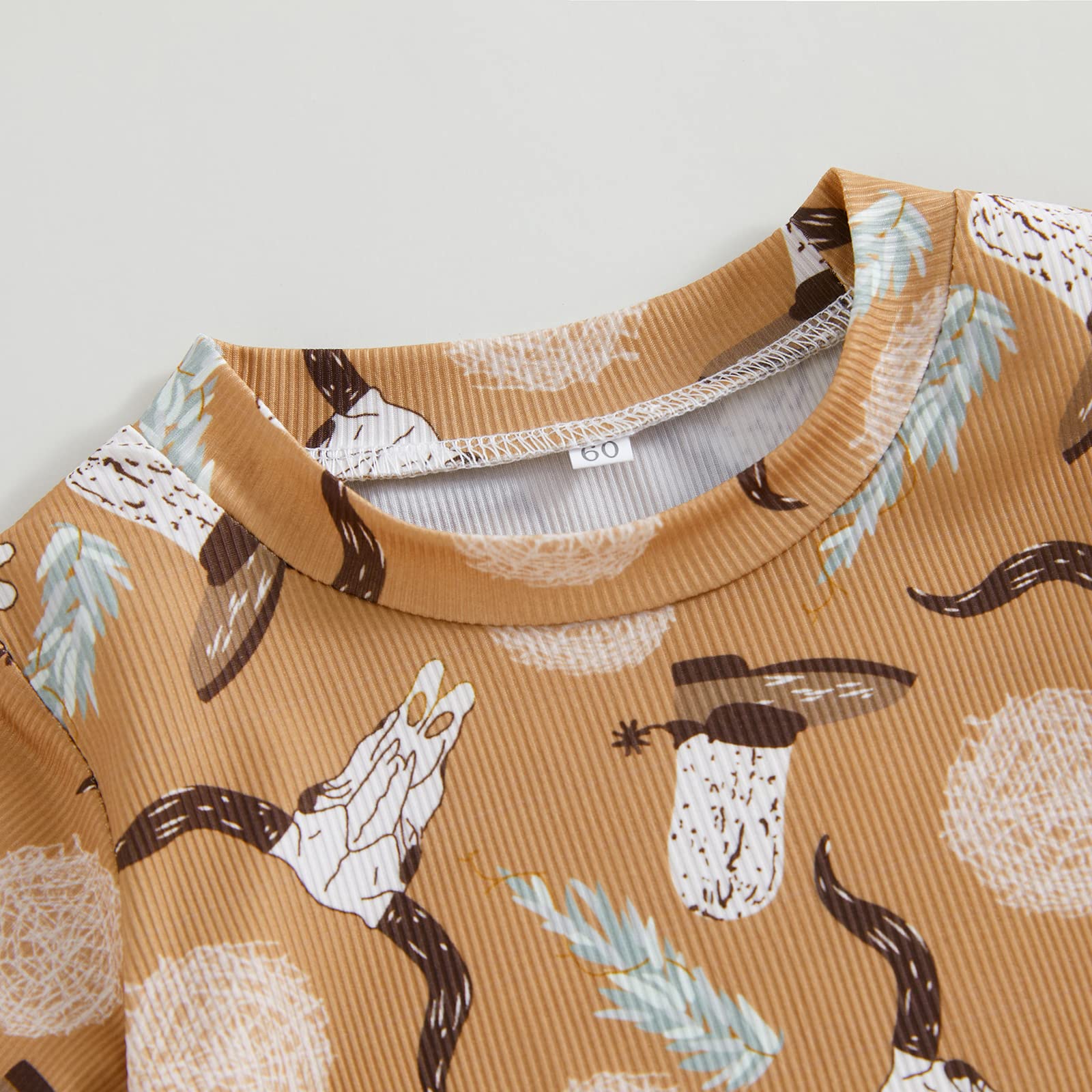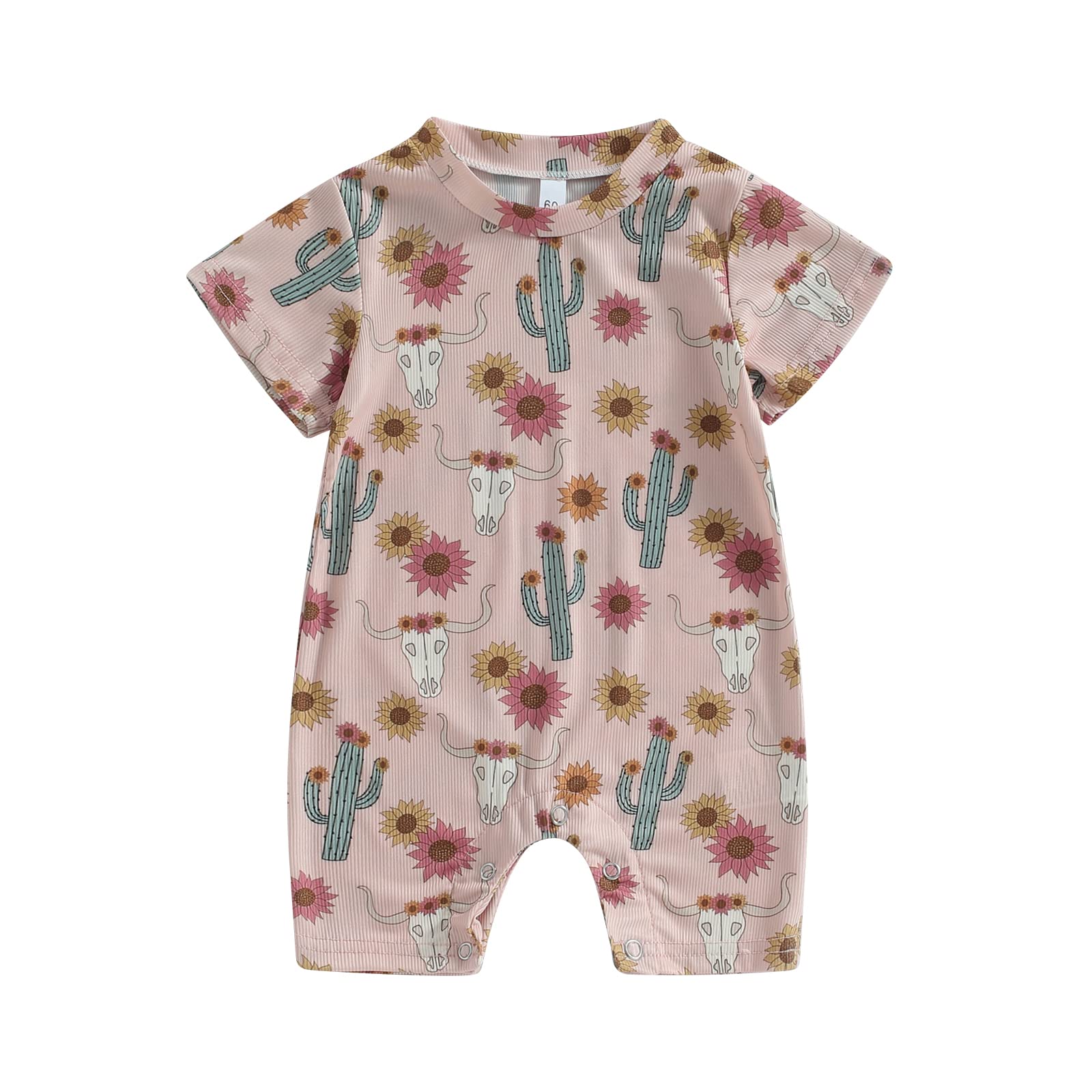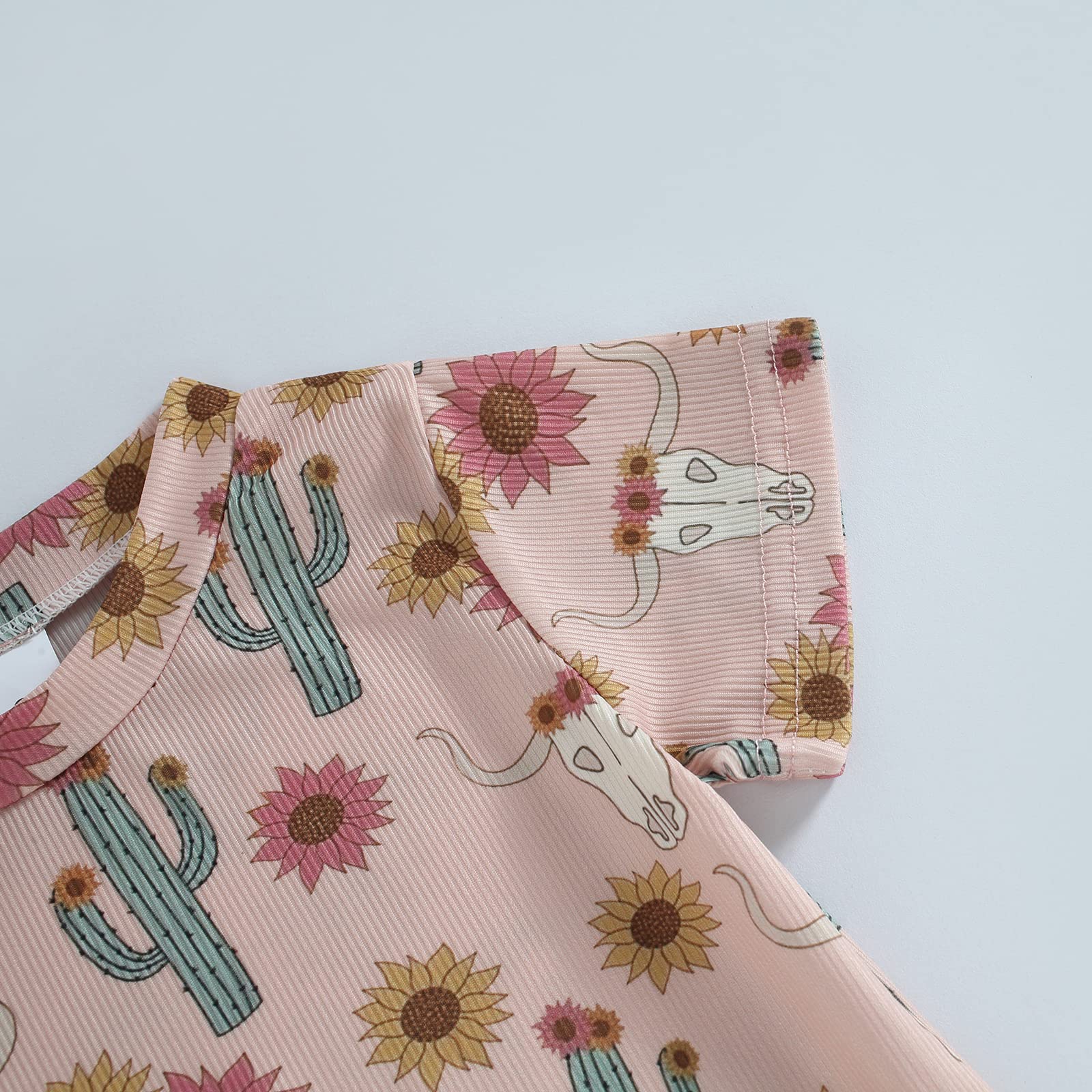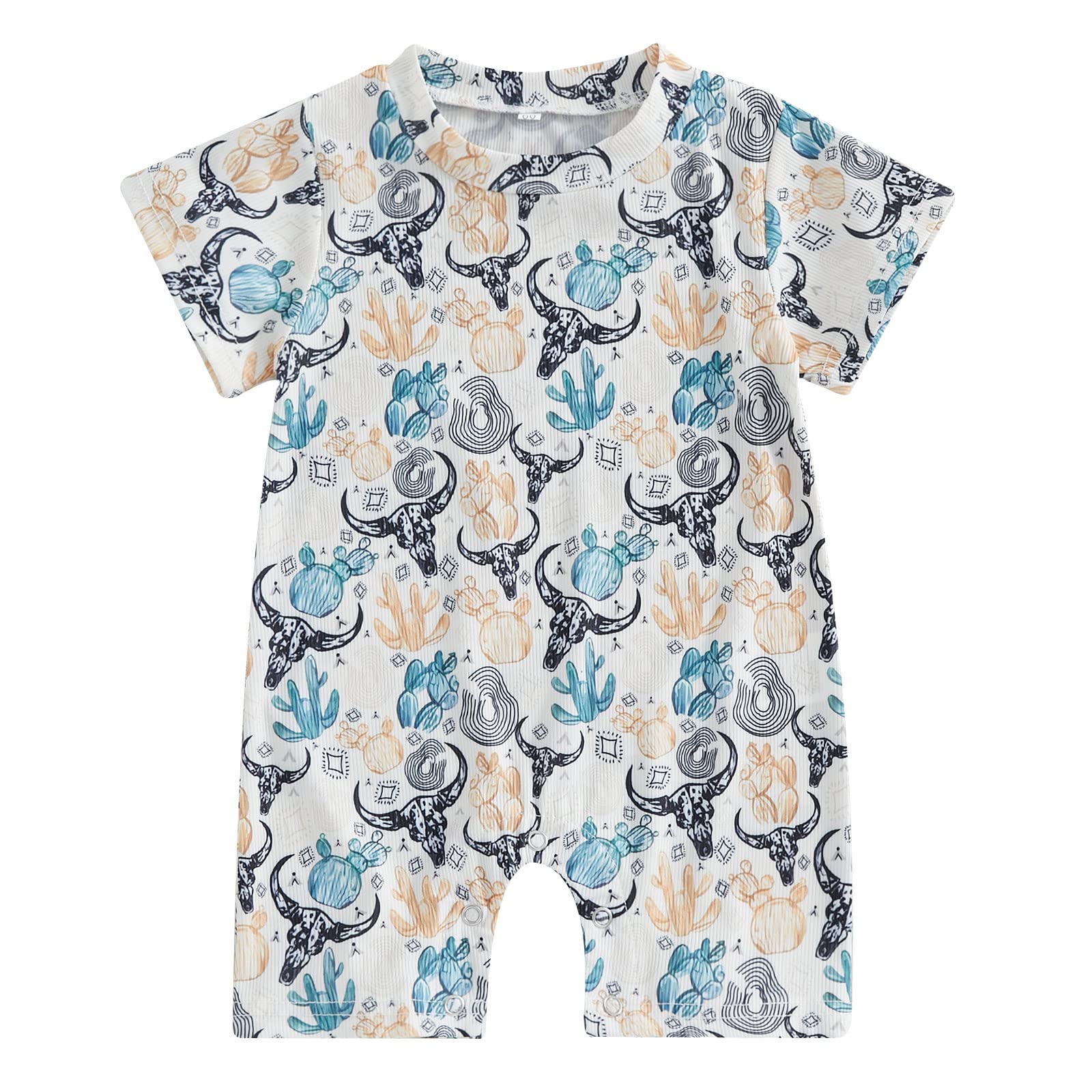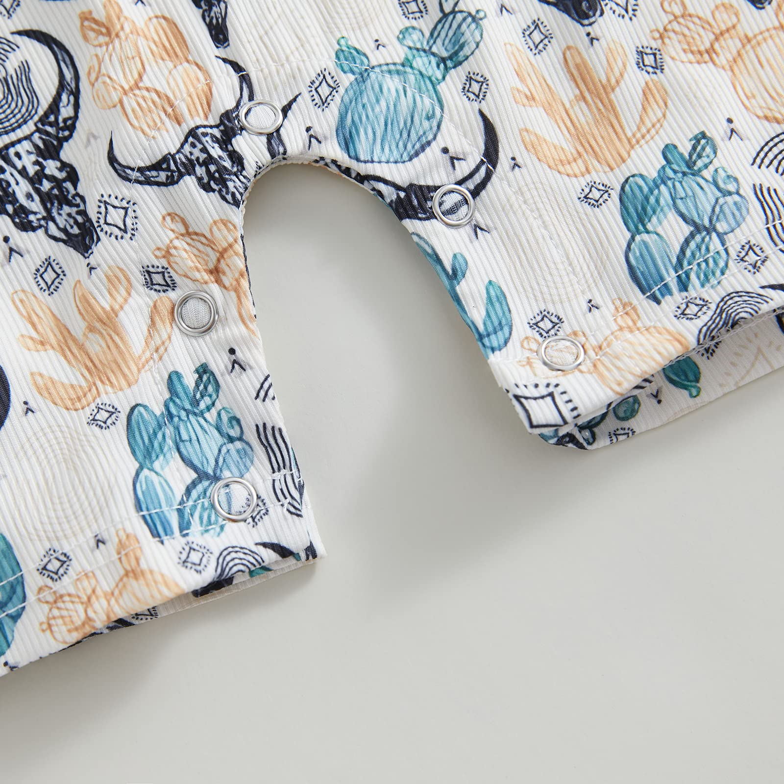 - CUTE DESIGN: The cute western baby girl clothes, infant western summer clothes, western baby girl clothes boho, western baby boy newborn clothes summer, cute western baby boy summer clothes has short sleeve, round neck, bull/ cactus/ horse print, and the short jumpsuit with crotch buttons is for spring summer and fall.
