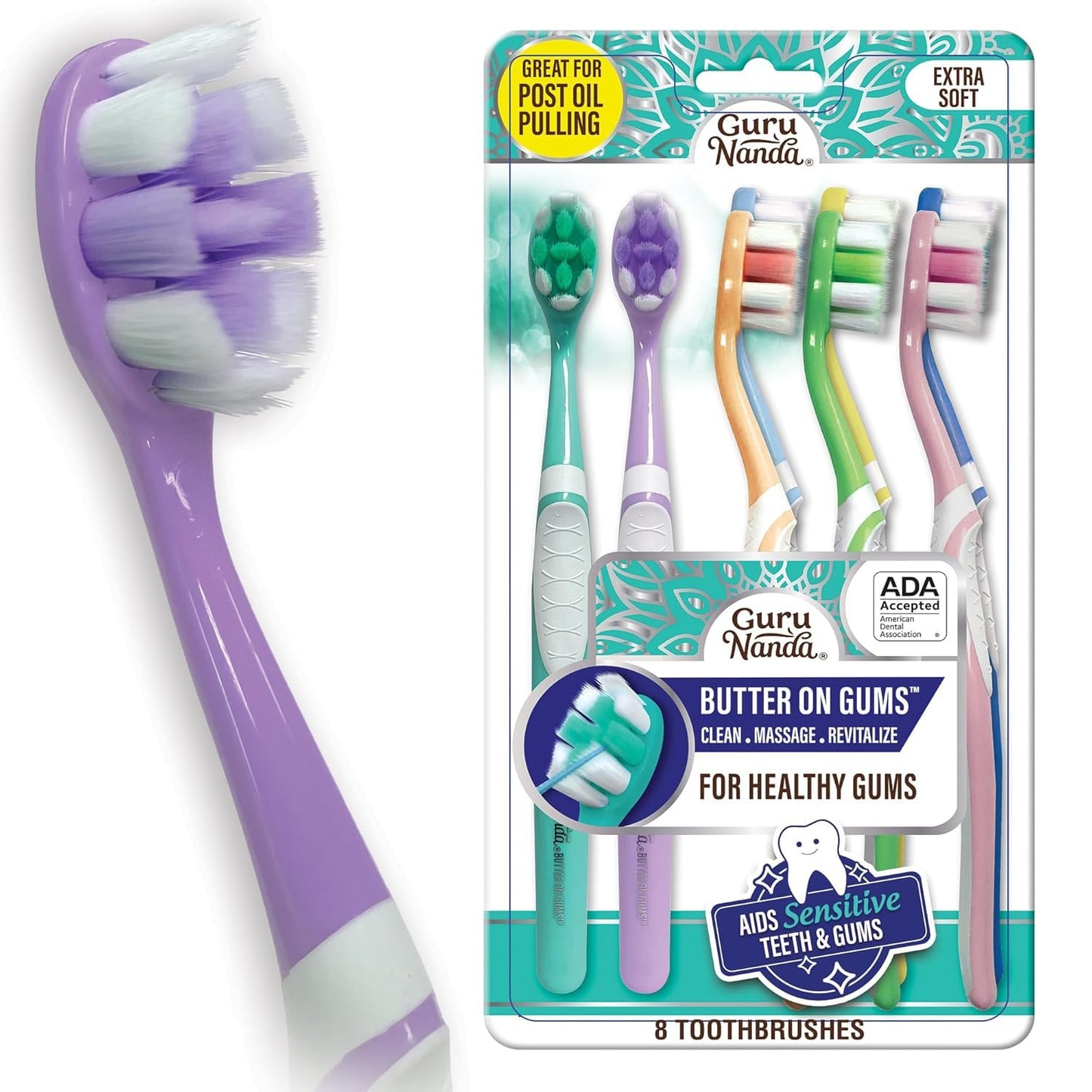 - ADA ACCEPTED FOR SENSITIVE GUMS: GuruNanda Butter on Gums Toothbrush is ADA Accepted, meeting high oral care standards. With 8000+ Softex ultra-soft bristles, it’s ideal for sensitive gums—effectively helps remove plaque & gently polishes teeth