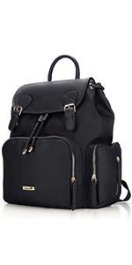 - Trendy and Functional: It's super stylish so doesn't actually look like a baby bag at all. Lots of different compartments so that you can find things easily - including laptop pocket(fits for ≤14"), built-in 1 big insulated pocket, and 3 external insulated pockets, wet dry pocket, etc. The bag has 1 keychain, so you don't have to dump out the whole backpack to find keys is awesome!