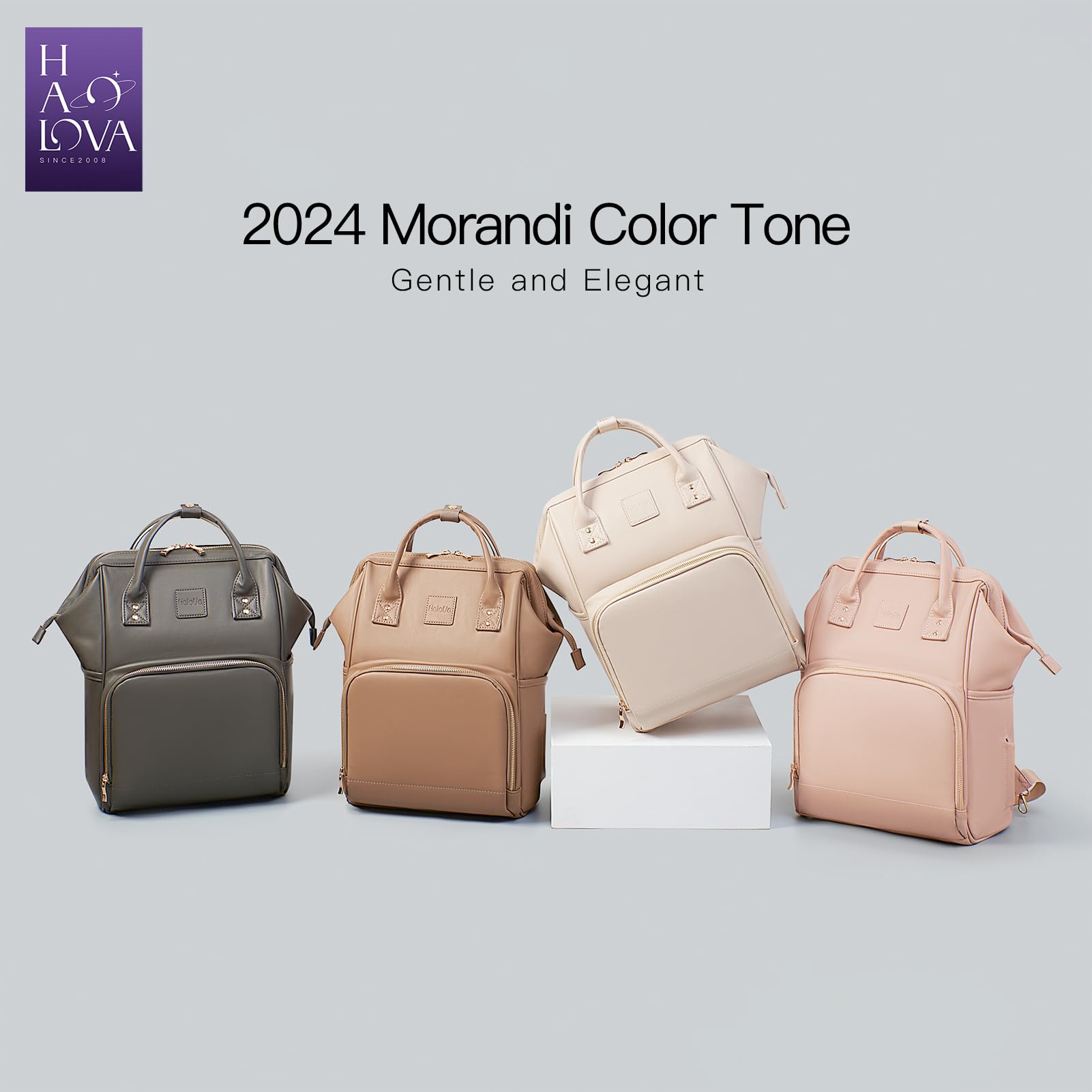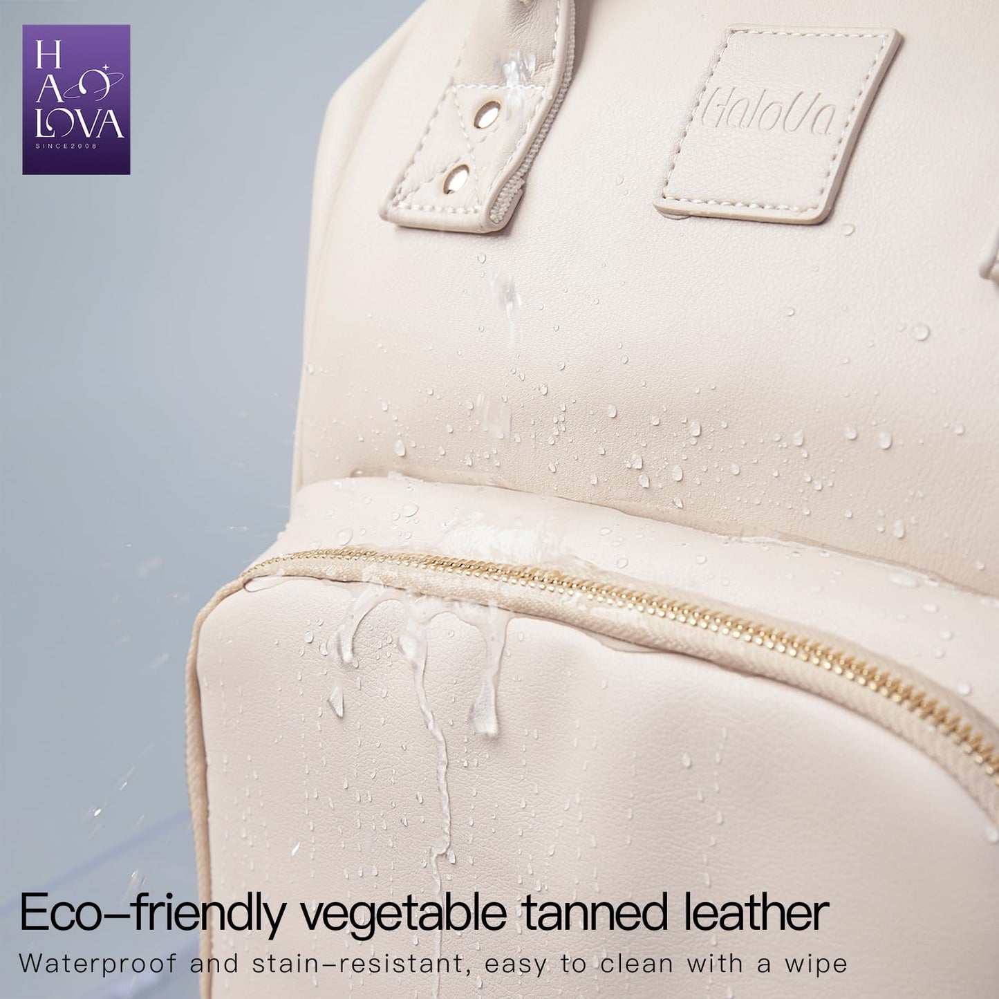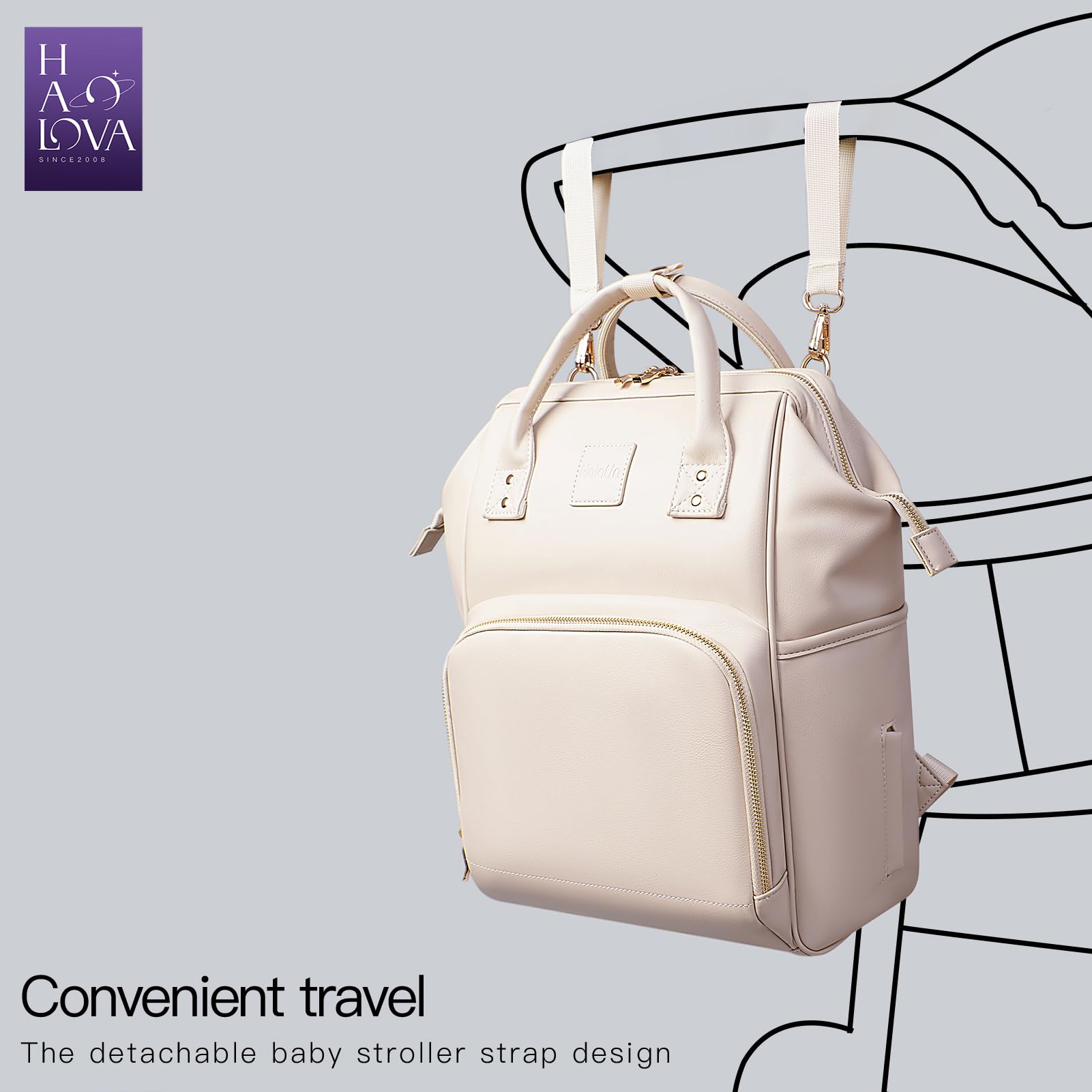 HaloVa Diaper Bag, Leather Backpack Eco-Friendly Leather Daddy Mommy Baby Bag with 24L Capacity & Multiple Pockets