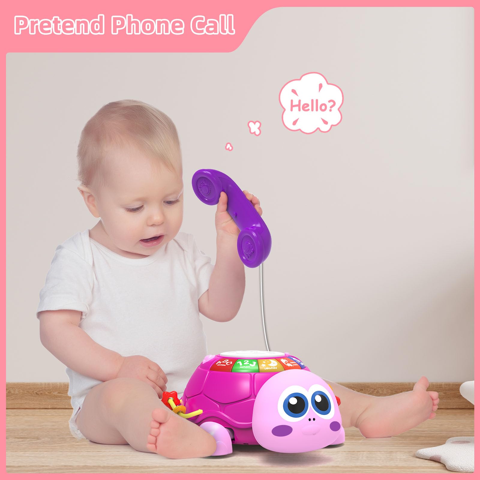 - 【Baby Pretend Phone Call Toy】Our baby crawling toy with special phone games, realistic dialling sound, 7 bells and greetings "hello" and "goodbye", so that the baby into the phone scene, improve the baby's desire to communicate, exercise muscle memory, take home and baby to enjoy happy parent-child time!