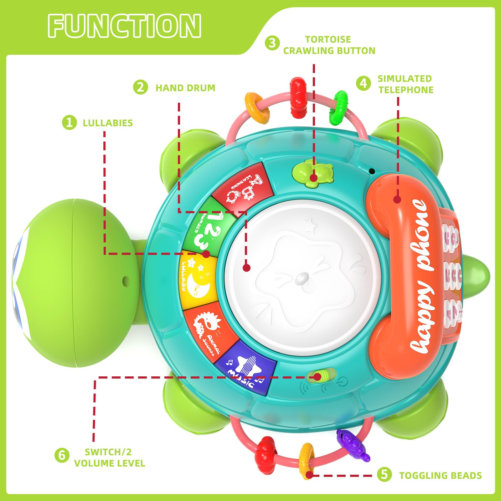 - 【Multi-Functional Turtle Learning Toys】Our turtle toy can help babies learn numbers and letters, it has nice lights, fun music, and practice cute finger skills with different buttons. It encourages baby to crawl and walk, which helps babies' motor skills, visual development, and coordination.