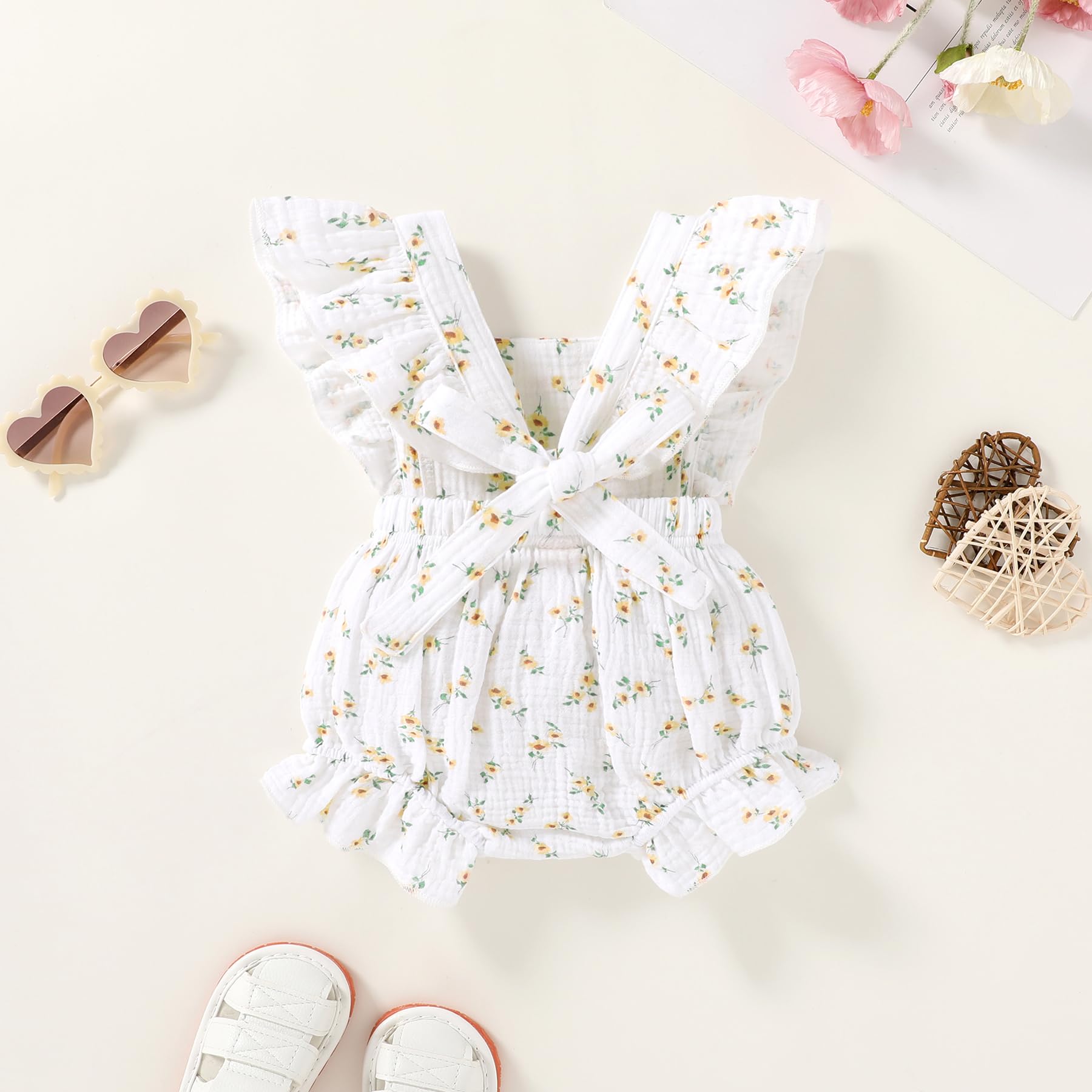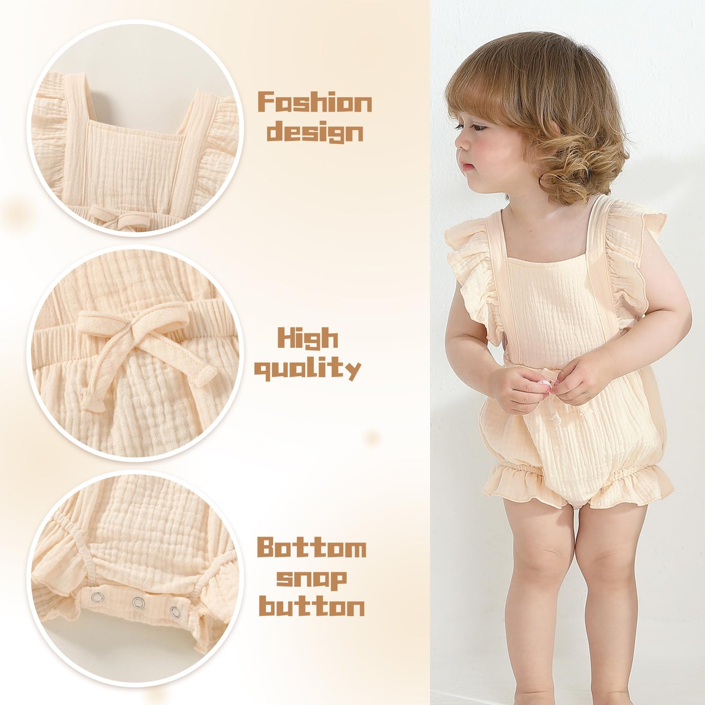 - Design: Toddler girl summer clothes is design with adjustable strap at back, more fits your baby's body. Baby rompers are equipped with flying sleeves, which make your little one look more cute