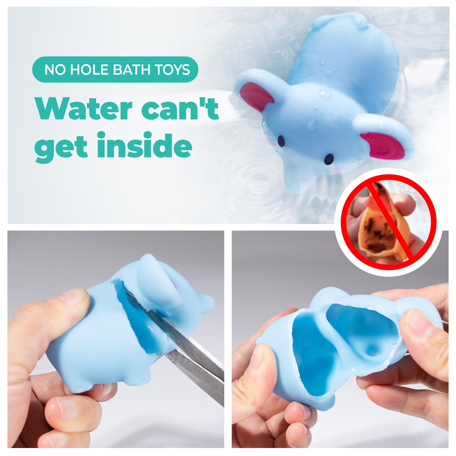 - BABY BATH TOYS - Hely Cancy no hole bath Toys are sealess that don't trap water inside! Also, the bathtub toys are easy to clean and dishwasher-safe. Not only use as baby bath toys, but also can play out of the tub!