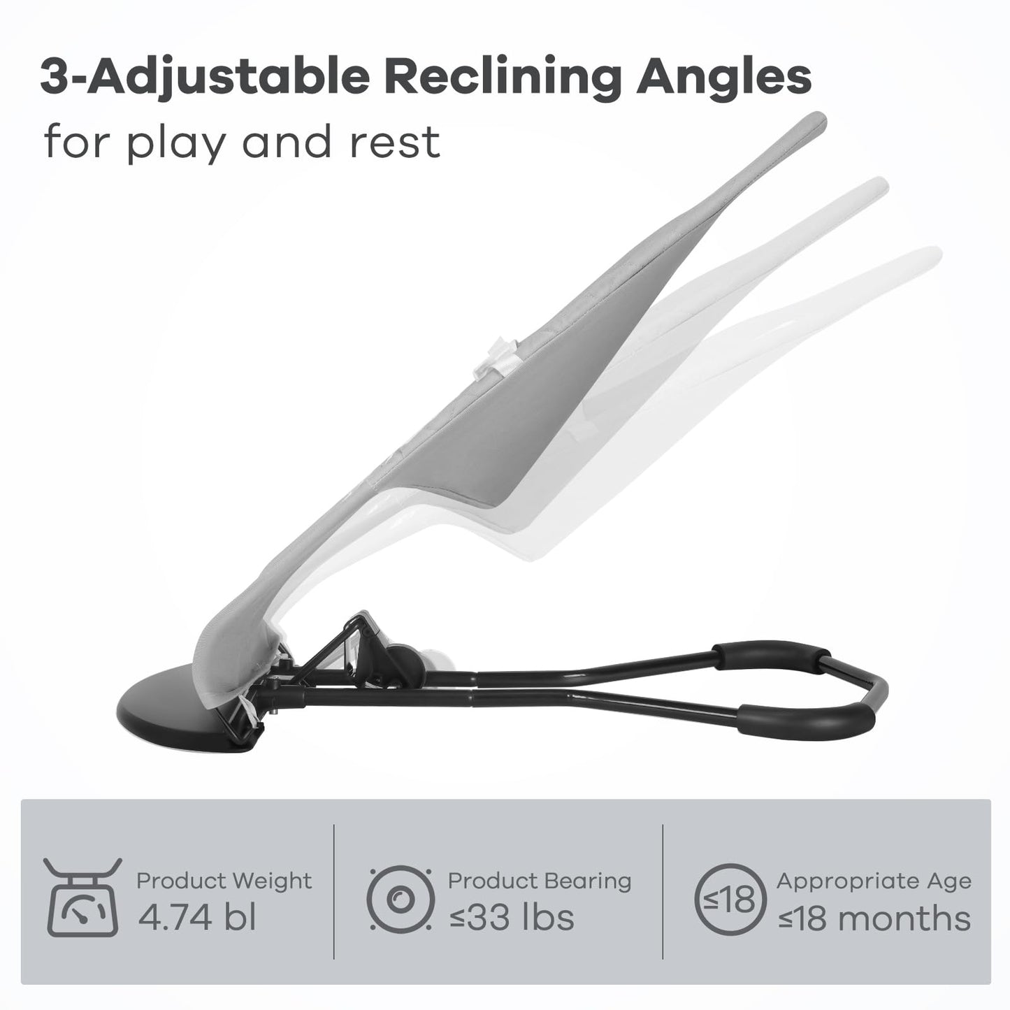 - Safe & Adjustable: Equipped with a 3-point harness and three recline positions, this bouncer seat for babies is suitable for newborns (8 lbs/3.5 kg) until they try to sit up or reach 20 lbs/9 kg. Converts into a baby chair for toddlers up to 30 lbs/13.6 kg or 2 years old