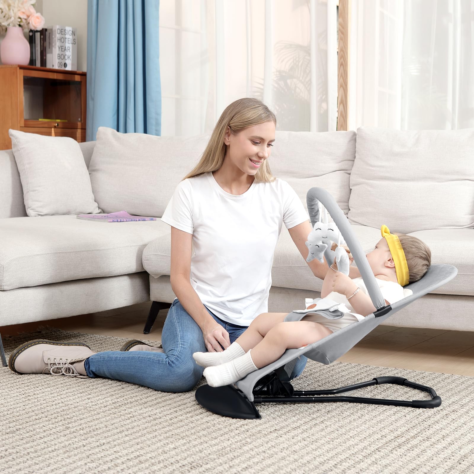 - Safety Reminder: Always supervise your baby while using the infant bouncer. Stop using when they can sit up unassisted, climb out, or roll over.