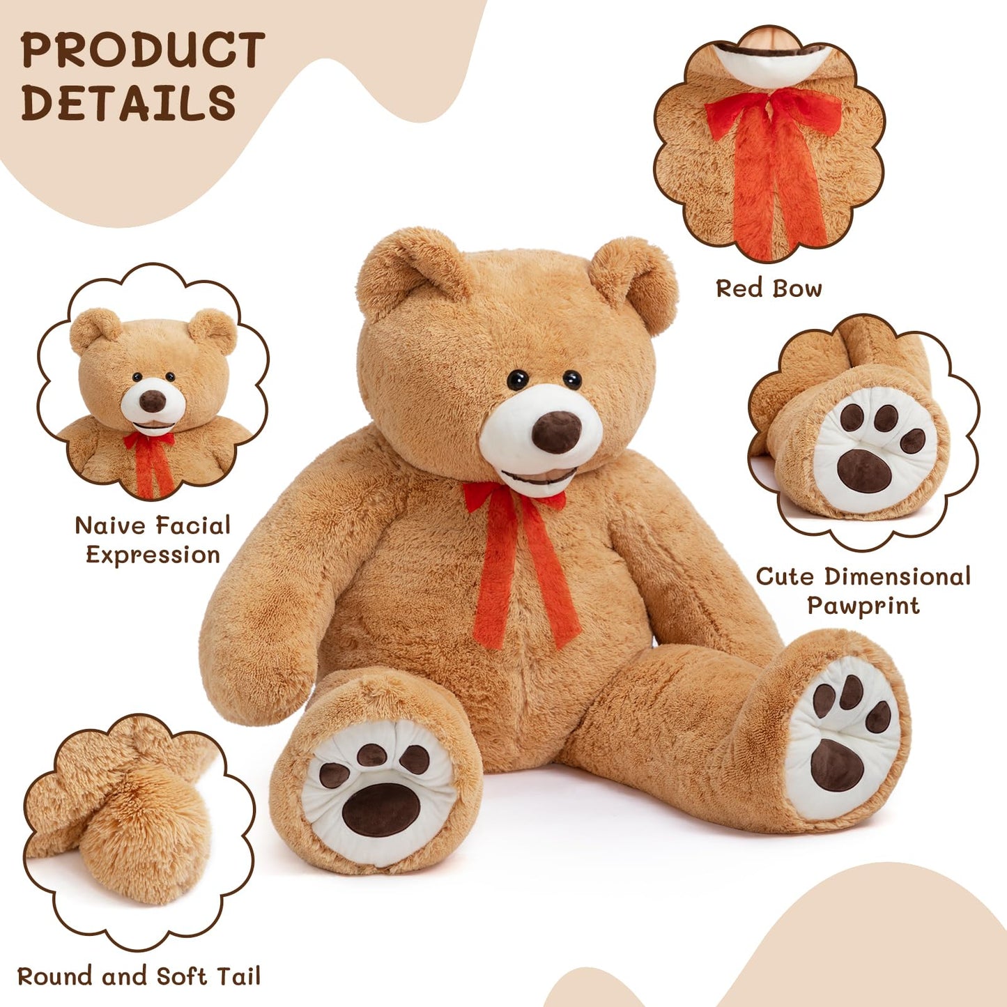 - Appearances: This enormous teddy bear features a classic red bowtie that adds a touch of charm and elegance. Its moving mouth and cute paw print patterns on its feet enhance its endearing character, making it a truly captivating companion.