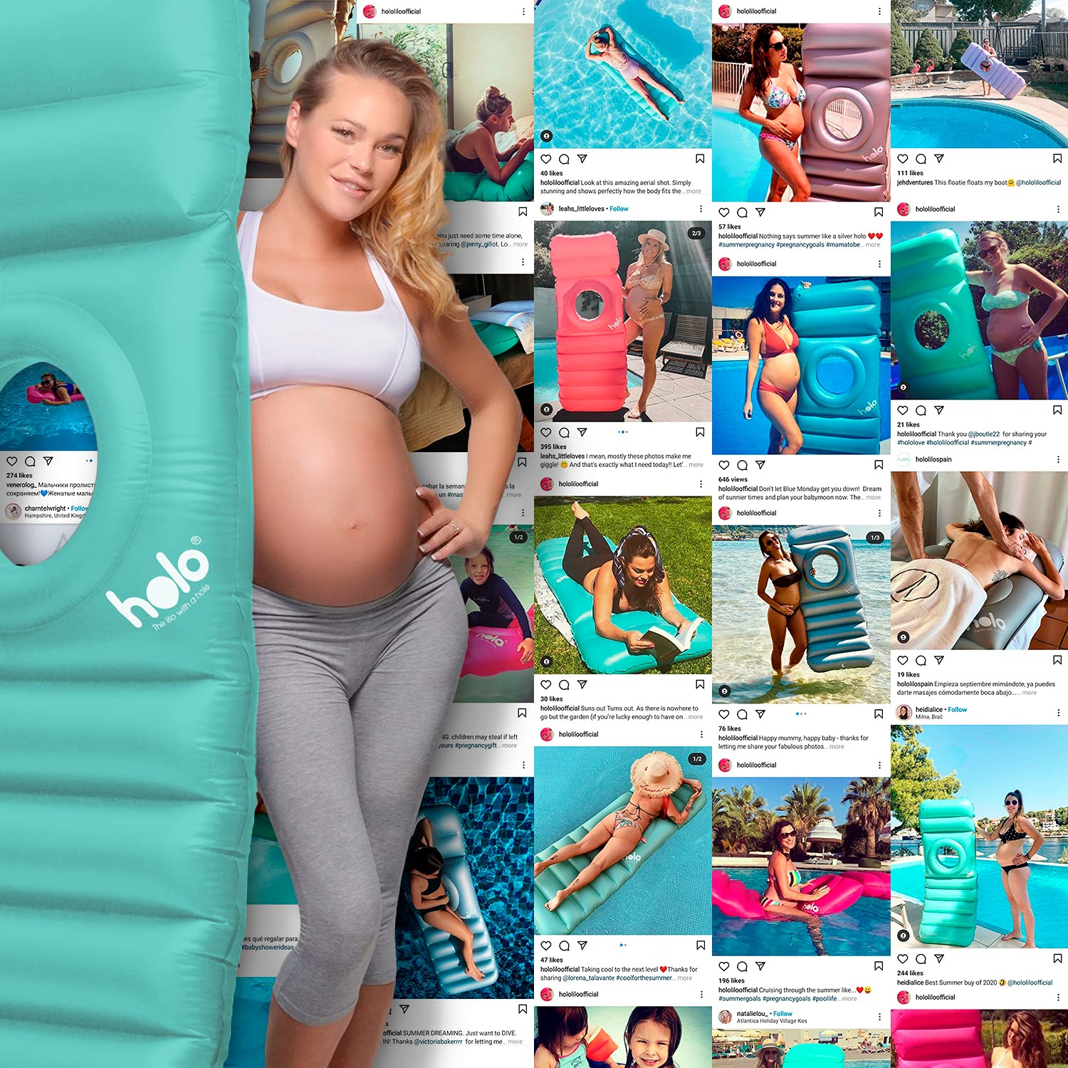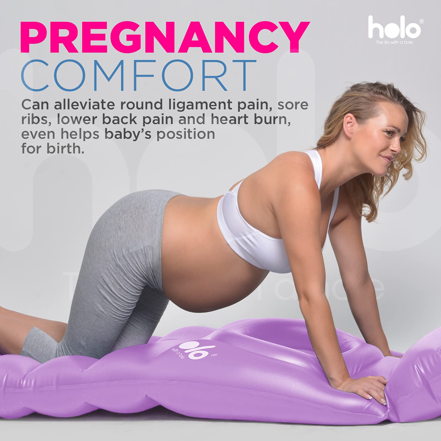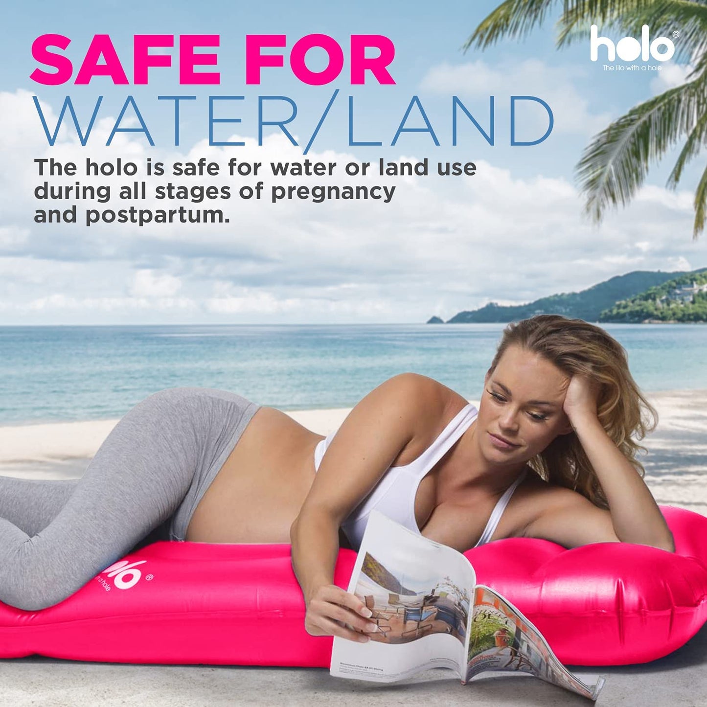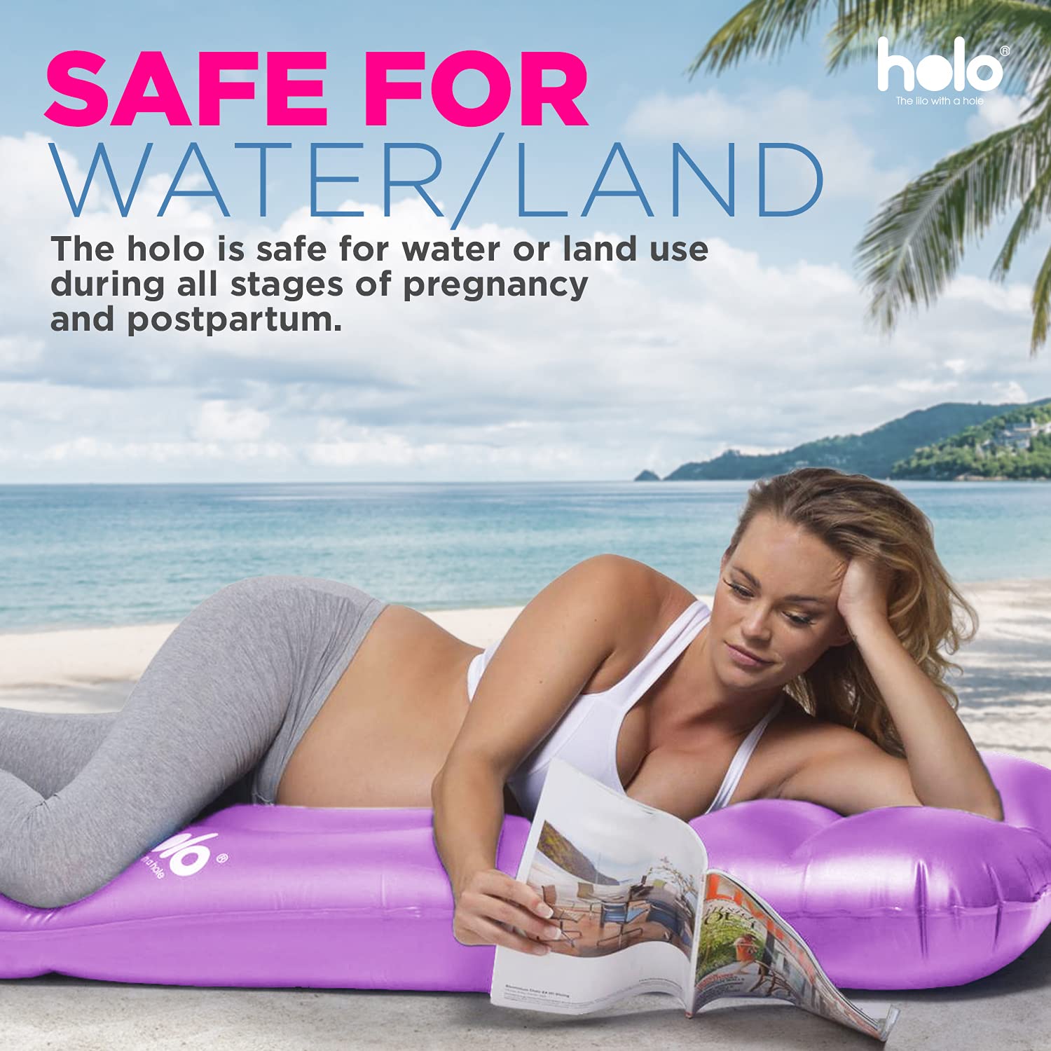 - COMFORTABLE PREGNANCY COMPANION: HOLO - the 'lilo with a hole', redefines comfort during pregnancy by allowing you to lie safely on your tummy, whether you're relaxing on holiday or at home. For use on LAND and WATER. The HOLO has been tried and tested by thousands of mums-to-be over the last 15 years. Approved by physios, osteopaths, obstetricians, midwives and yoga teachers and LOVED by pregnant women all over the world. The HOLO really can make pregnant life more comfortable!