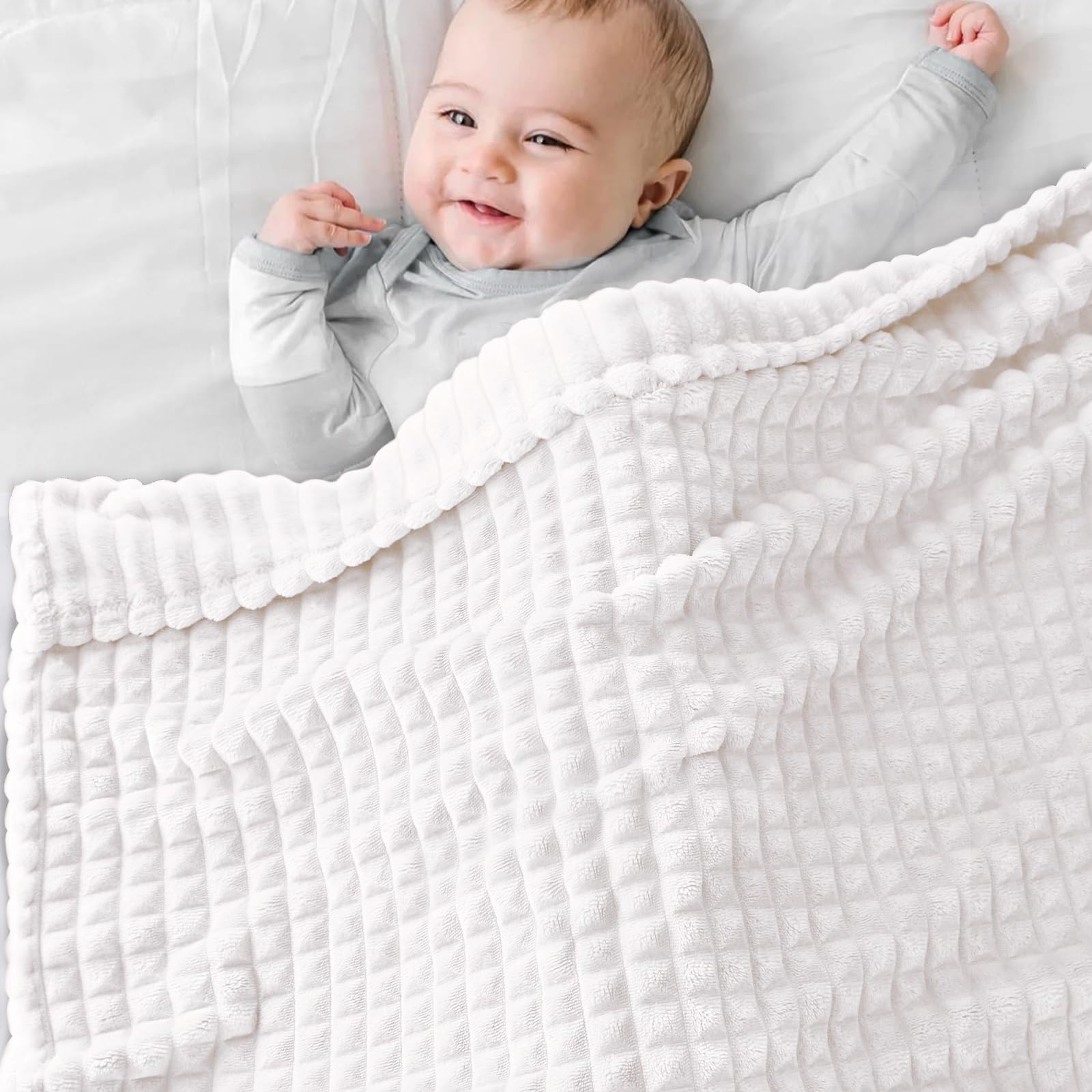 HOMRITAR Baby Blanket for Boys Girls Fleece Super Soft Plush Fuzzy Cozy Toddler Blanket with Square 3D Jacquard Grid Design Luxury Lightweight Bed Blanket for Newborn Infant Cream, 30 x 40 Inch