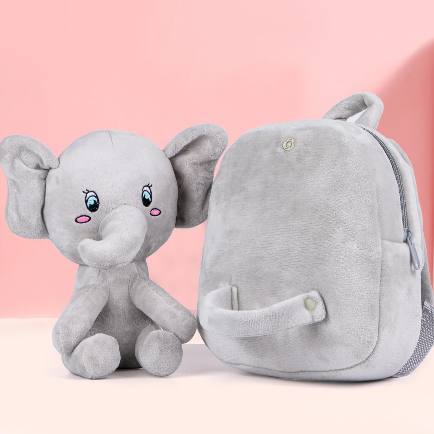 HONGTEYA Toddler Backpack Plush Backpack for Kids Soft Mini Backpack for Girls Animal Elephanet Doll Toys Birthday Easter Christmas kids for Age 1 2 3 4 5