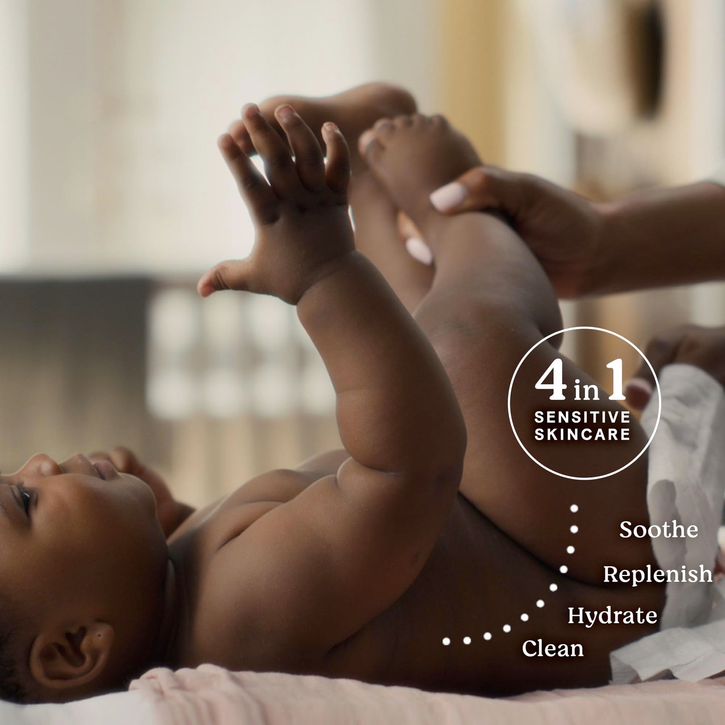- 4-in-1 Sensitive Skincare: Cleans, hydrates, soothes and replenishes your baby's delicate skin with every baby wipe