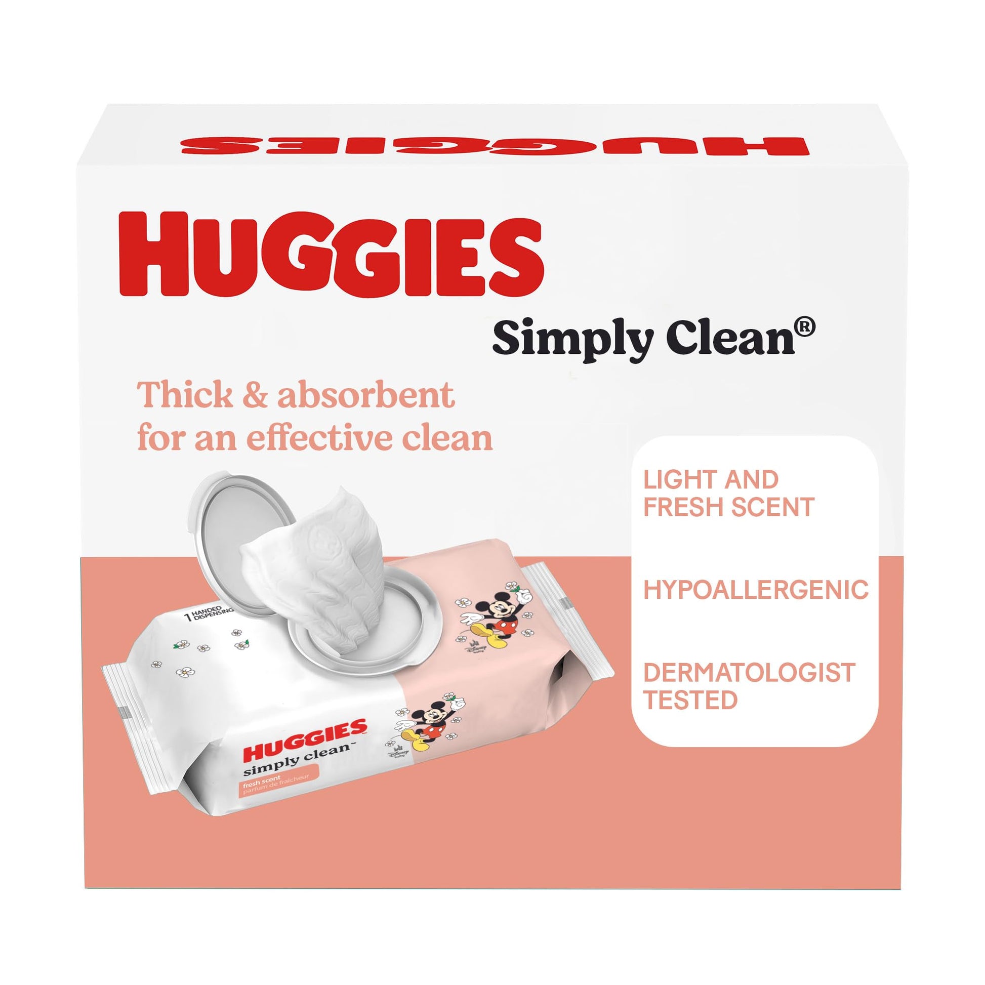 - Huggies Simply Clean Fresh Scent Baby Wipes: 3 flip-top pack of 64 scented baby wipes (192 wipes total); packaging may vary