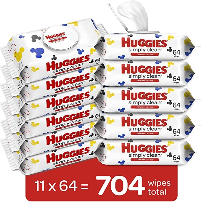HUGGIES Simply Clean Scented Baby Wipes, 11 Flip-top Pack, 704Count (Pack Of 11)