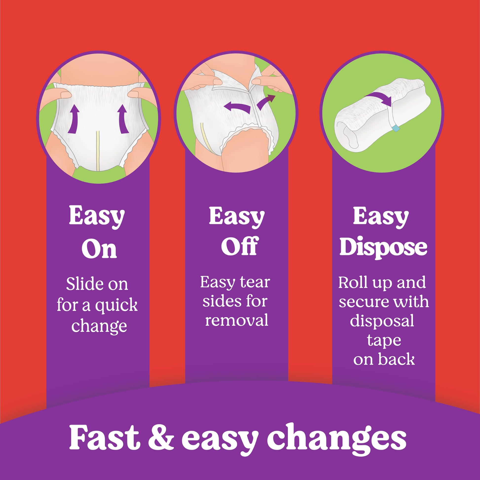 - Our slip-on baby diaper has easy tear sides for fast & easy changes