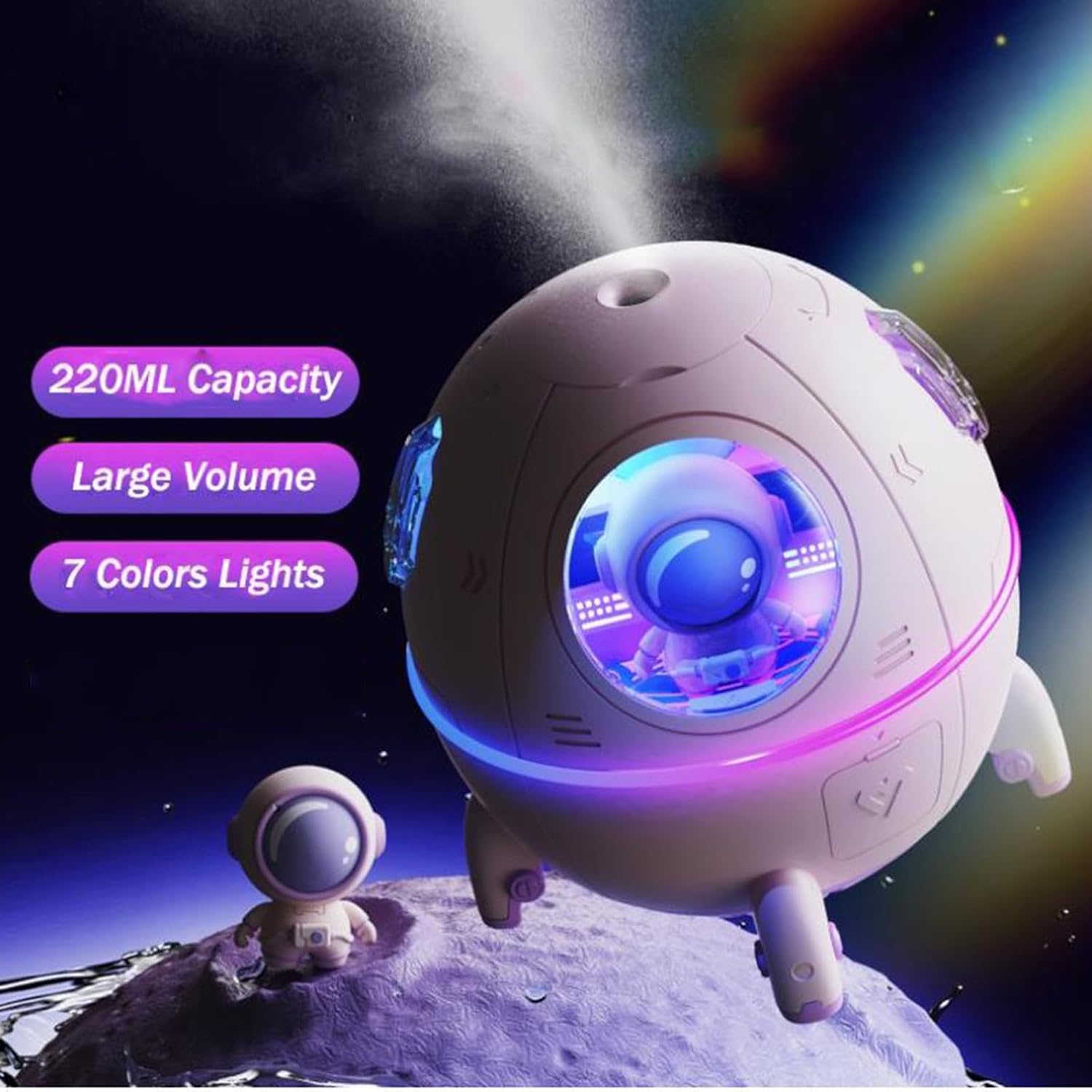 - Cute kids Air Humidifiers:Essential Oil Diffuser, Humidifier and Night light,The Humidifier has a built-in smart LED 7 Color Light adjustable, make your chirdren like it more. Add 3-5 drops of your favorite aromatherapy oil to relieve fatigue and relax, while also improving air quality and keeping away from dryness. Add a relaxed, soothing and calm atmosphere to your bedroom and office[Tip ]For a Better Spray, Please use Tap water or Mineral water, Don't use Distilled water or Purified water