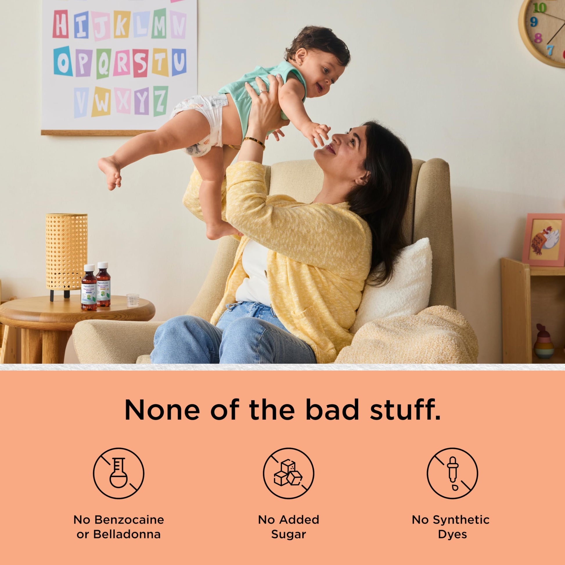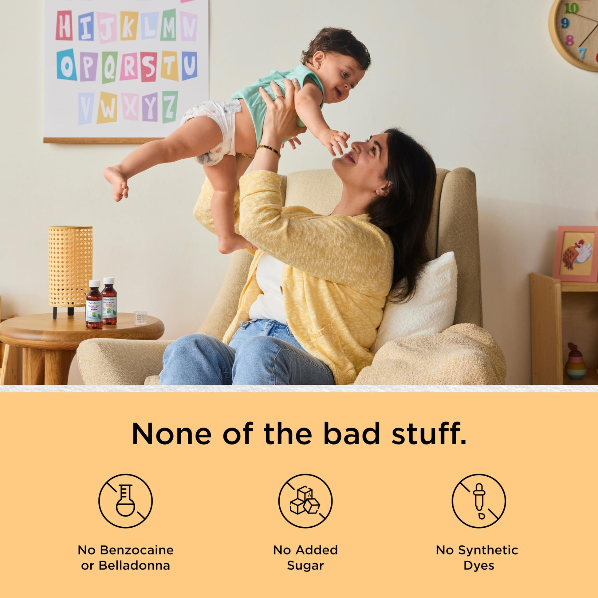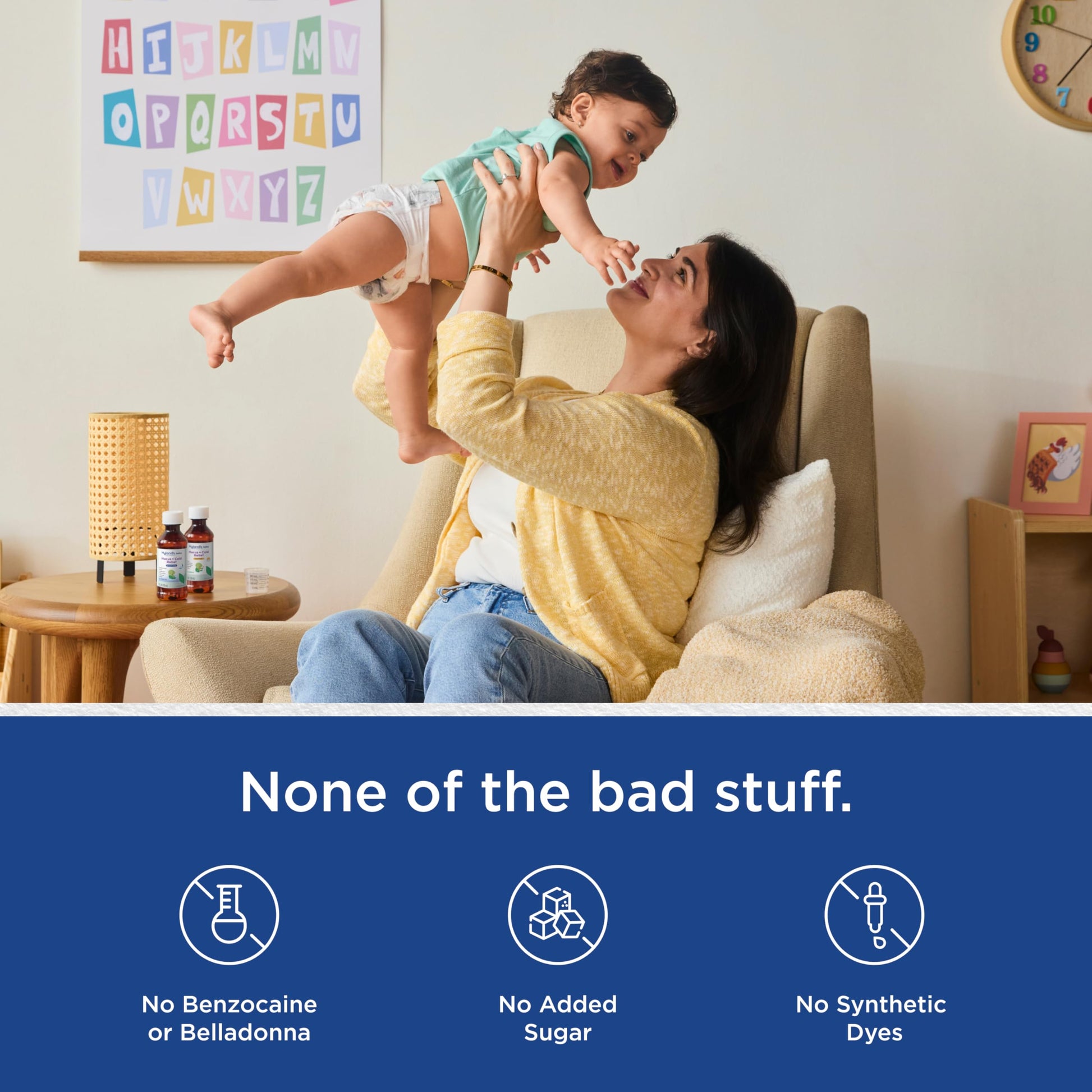 Soothe your baby's gums with this easy-to-apply drops, no rub-in needed. Benzacoine-free, these safe and gentle drops are made with calming certified organic botanicals, and an organic cherry flavor little ones love. So you can help bring back those sweet smiles.