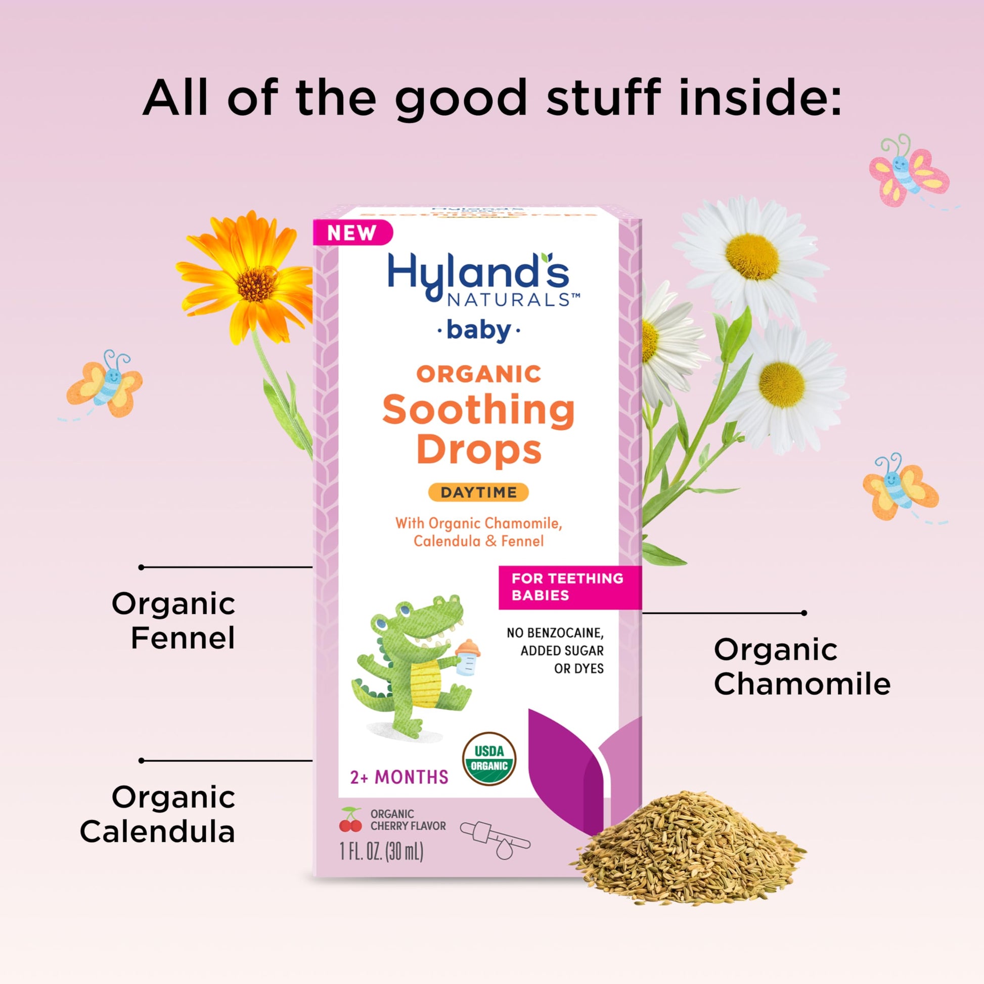 Hyland's Baby Organic Daytime and Nighttime Soothing Drops Combo Pack, Drops for Oral Discomfort, 2 oz.