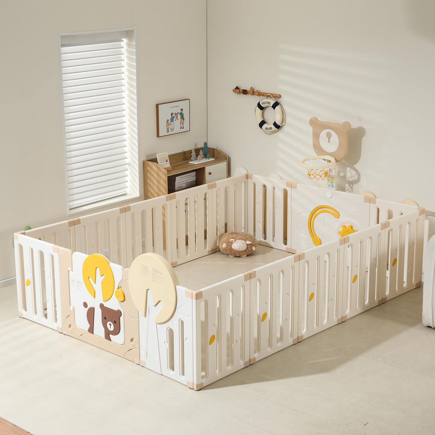 - 【 Full coverage baby play 】A playpen is an indispensable helper that allows elderly grandparents to keep an eye on their grandchildren without having to chase them around. Parents can also work or complete household chores without worrying about their children. The baby can climb or walk in it, which can help the baby learn to climb or walk to a certain extent.