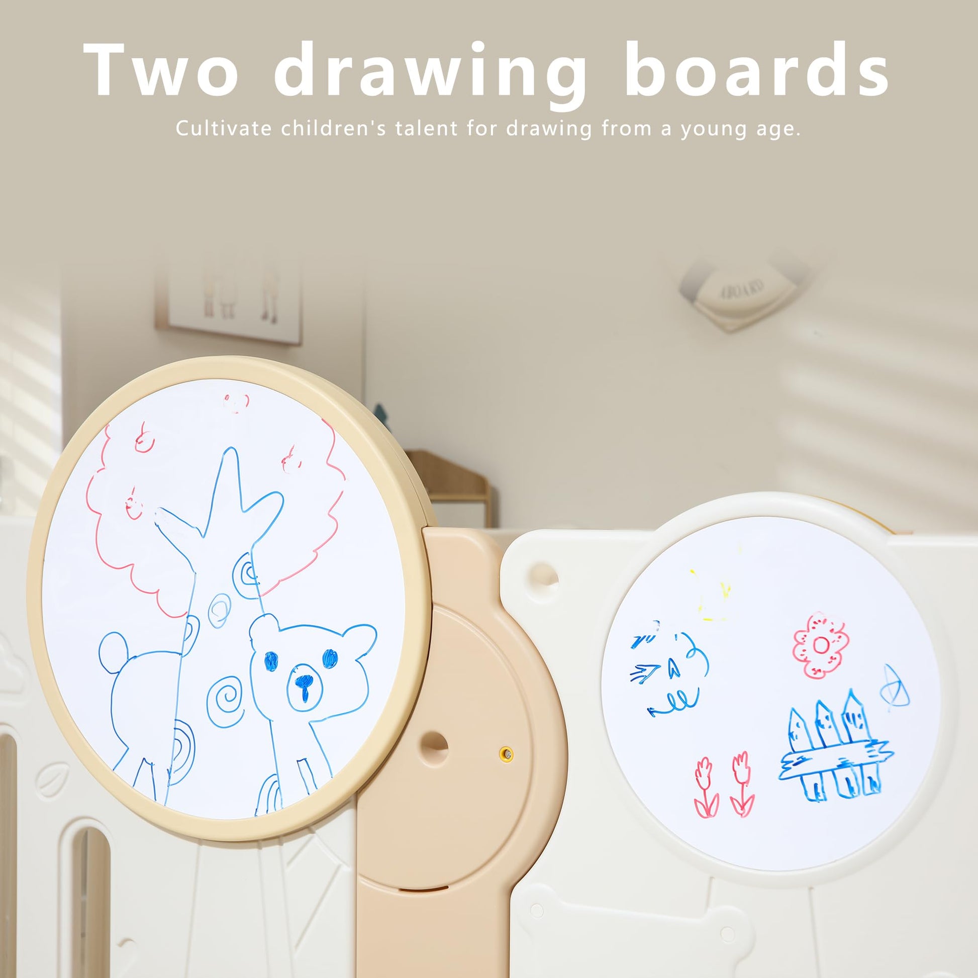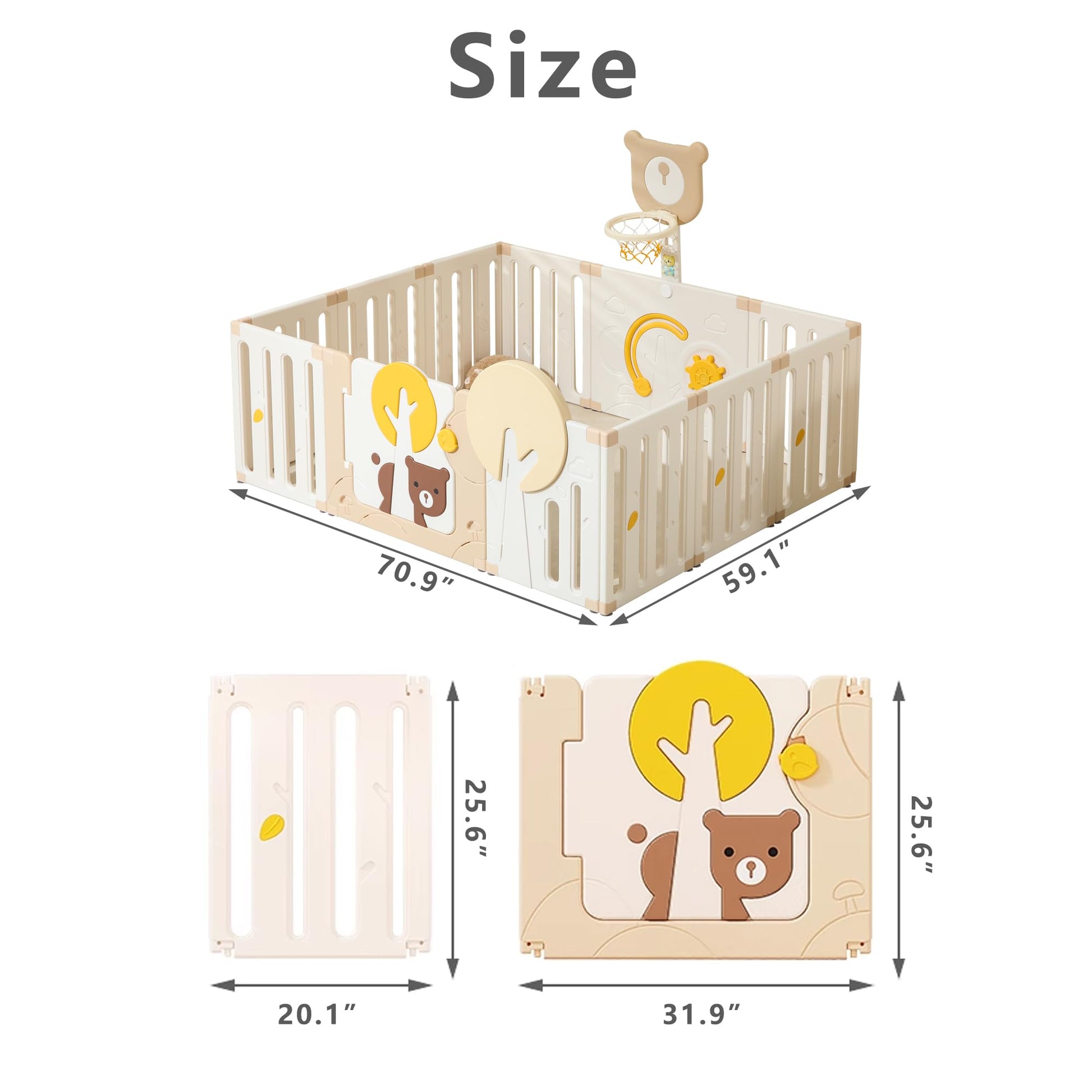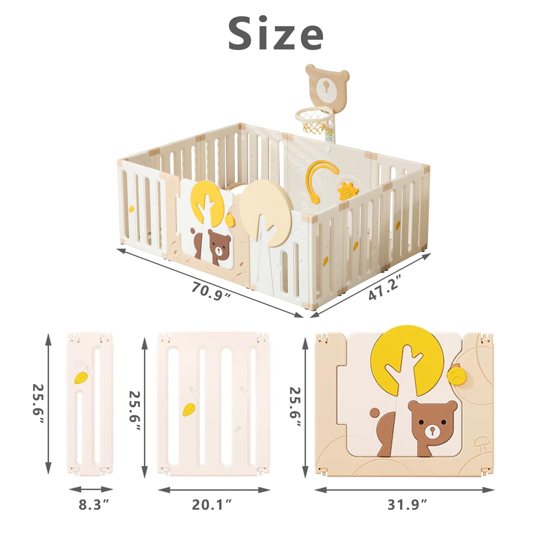 - 【playpen for babies and toddlers】 Our Playpen for babies and toddlers is equipped with basketball stands, drawing boards, and game doors. Playing basketball can cultivate children's thinking and reaction ability. Drawing can cultivate imagination and creativity. Playgate can improve a child's hand-eye coordination.