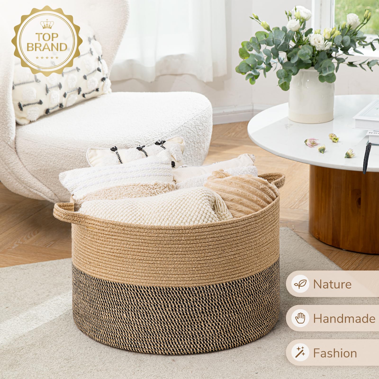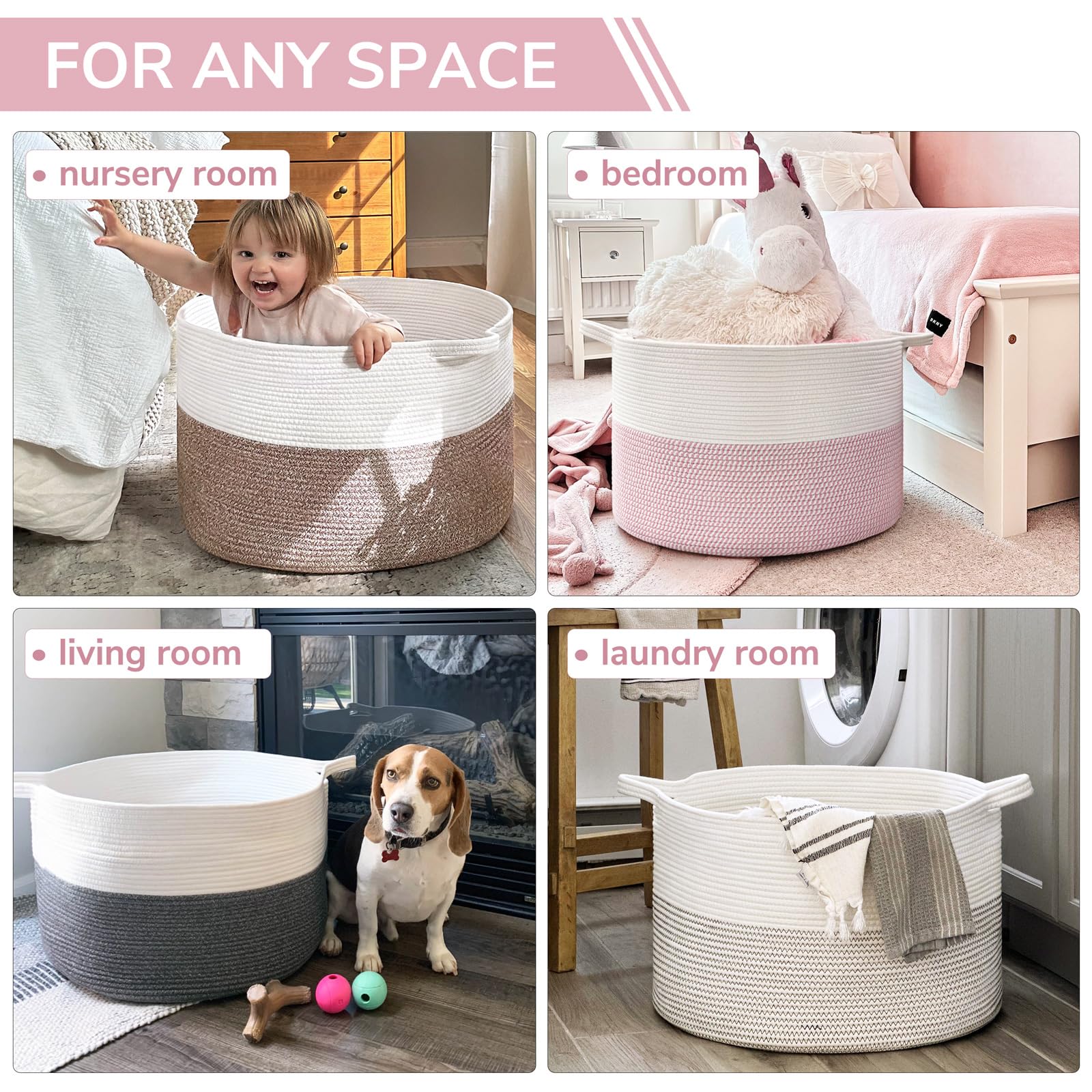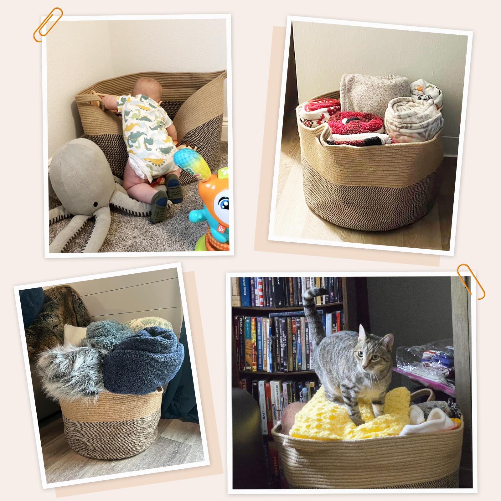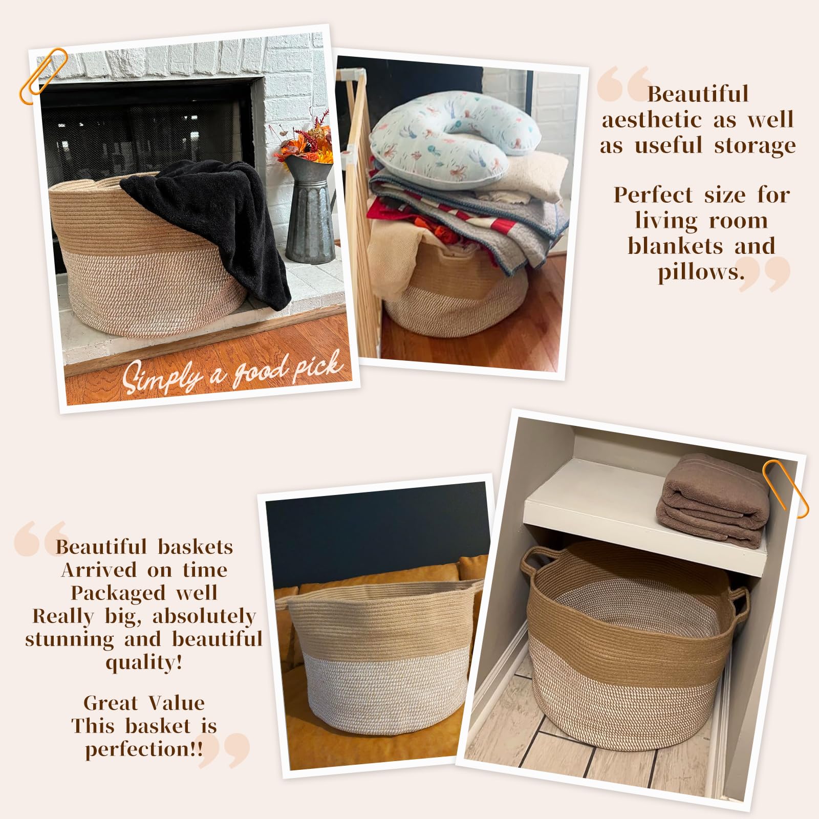 INDRESSME XXXLarge Cotton Rope Basket 21.7" x 21.7" x 13.8" Woven Baby Laundry Blanket Basket Toy Baskets with Handle Storage Comforter Cushions Thread Laundry Hamper