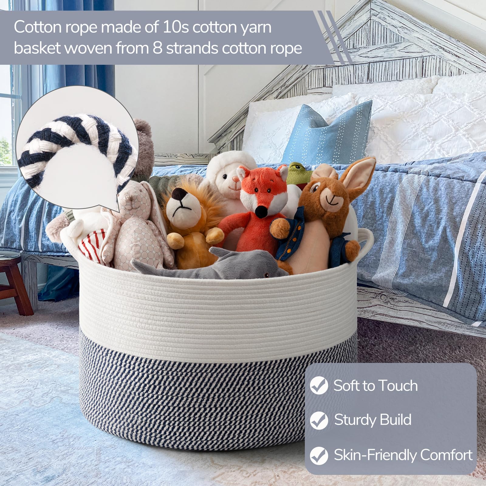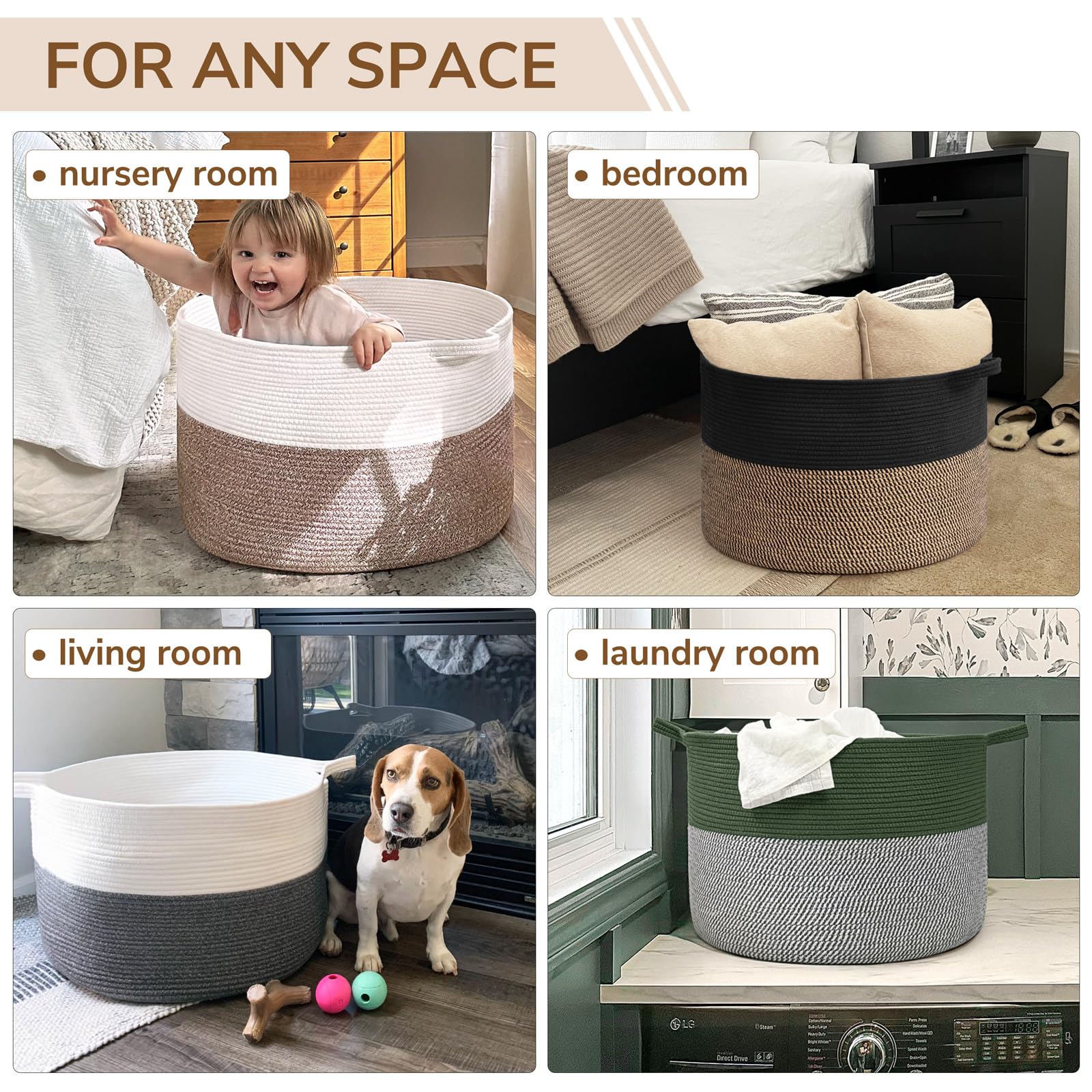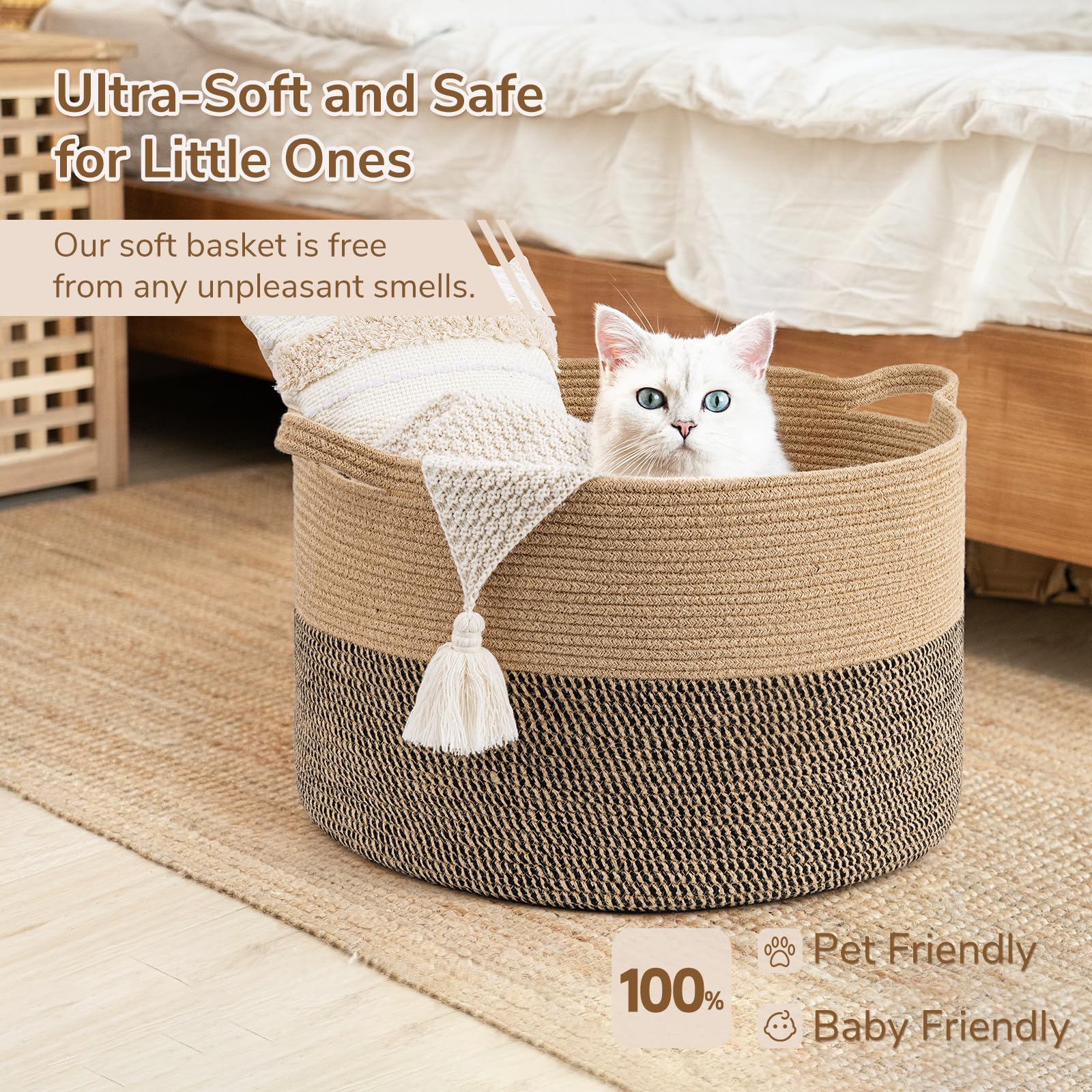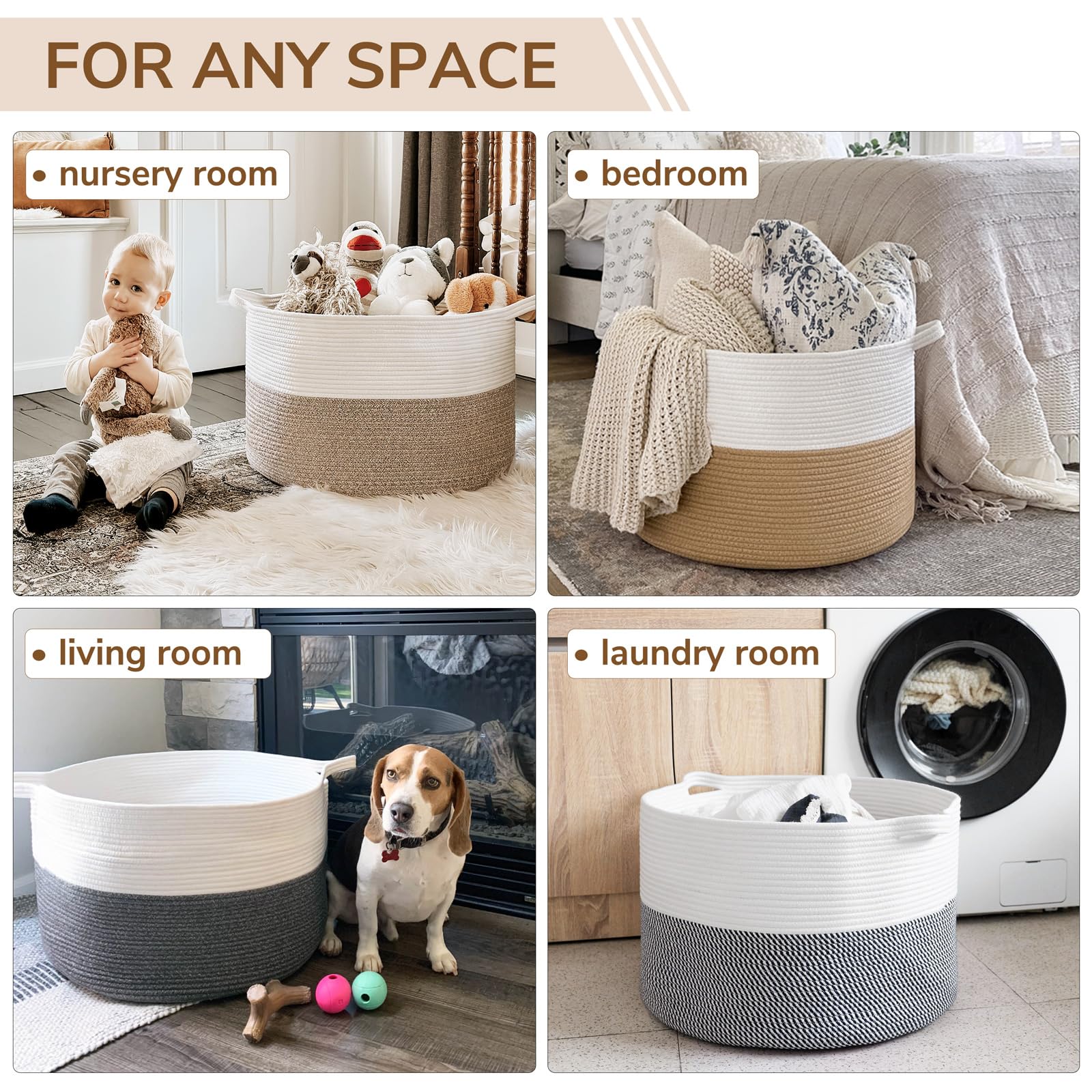 INDRESSME XXXLarge Cotton Rope Basket 21.7" x 21.7" x 13.8" Woven Baby Laundry Blanket Basket Toy Baskets with Handle Storage Comforter Cushions Thread Laundry Hamper