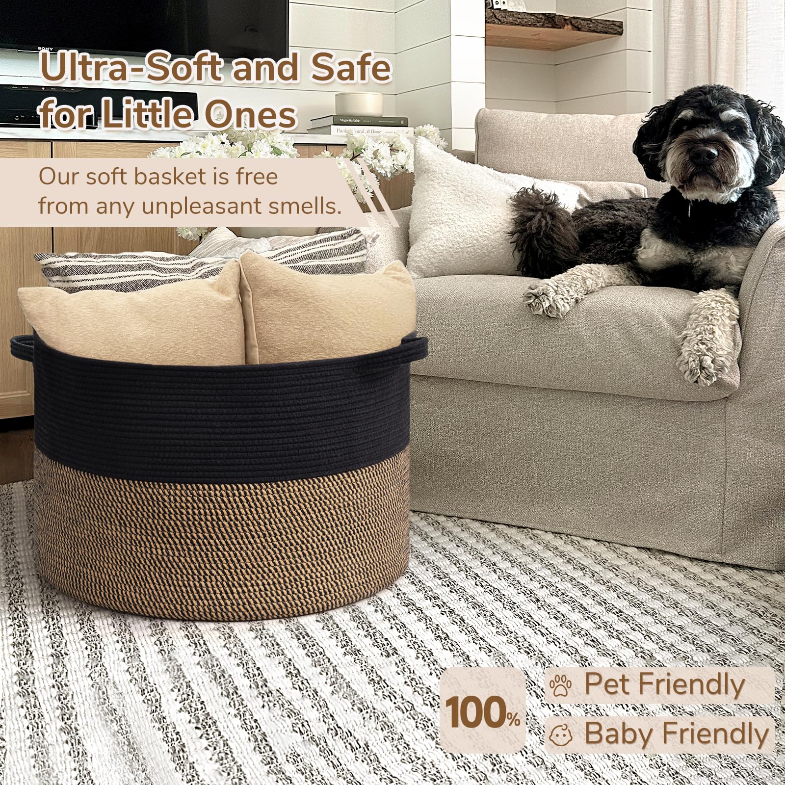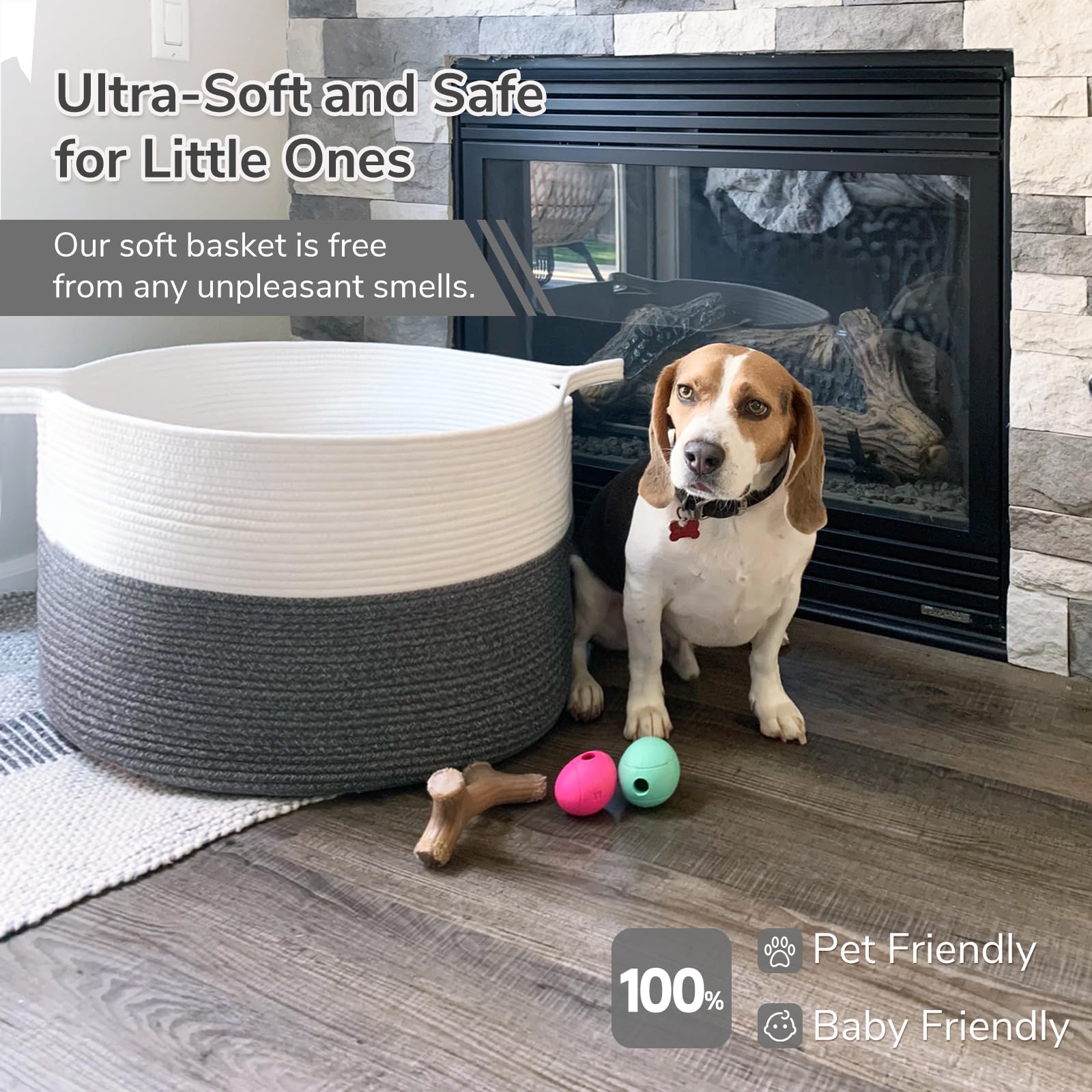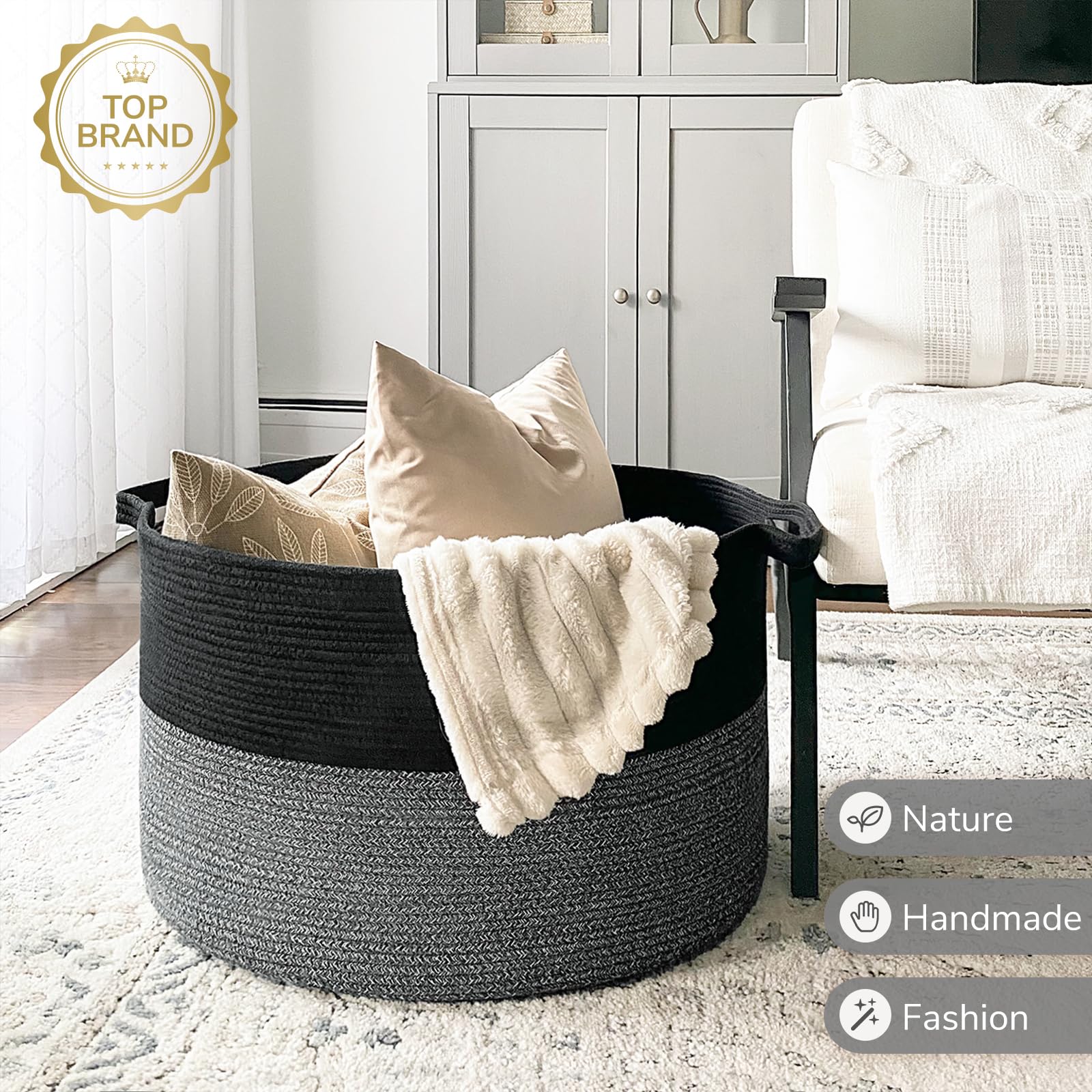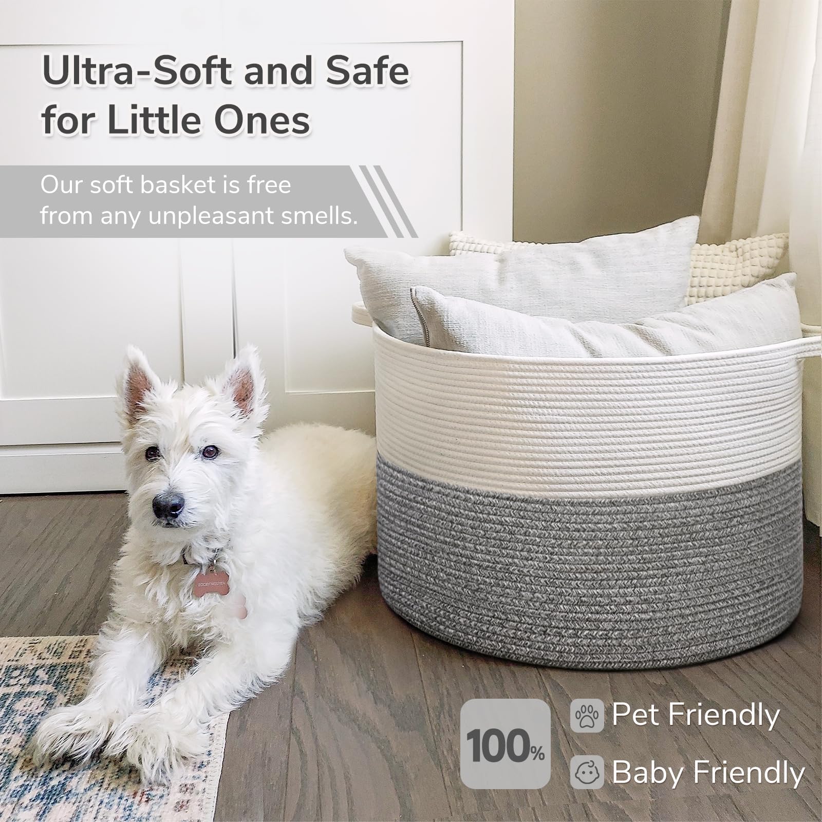 INDRESSME XXXLarge Cotton Rope Basket 21.7" x 21.7" x 13.8" Woven Baby Laundry Blanket Basket Toy Baskets with Handle Storage Comforter Cushions Thread Laundry Hamper