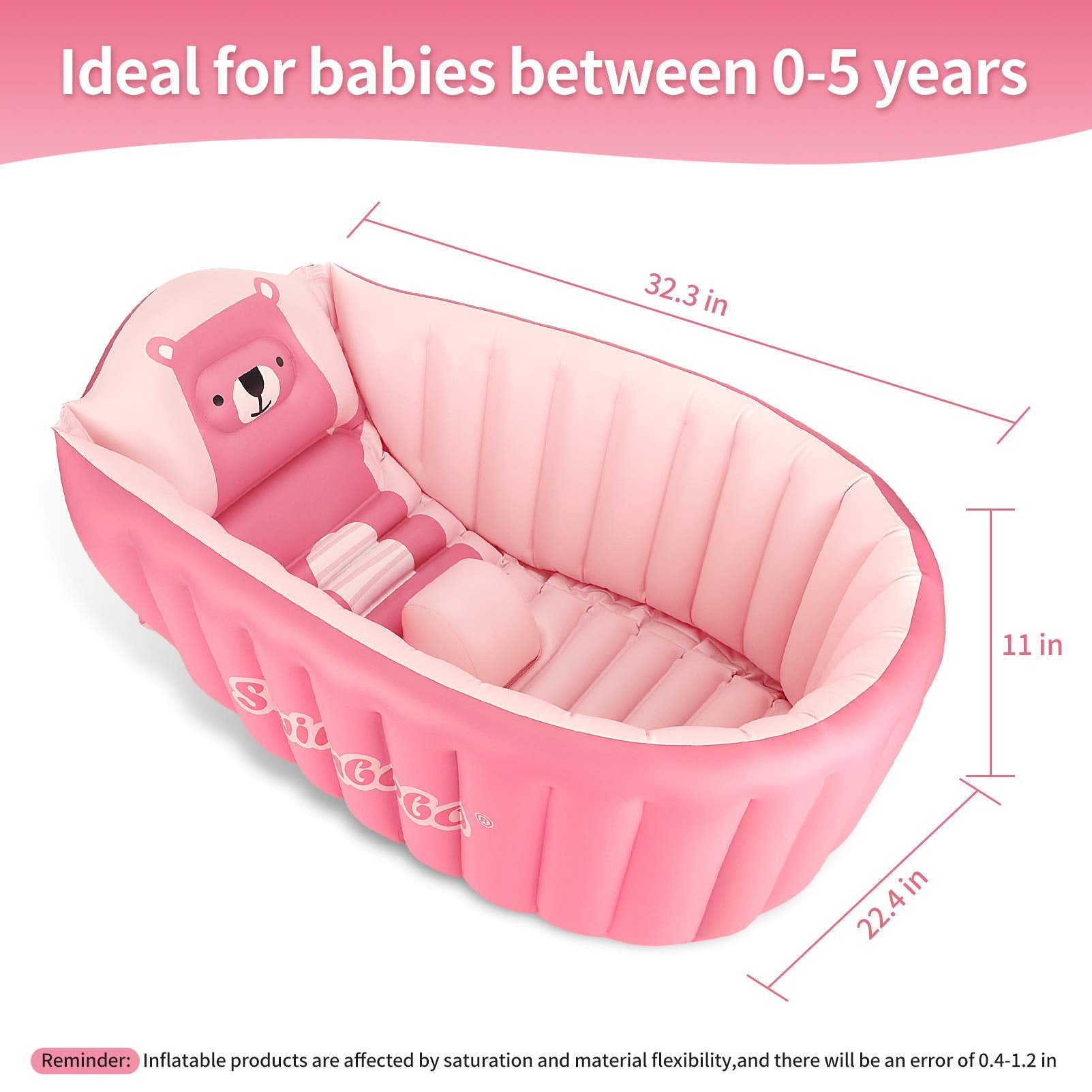 Inflatable Baby Bath Tub Portable Foldable Travel Mini Swimming Pool Helps Infants to Toddler Tub (Pink)