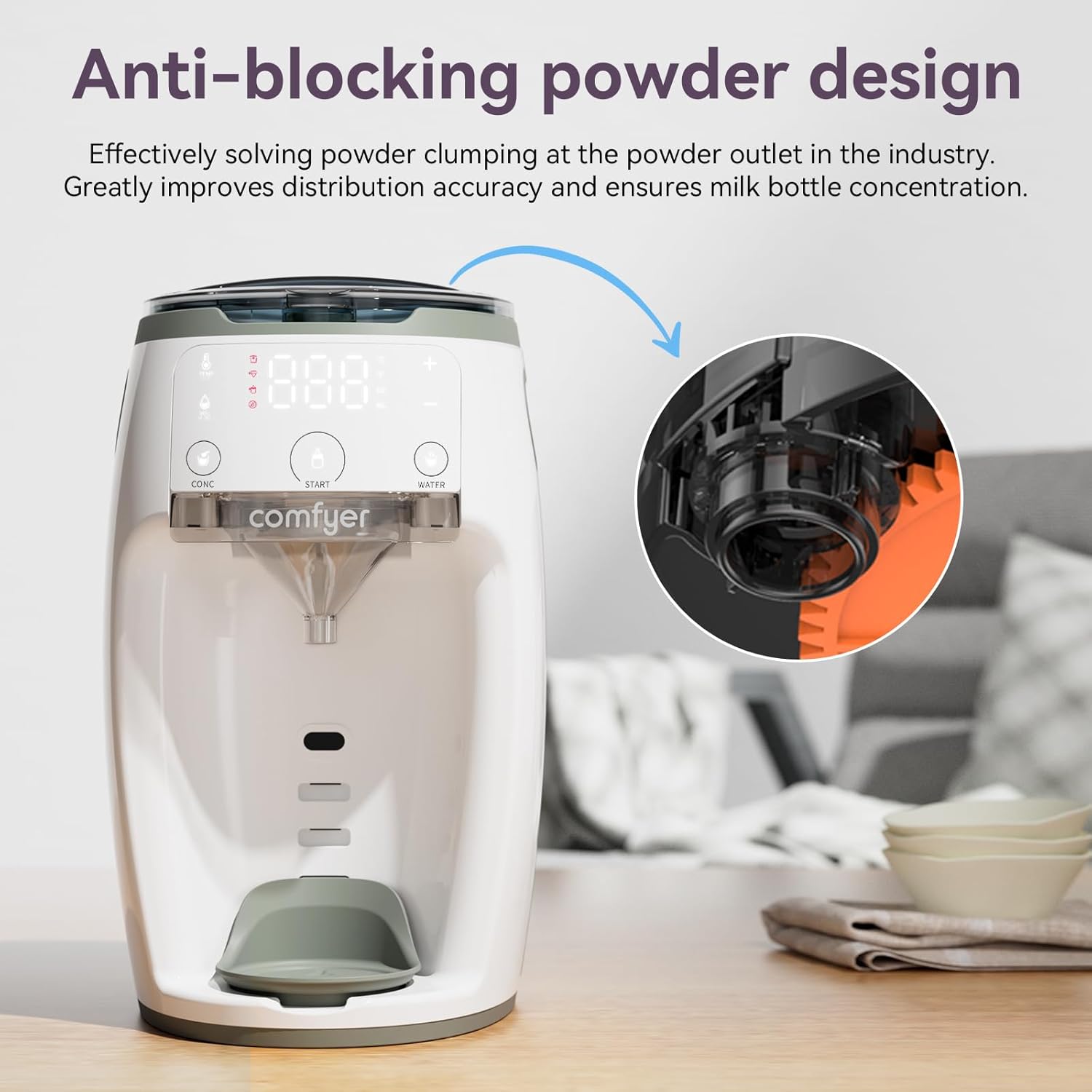 - 【CLE SELF CLEANING MODE】comfyer baby formula dispensers & mixer first enters the CLE mode to simply clean the funnel of remaining wet milk powder with pure water, before making new bottle, keeping mixing part/funnel area clean. Especially effective when you have a crying baby in arms and urgently needs a bottle. Comfyer milk and water dispenser machine as a game changer, giving more love for parenting and empowering better feeding quality, is a real life helper.