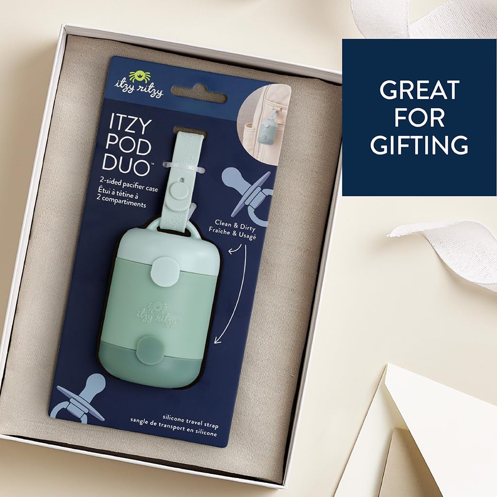 Itzy Ritzy Pacifier Holder - Dual-Sided Pacifier Case with Strap to Keep Clean & Dirty Pacifiers Separate, Paci Holder for Diaper Bag & Stroller (Pacifiers Not Included), Sage