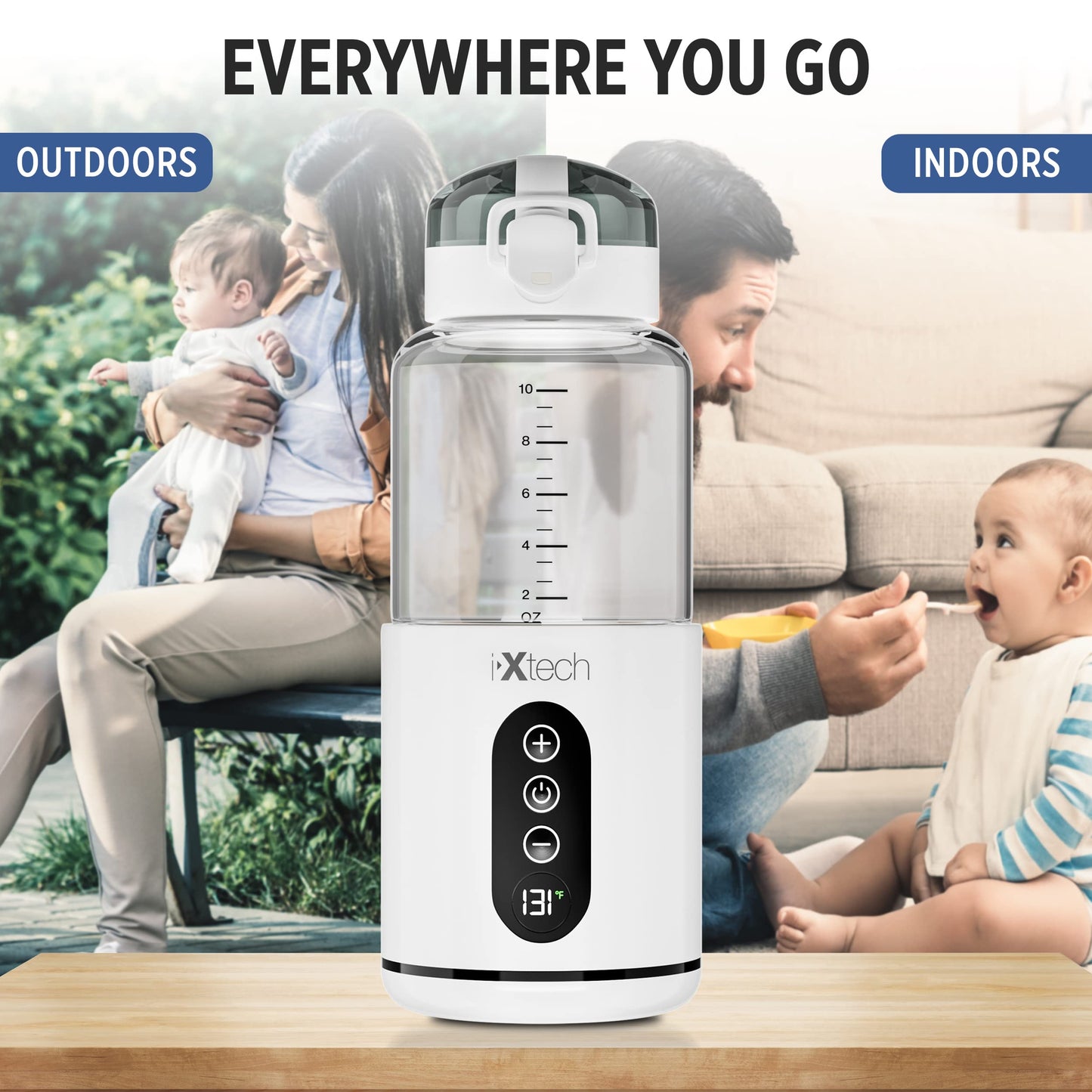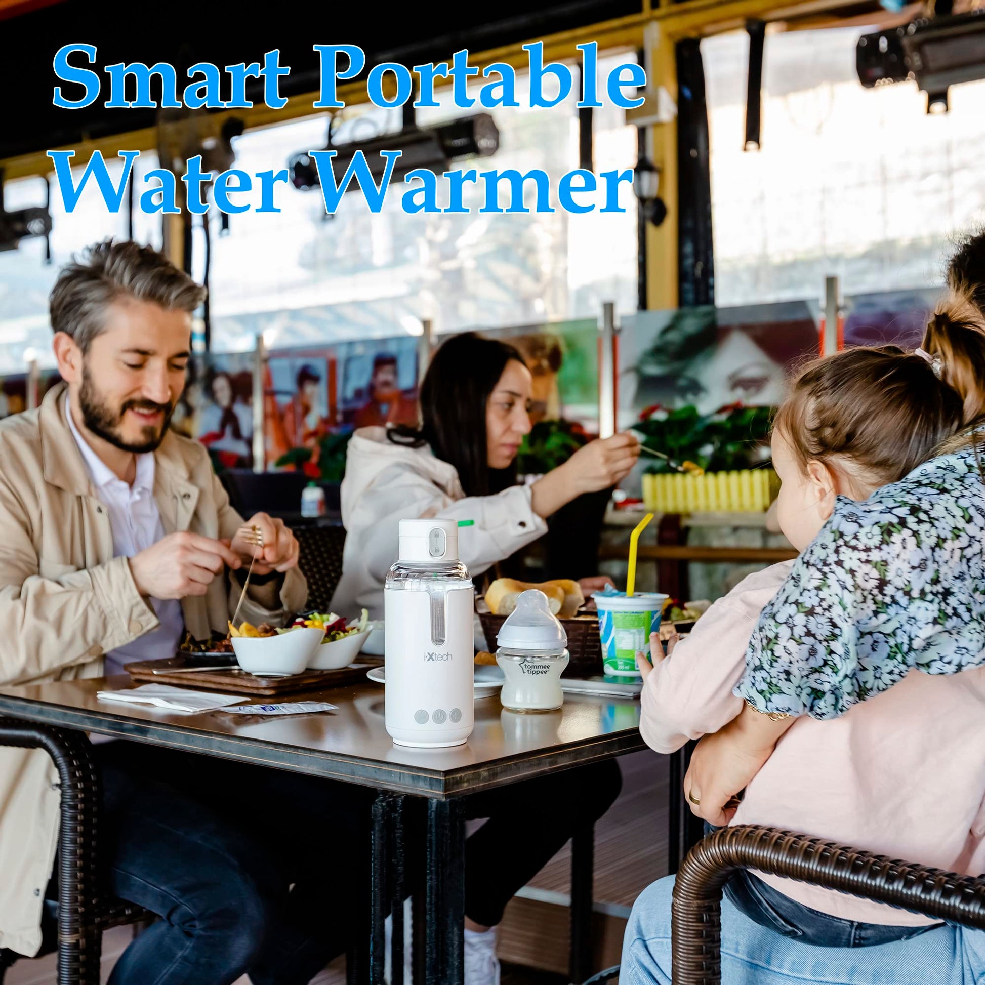 IXTECH Portable Water Warmer for Baby Formula, Milk Warmer for Travel, 10 oz., Electric Warming with Adjustable Temperature Control, Leak-Resistant Spout, Rechargeable and Wireless