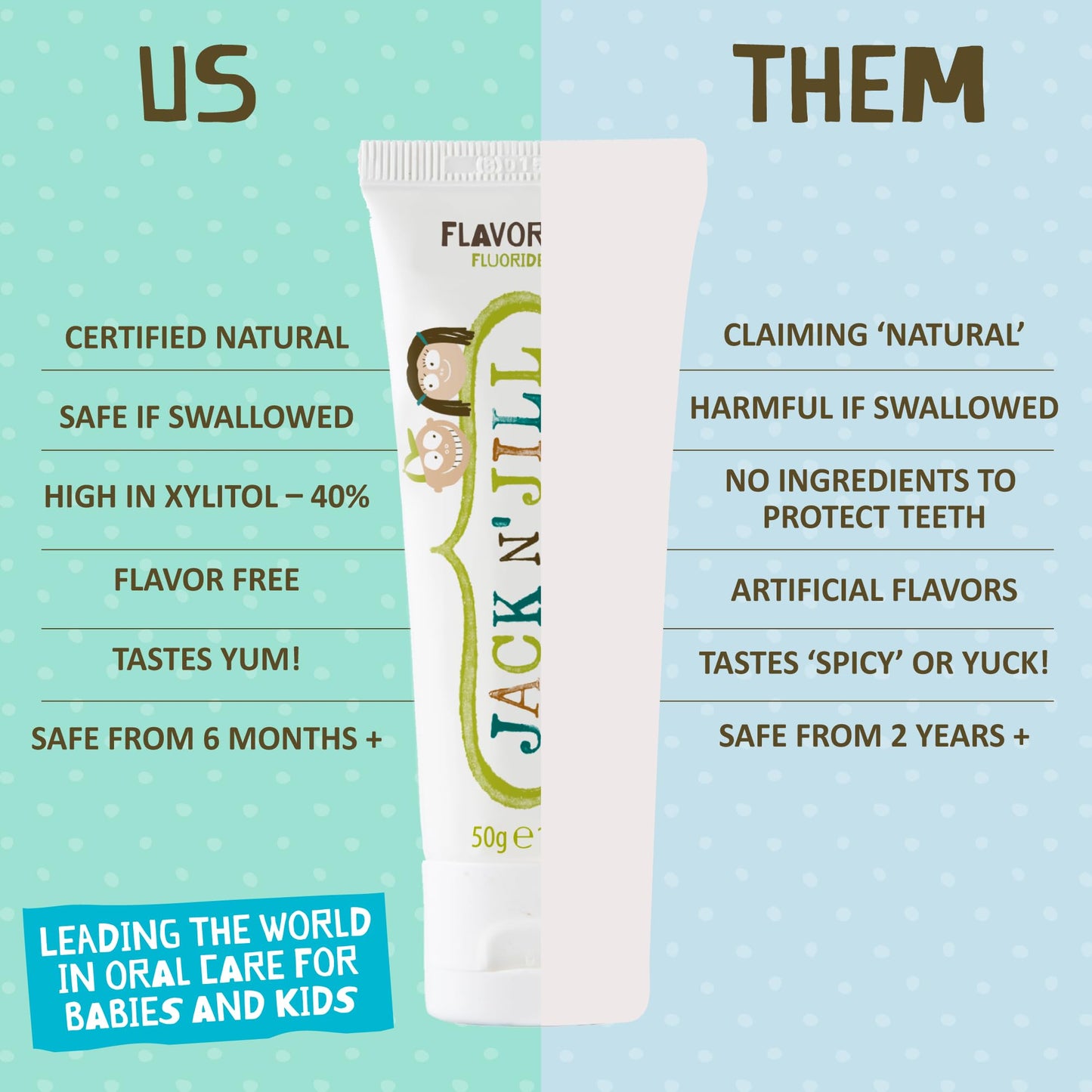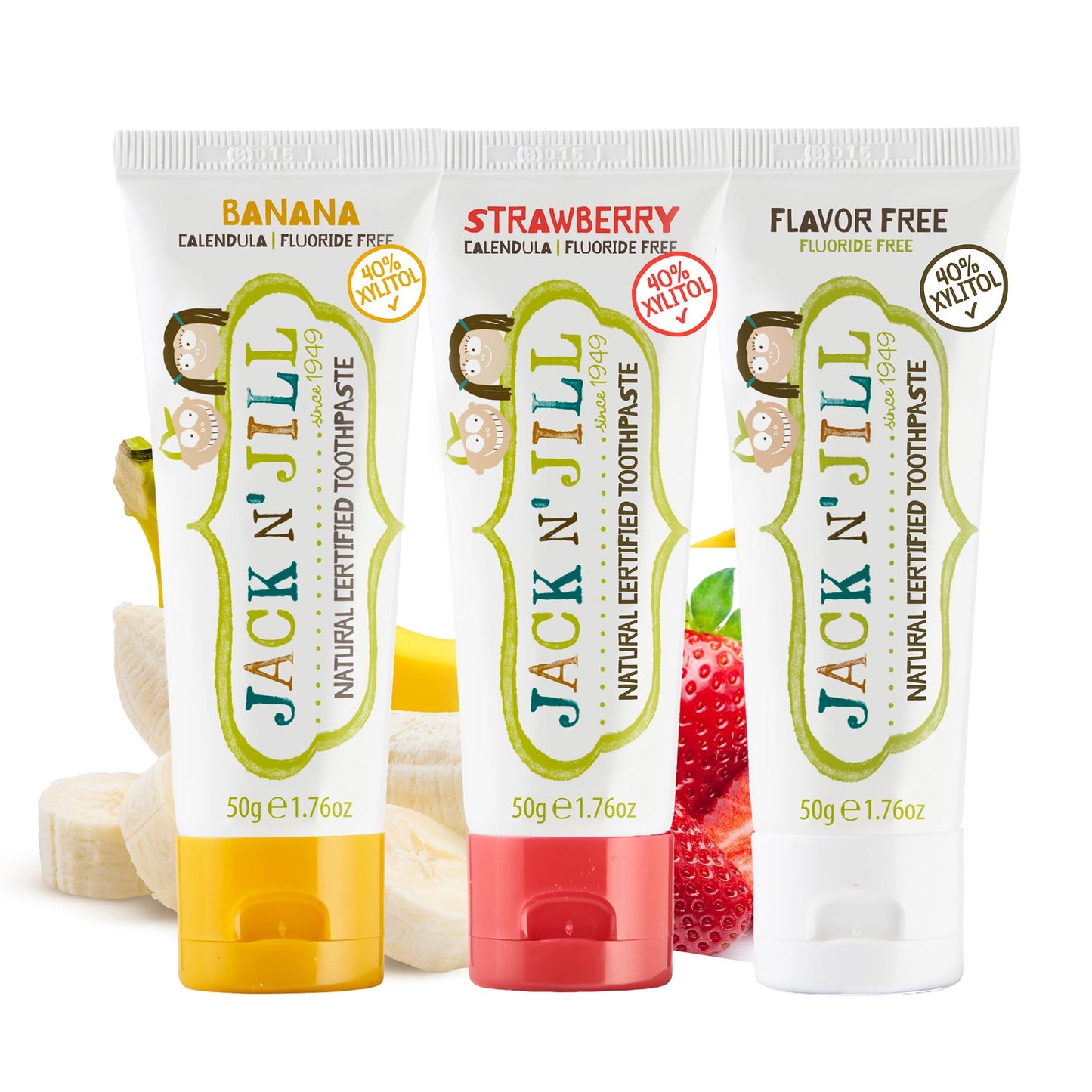 Jack N' Jill Natural Baby Toothpaste - Fluoride Free Training Toothpaste for Babies 6 Months and Up, Safe to Swallow, 40% Xylitol, BPA Free - 1.76 oz (Variety Pack of 3)
