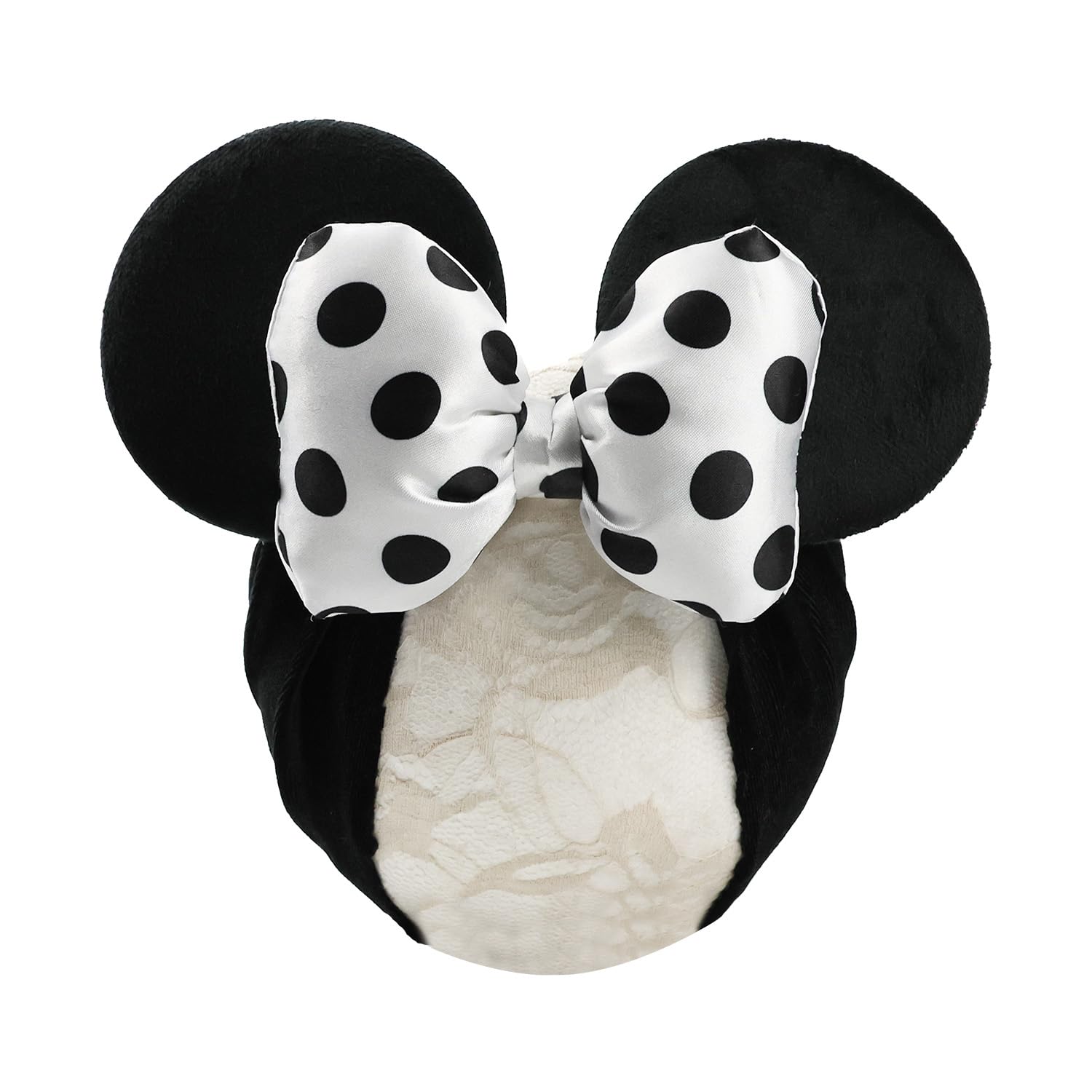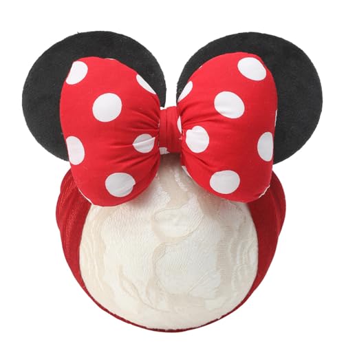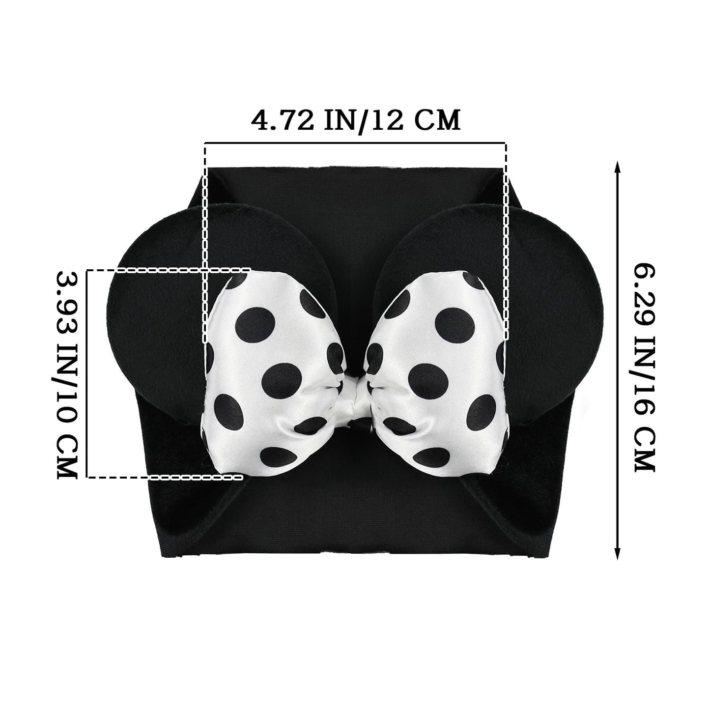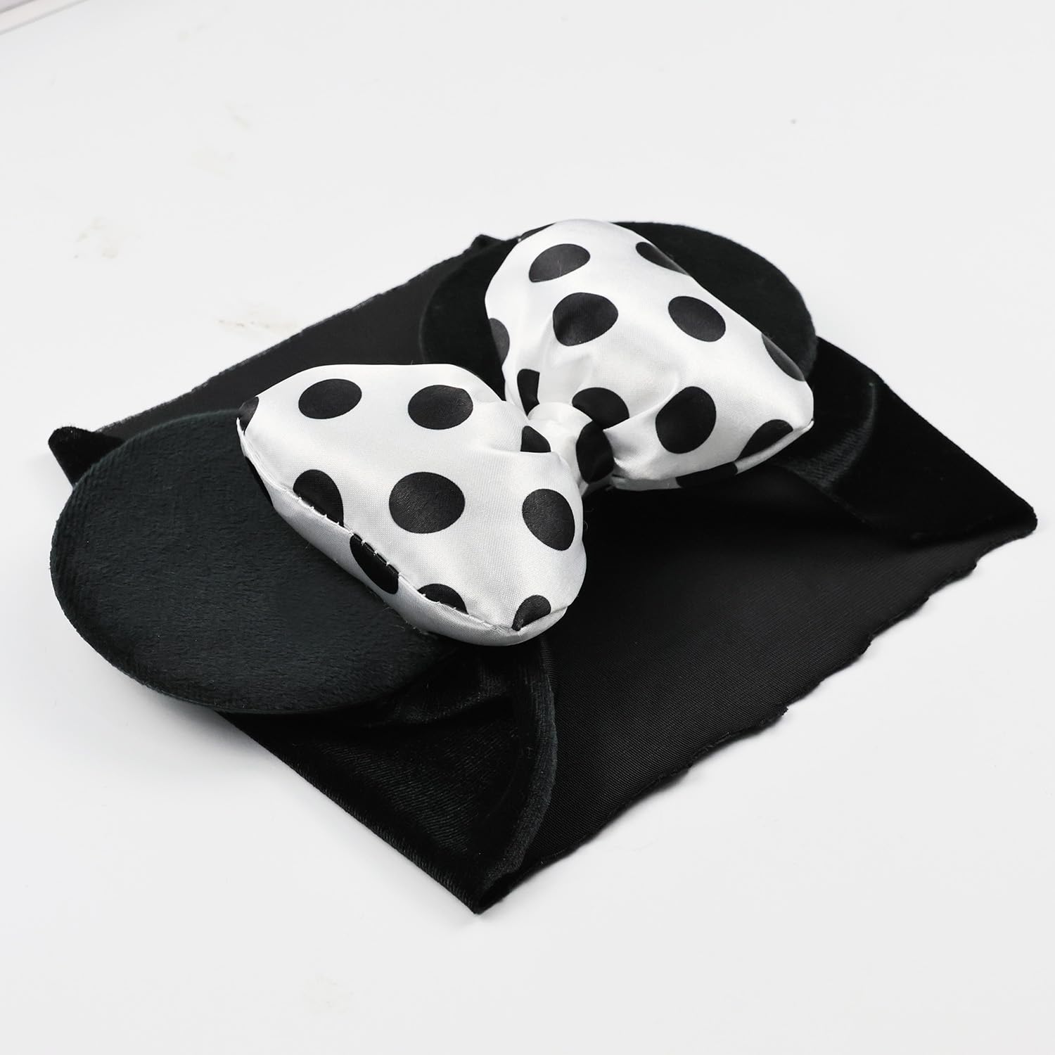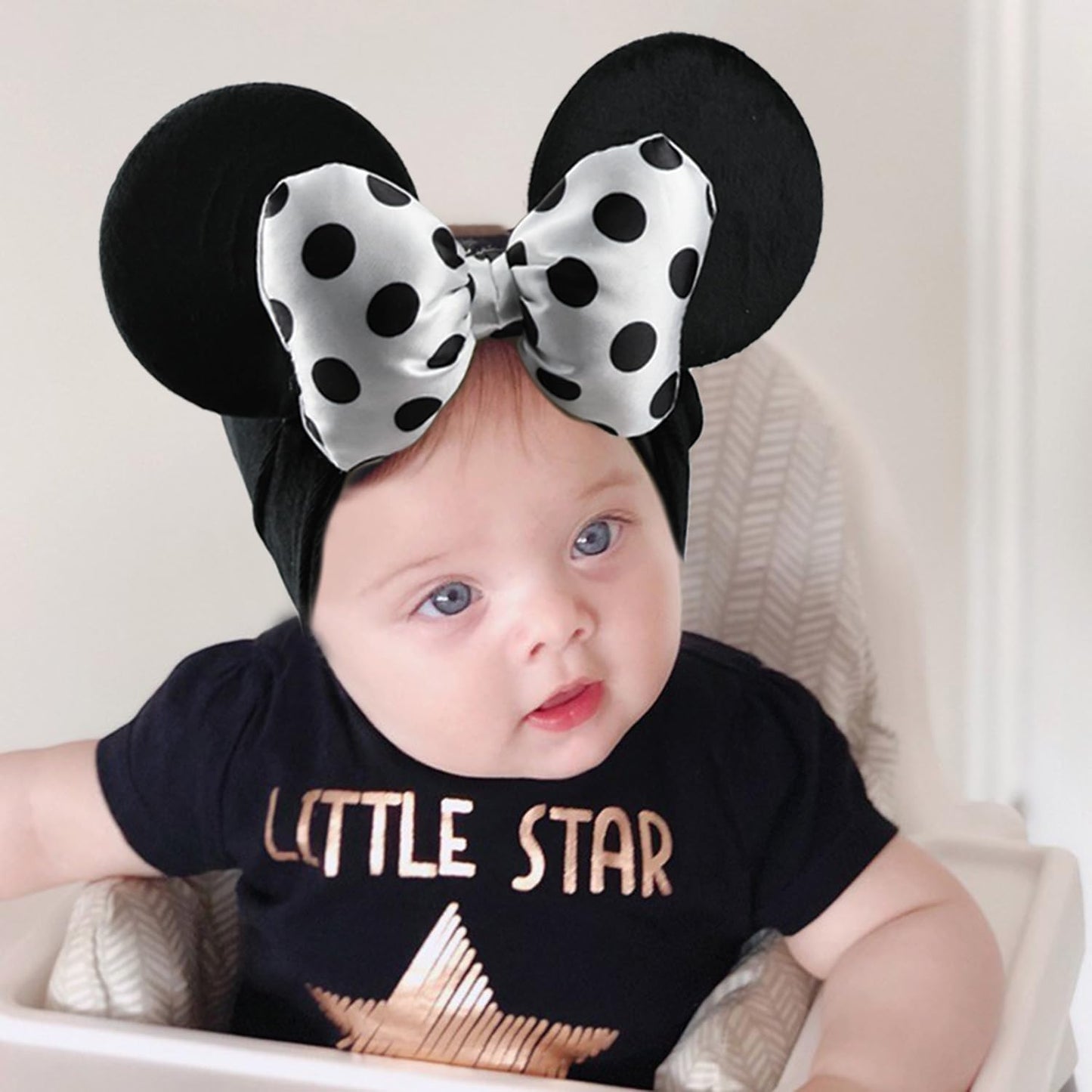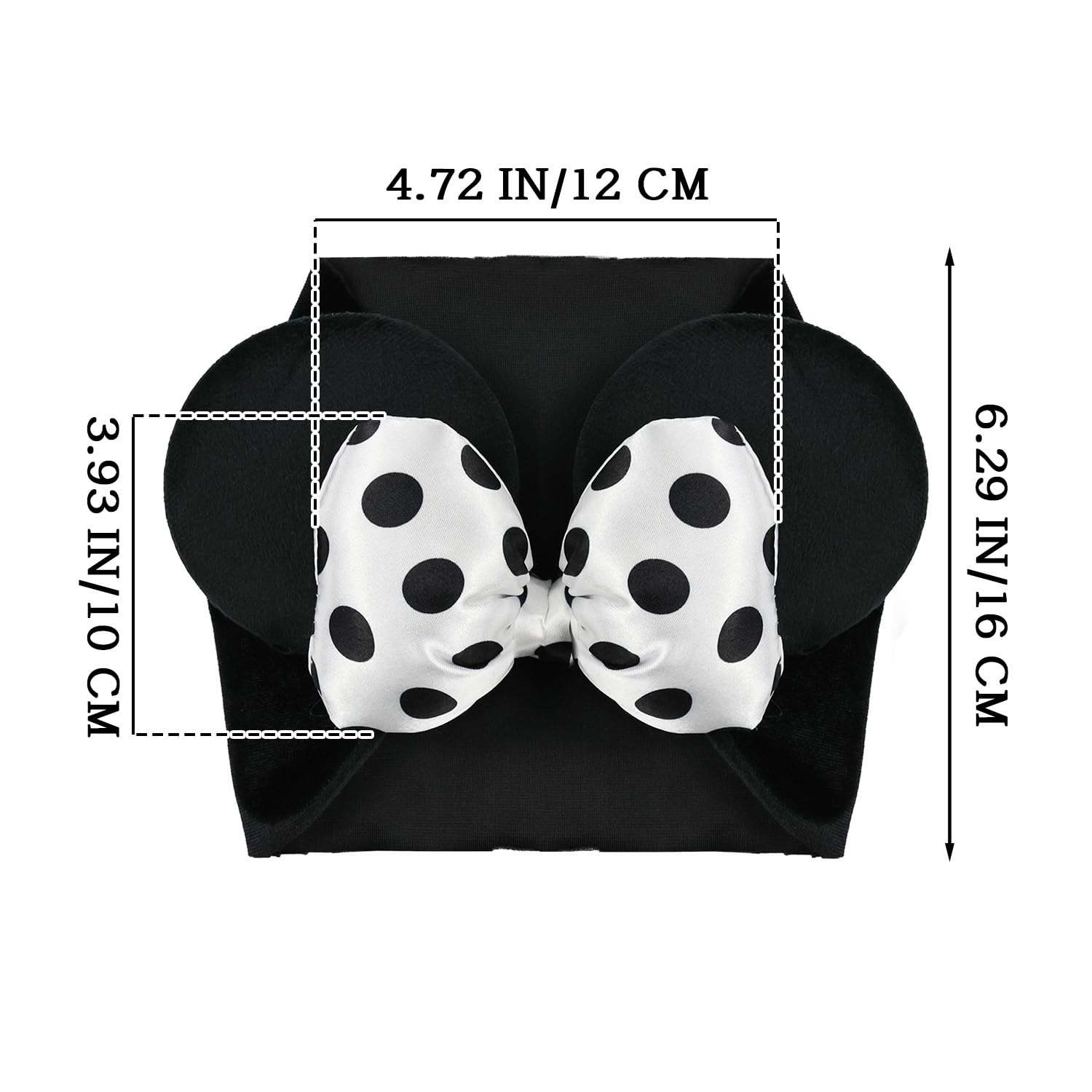 JIAHANG 3D Baby Girl Mouse Ears Turban Headwrap with Satin Polka Dot Bow, Wid...