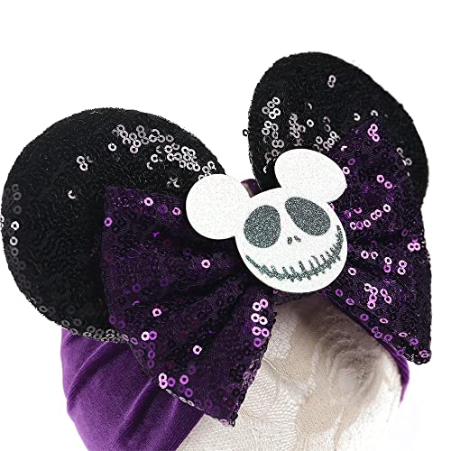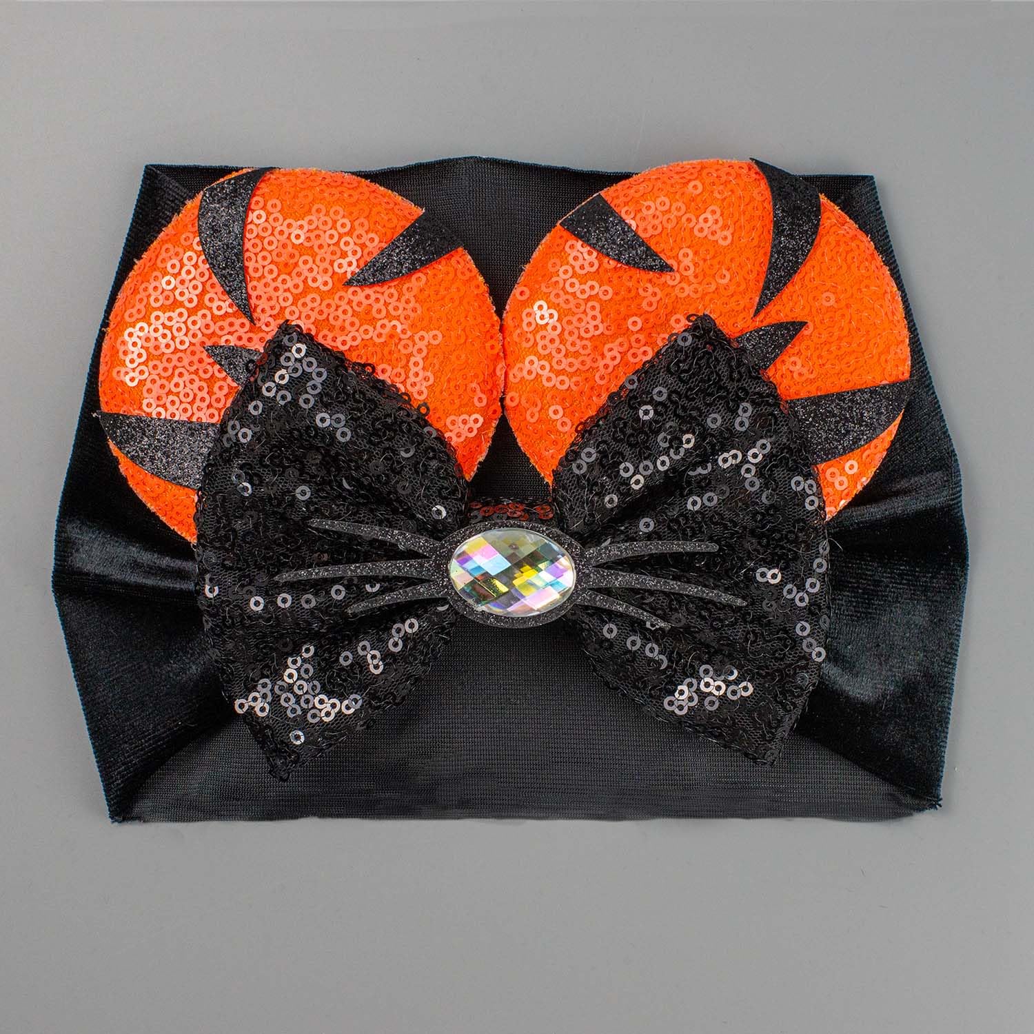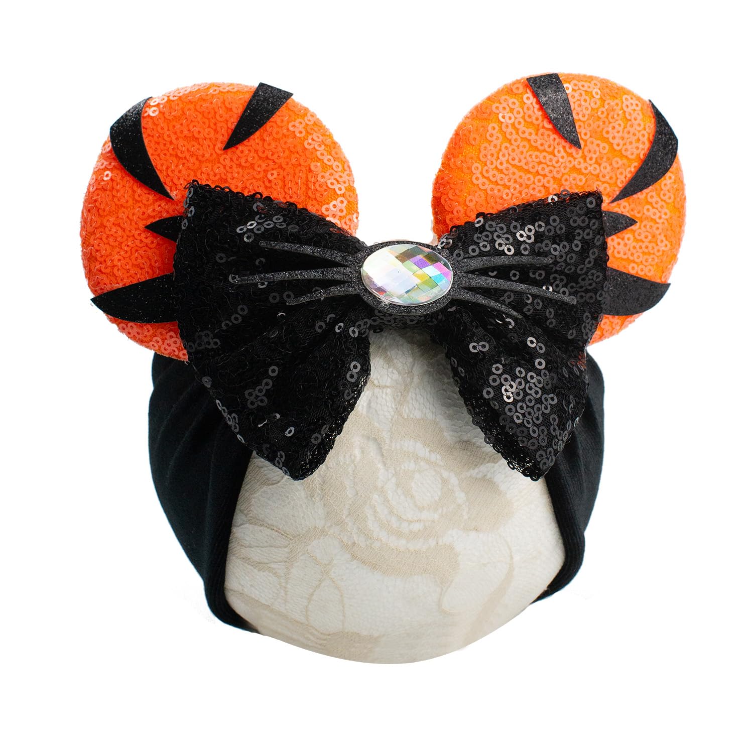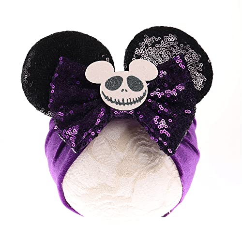 JIAHANG Baby Girl Mouse Ears Turban Headwrap with Gold Sequin Bows, Wide Velv...