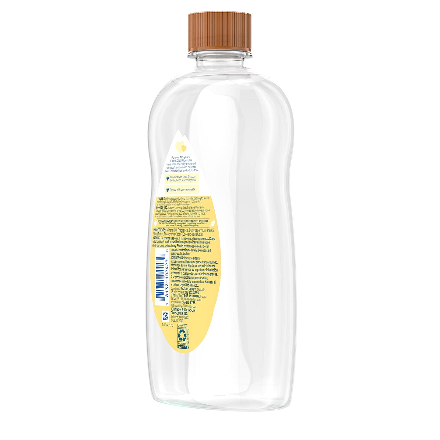 Johnson's Baby Oil, Mineral Oil Enriched with Shea & Cocoa Butter to Prevent Moisture Loss, Hypoallergenic, 20 fl. oz