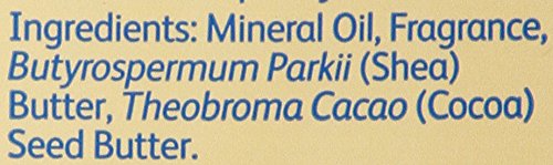 - 20-fluid ounce bottle of pure baby oil, enriched with shea & cocoa butter, formulated to help moisturize babies' delicate skin, and protect skin from dryness, great for relieving dry skin or rough patches