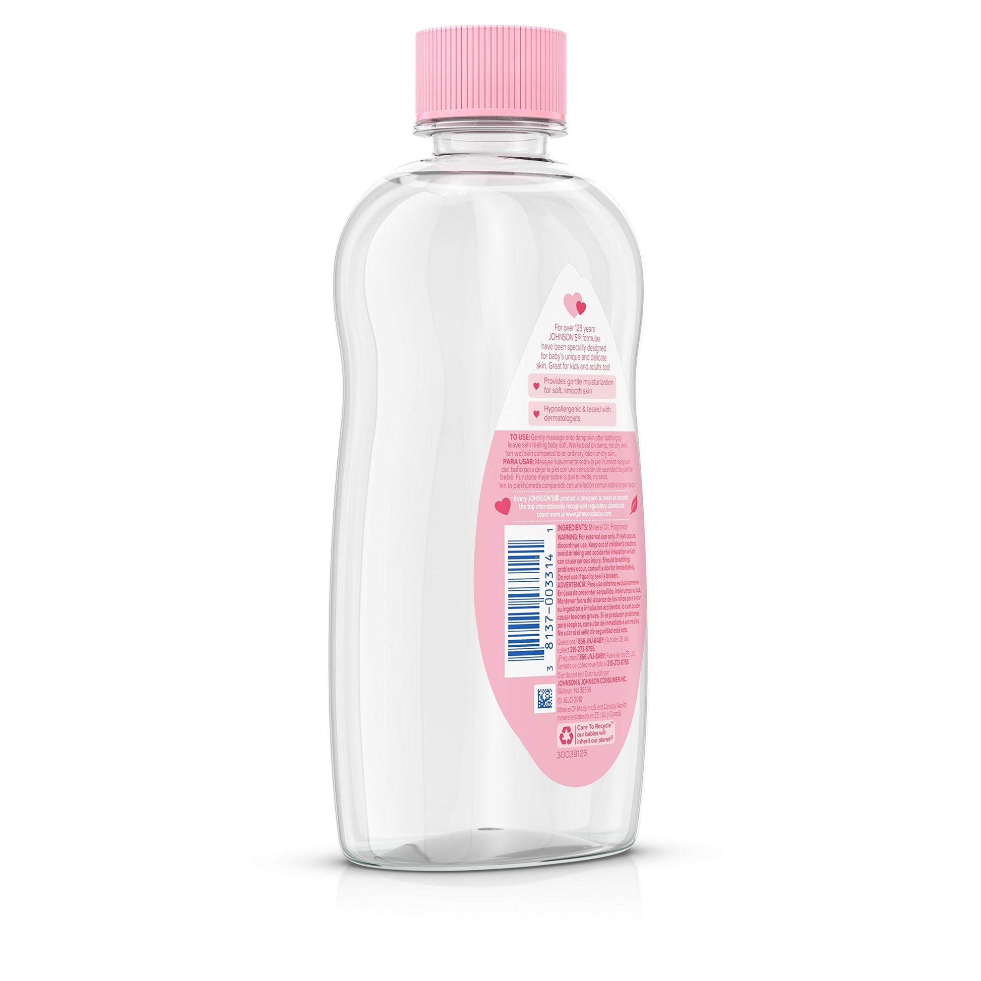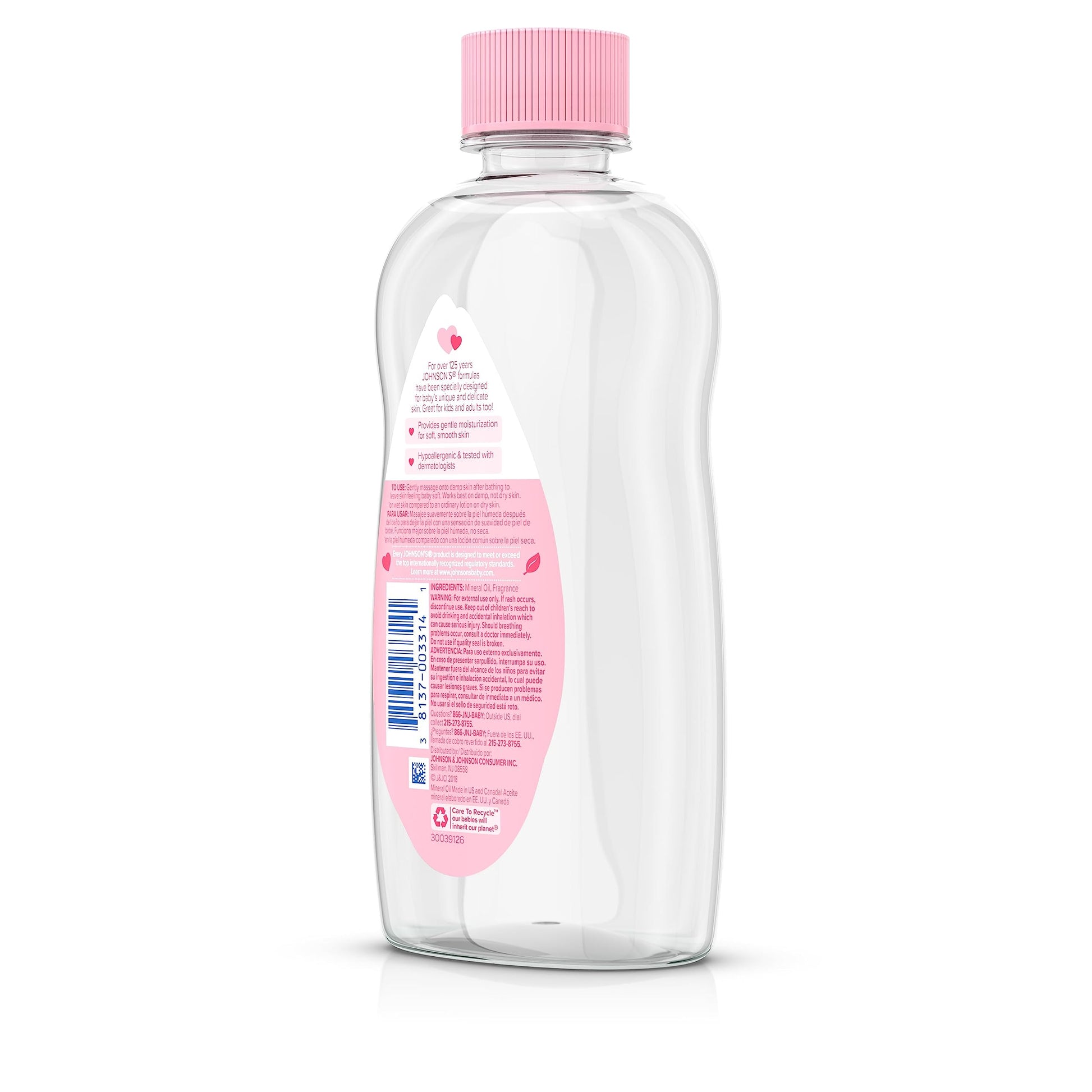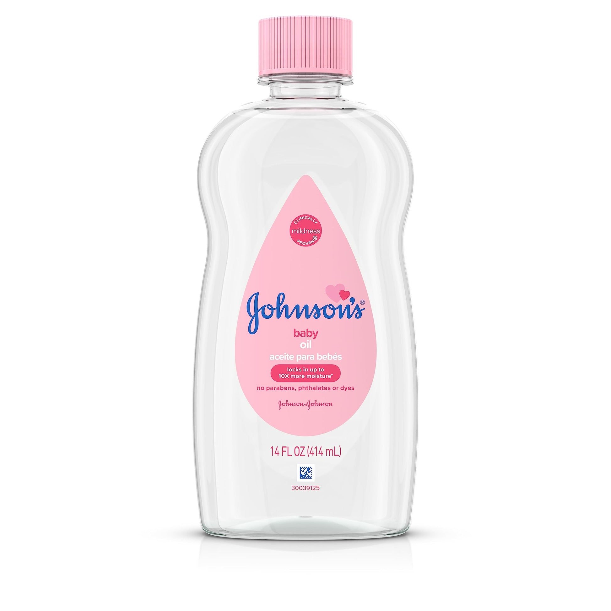 - 14-fluid ounce bottle of Johnson's Baby Oil, pure baby mineral oil in an original scent formulated to help moisturize baby's delicate skin, and gently helps to protect skin from dryness, great for relieving dry skin or rough patches