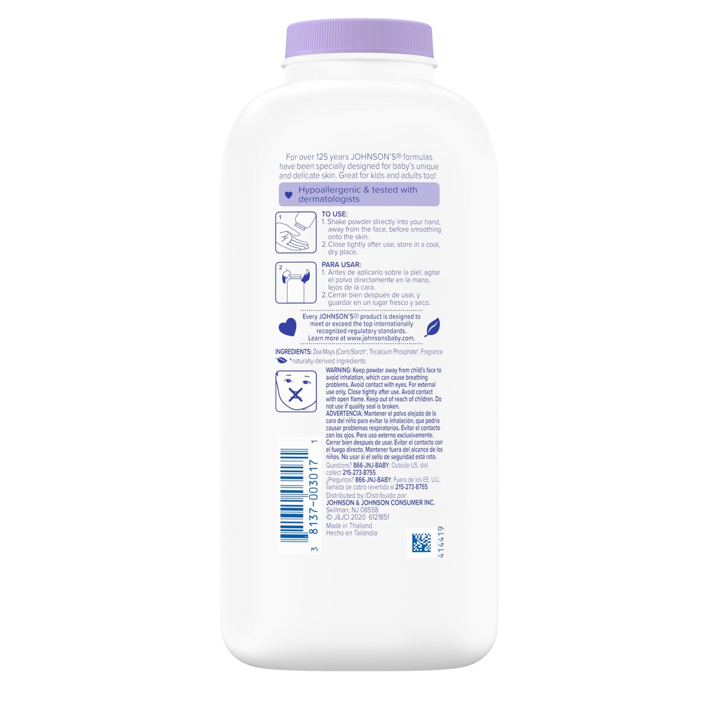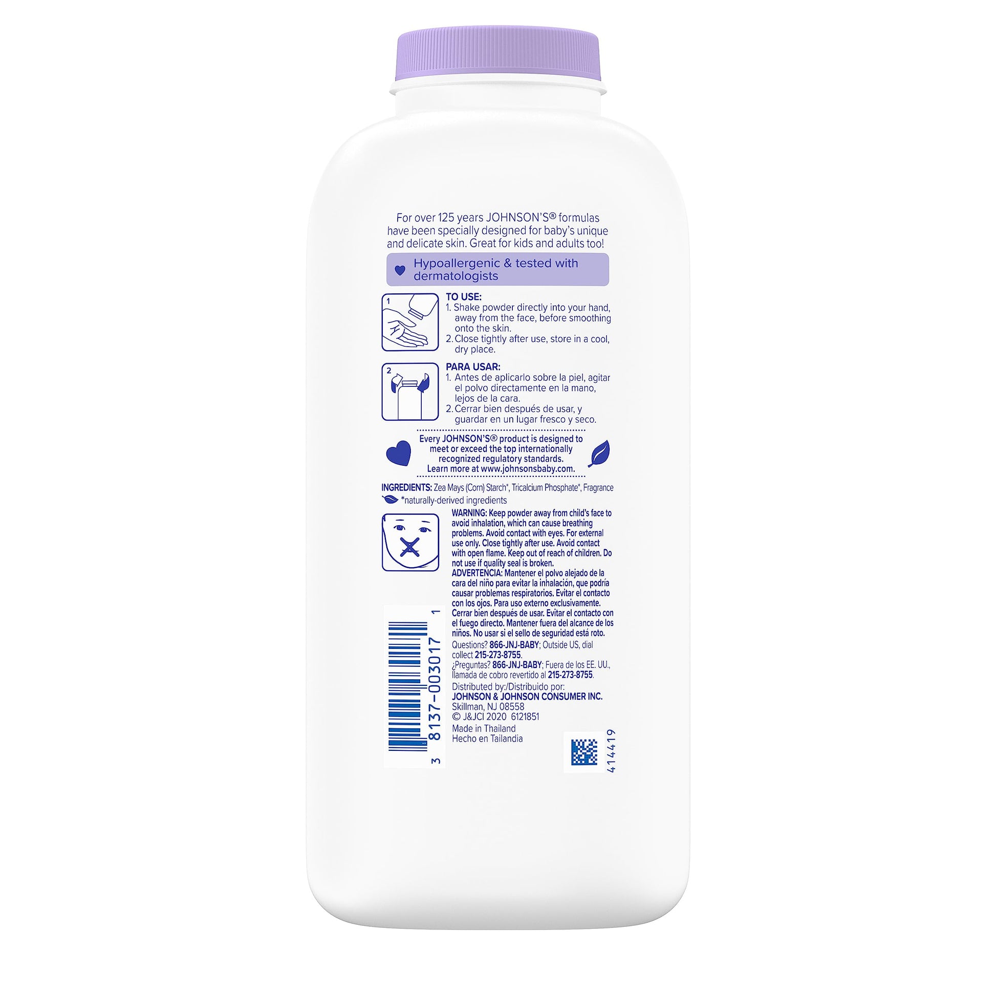 - For over 125 years, Johnson's formulas have been specifically designed for baby's delicate skin. To use, shake baby powder directly into your hand, away from the face, before smoothing onto the skin