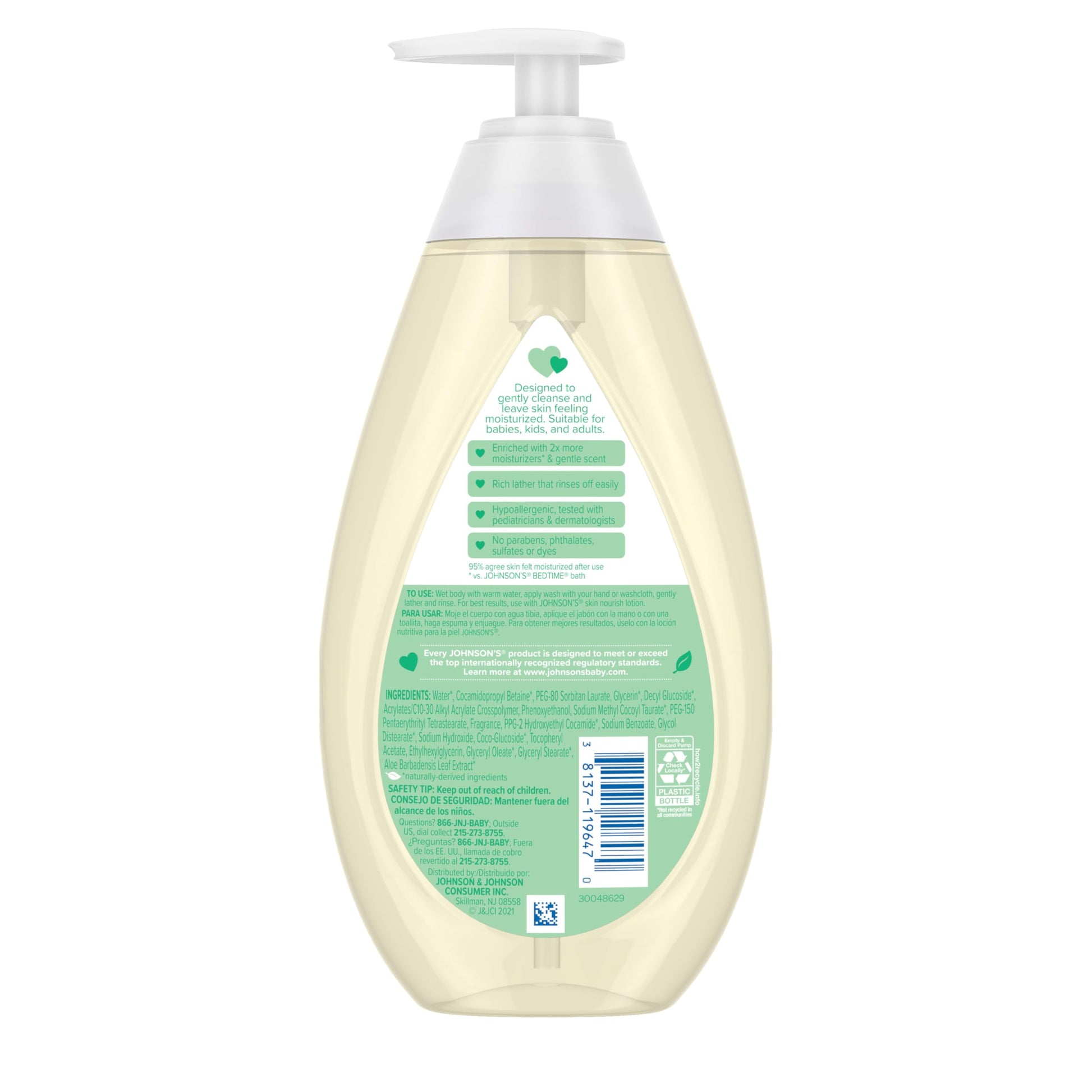 Gently cleanse your baby's delicate skin and hair with Johnson's Skin Nourish Moisture Vanilla & Oat Baby Body Wash. Suitable for babies, kids and adults, the body wash is designed to cleanse and leave skin feeling moisturized and touchably soft and smooth. Enriched with 2x more moisturizers* and a gentle vanilla & oat scent, 95% agree that skin felt moisturized after use. This baby wash has a No More Tears tear-free formula that's as gentle to the eyes as pure water. Formulated to be gentle, never harsh, the hypoallergenic baby bath wash is dermatologist and pediatrician tested and contains no parabens, phthalates, sulfates, or dyes. To use, wet baby's body with warm water, apply wash with your hand or washcloth, gently lather, and rinse. *Vs. Johnson's Bedtime Bath