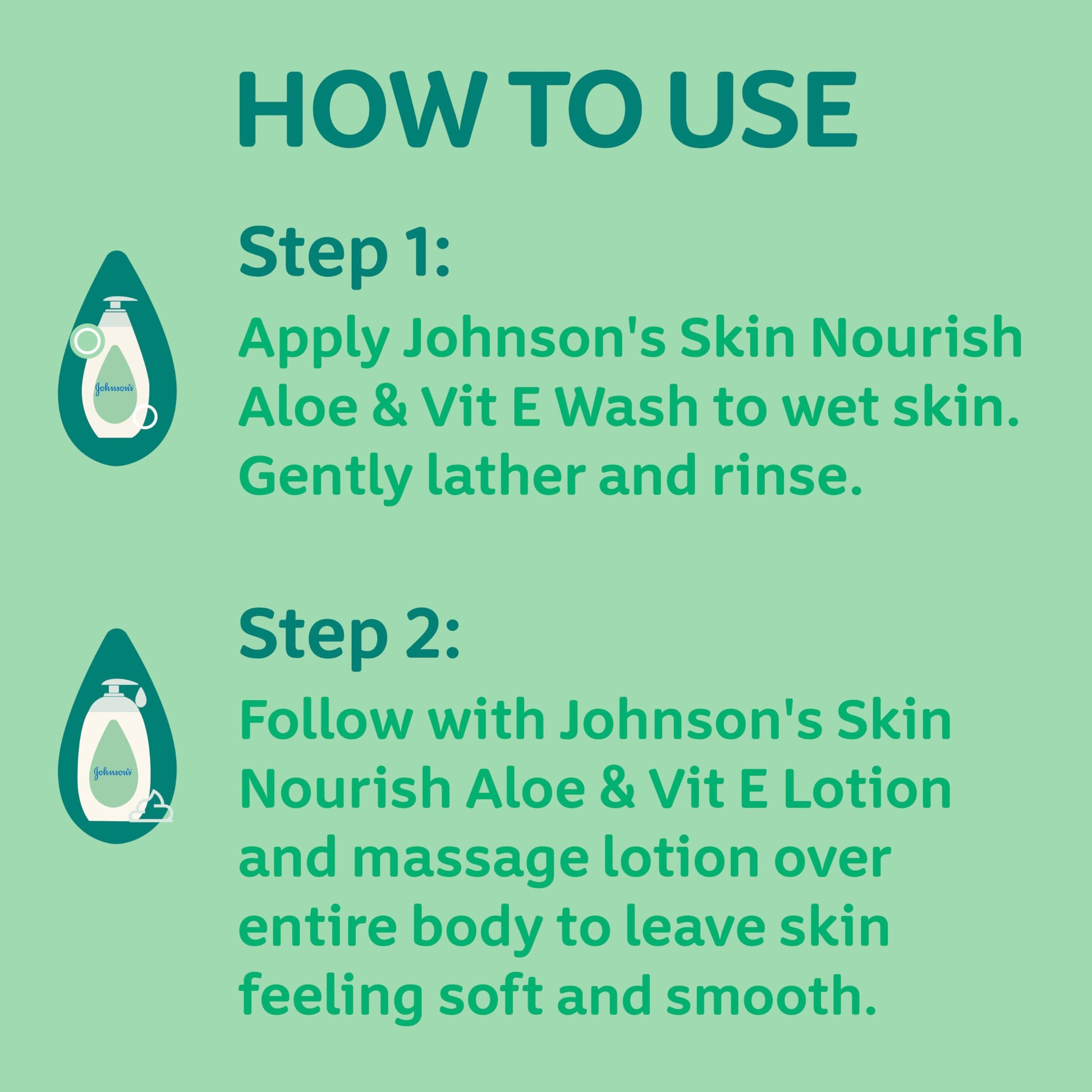 - 20.3-fluid ounces of Johnson's Skin Nourish Moisture Baby Body Wash enriched with vanilla & oat scents to gently cleanse baby's delicate skin and hair, leaving your little one's skin feeling touchably soft and smooth