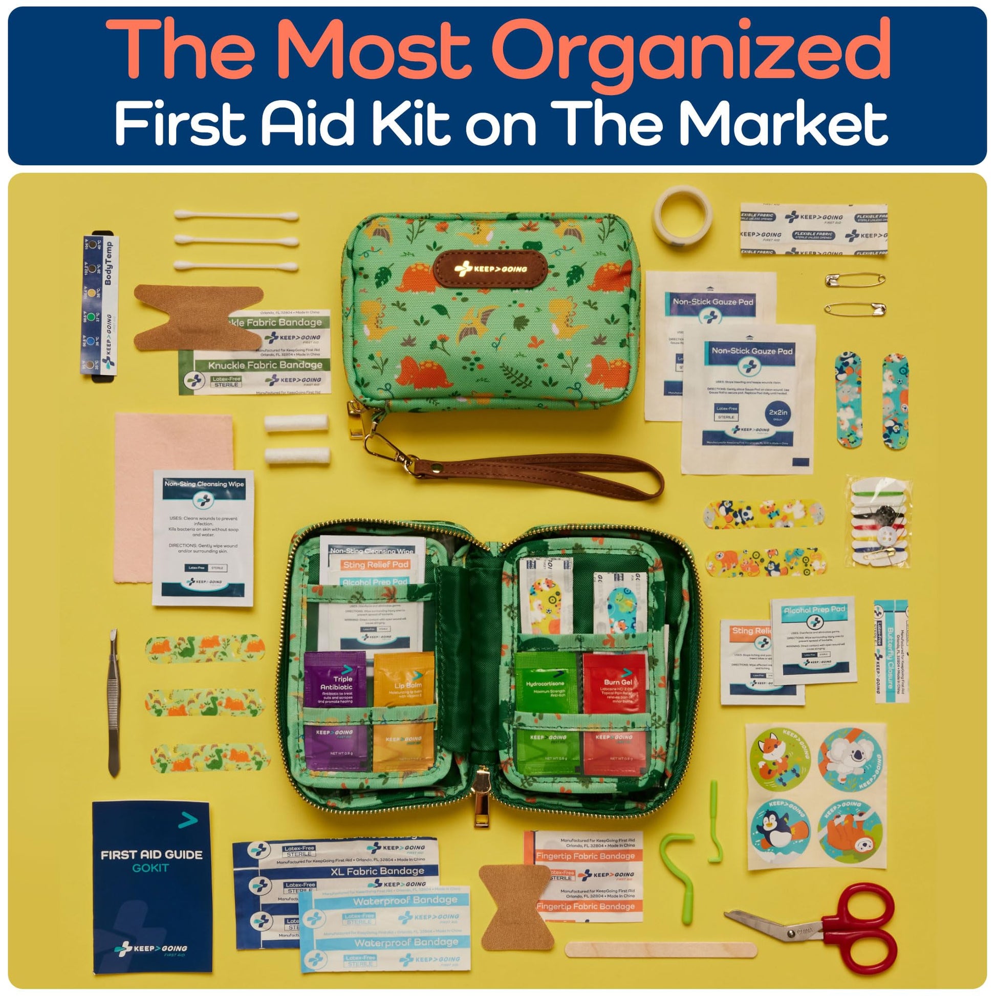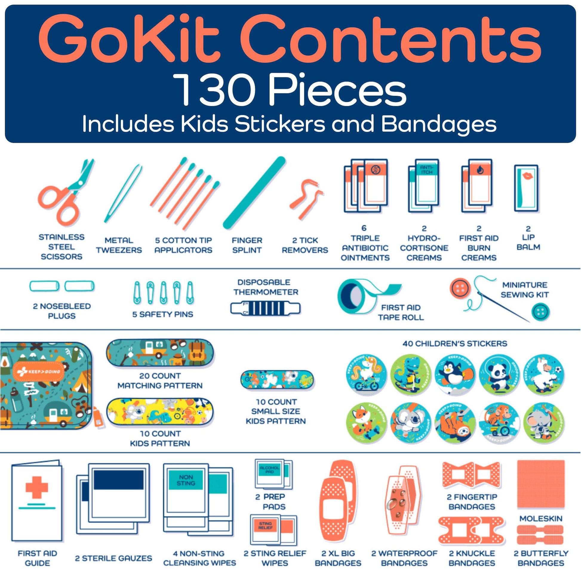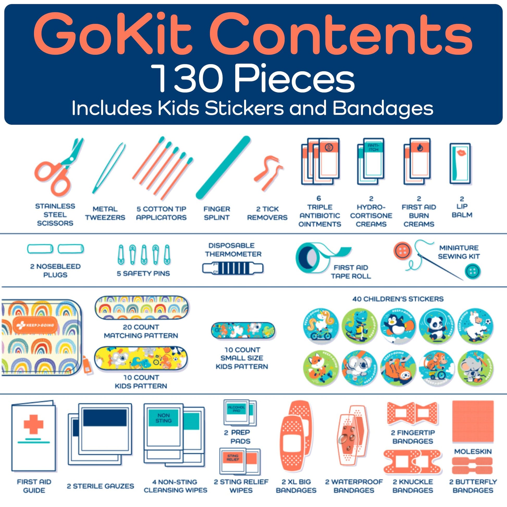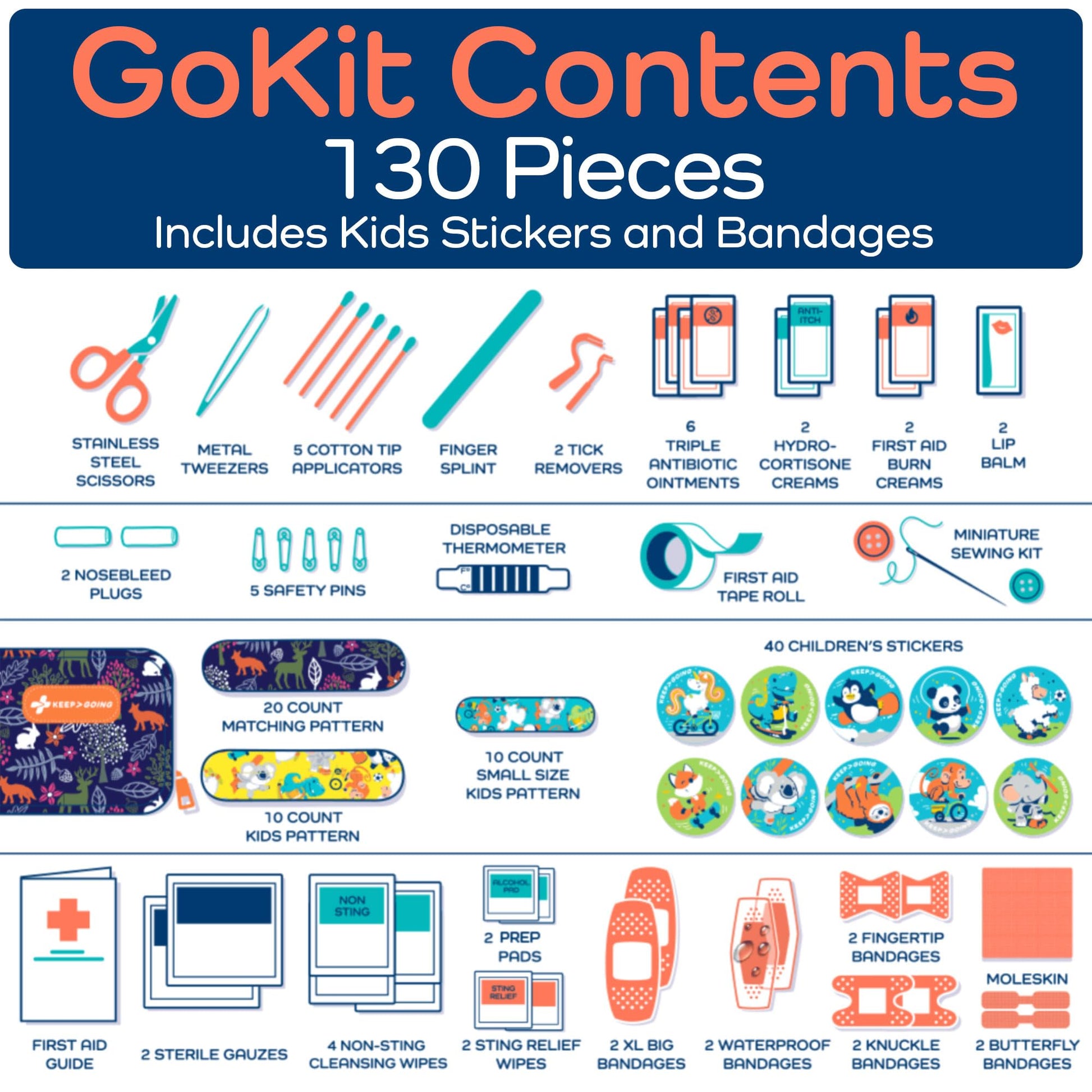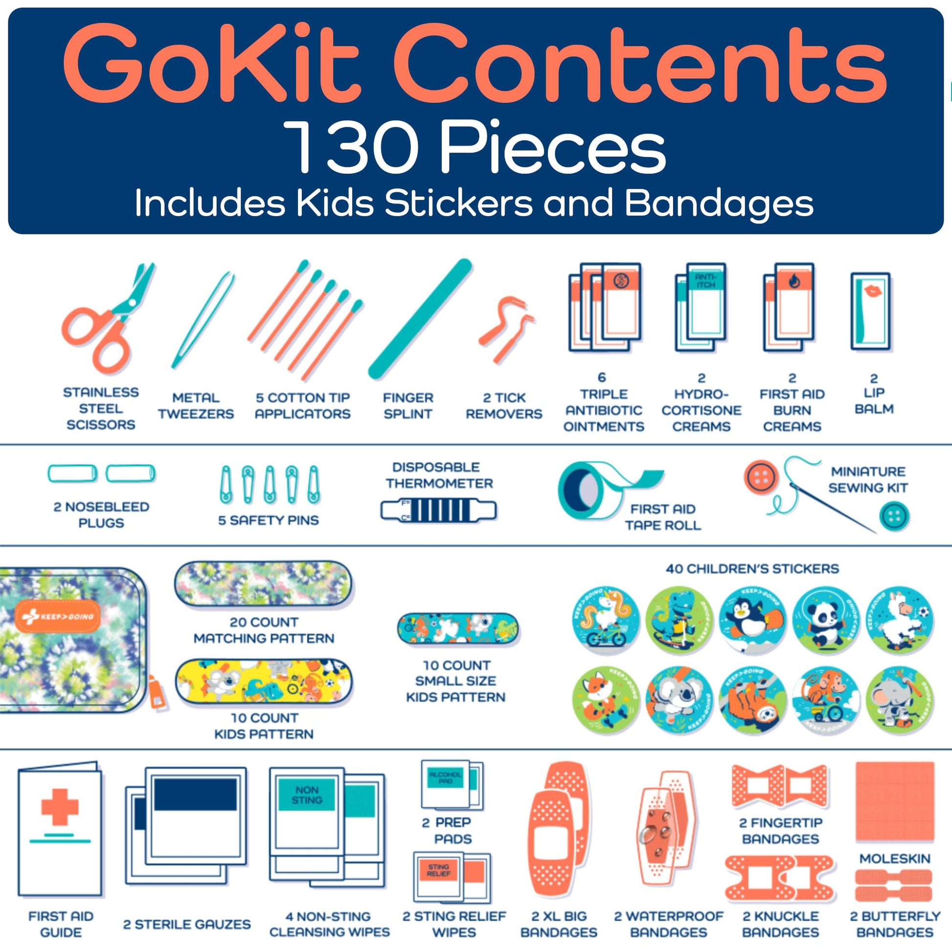 KeepGoing Travel First Aid Kit for Kids – 130 Pc. for Car, Home, Purse, Diaper Bag & Backpack with Latex-Free Bandages - Mini First Aid Kit Travel Size TSA-Approved