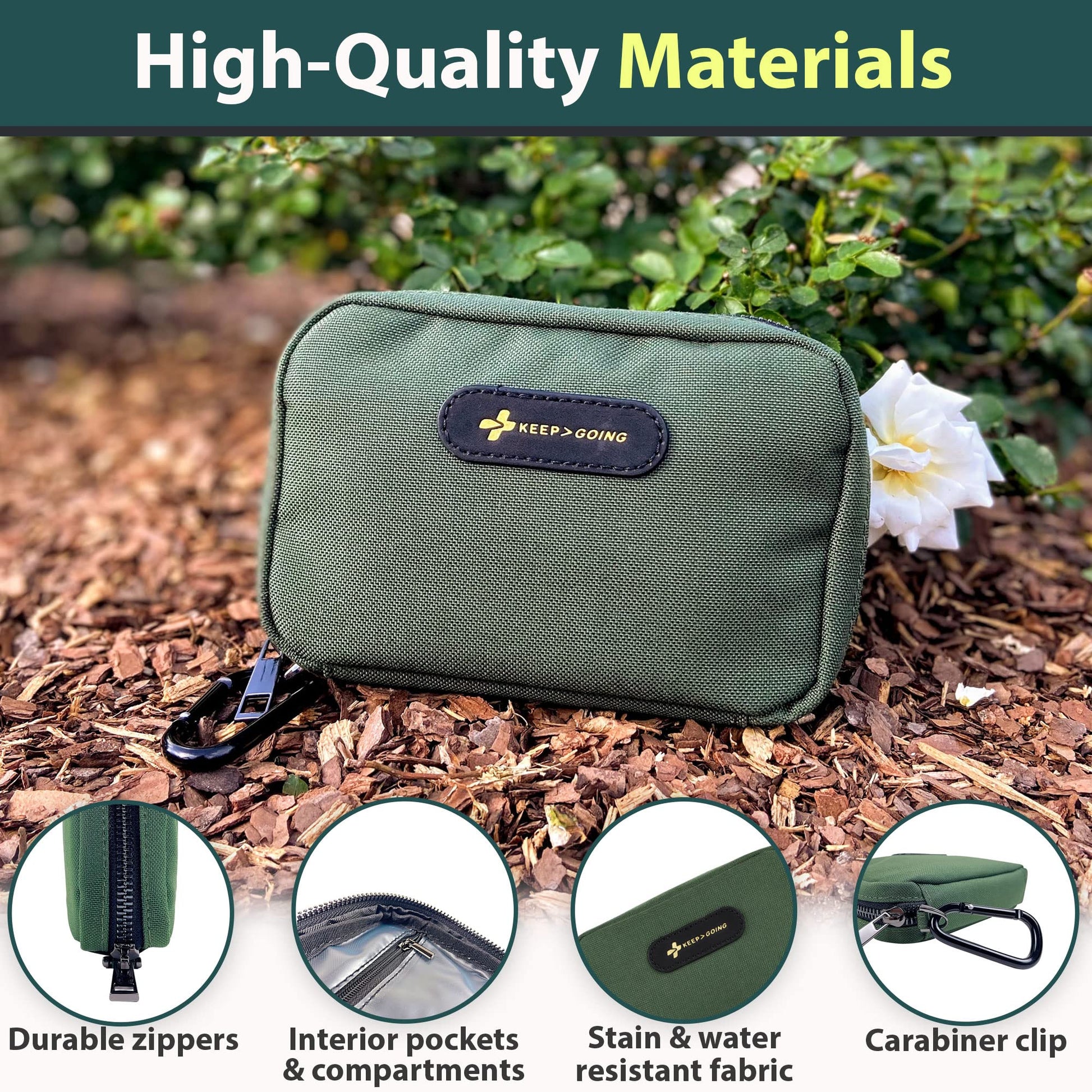 - Travel in Style – Most first aid kits look so clinical—upgrade your small first aid kit for travel to a fashionable one. Your cute first aid kit fits into a suitcase, diaper bag, purse, or backpack.