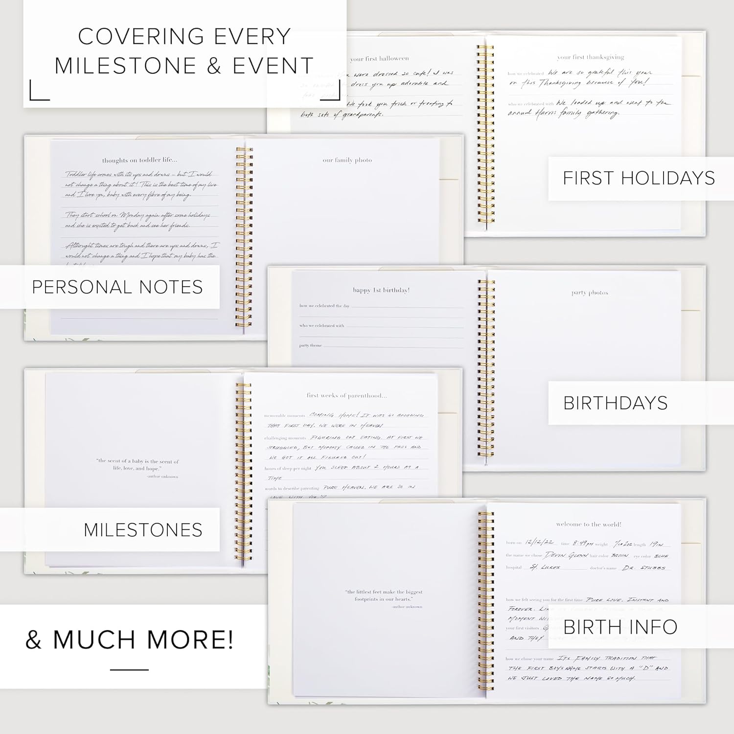 - Modern Baby Book For Lasting Memories: From where the grand family adventure began to all the big milestones of your little one - thanks to the baby keepsake book you can keep precious moments from pre-birth through to the first 5 years collected in one place!