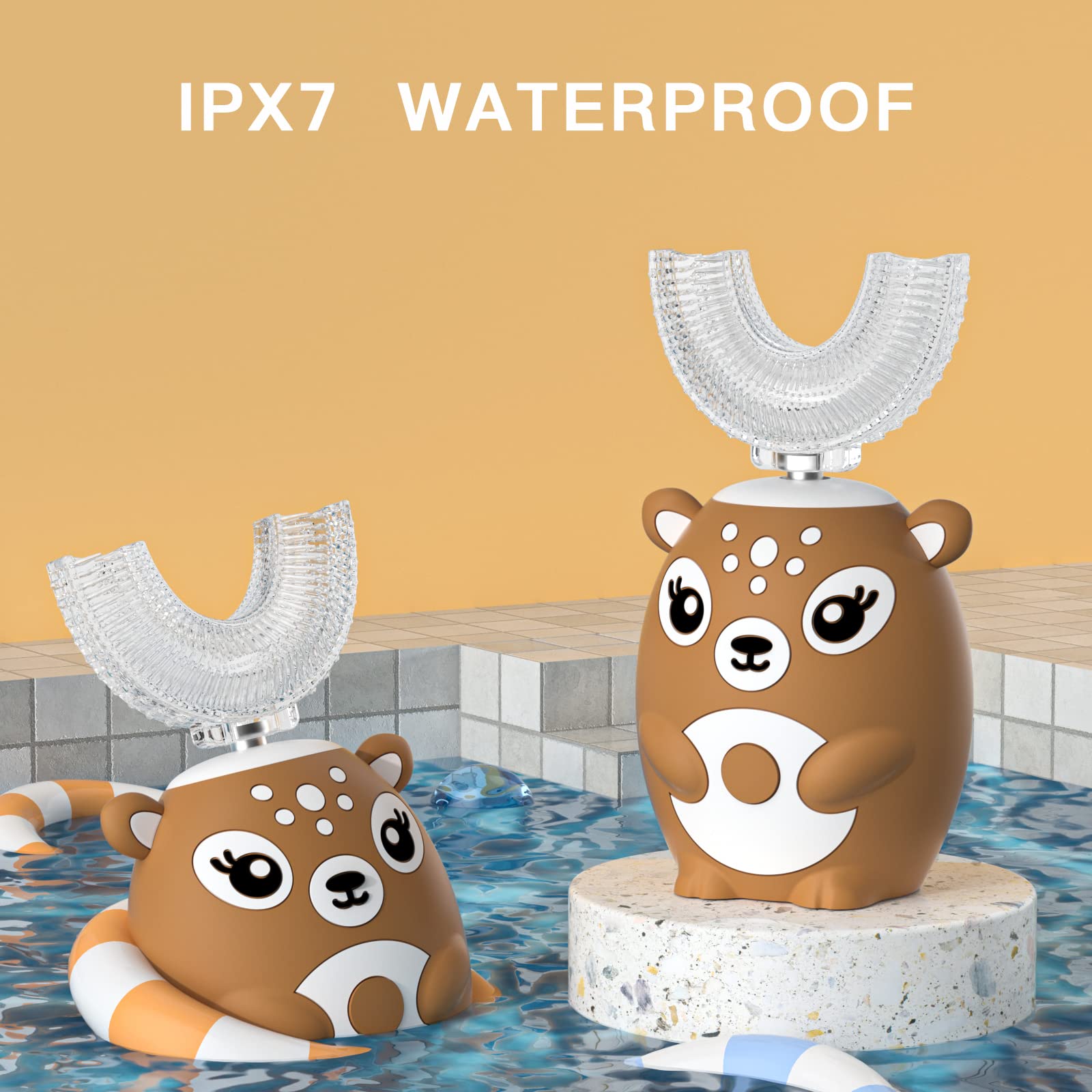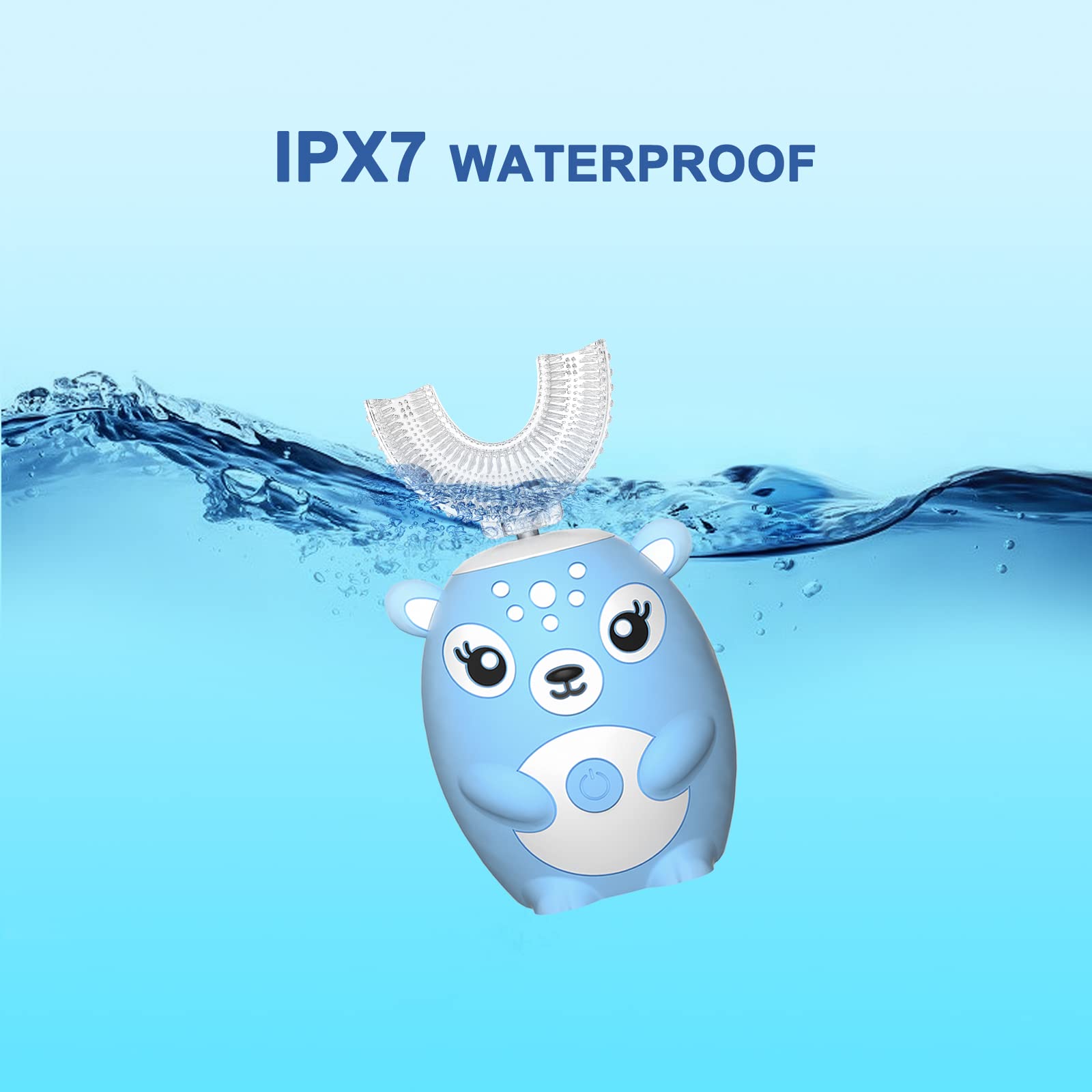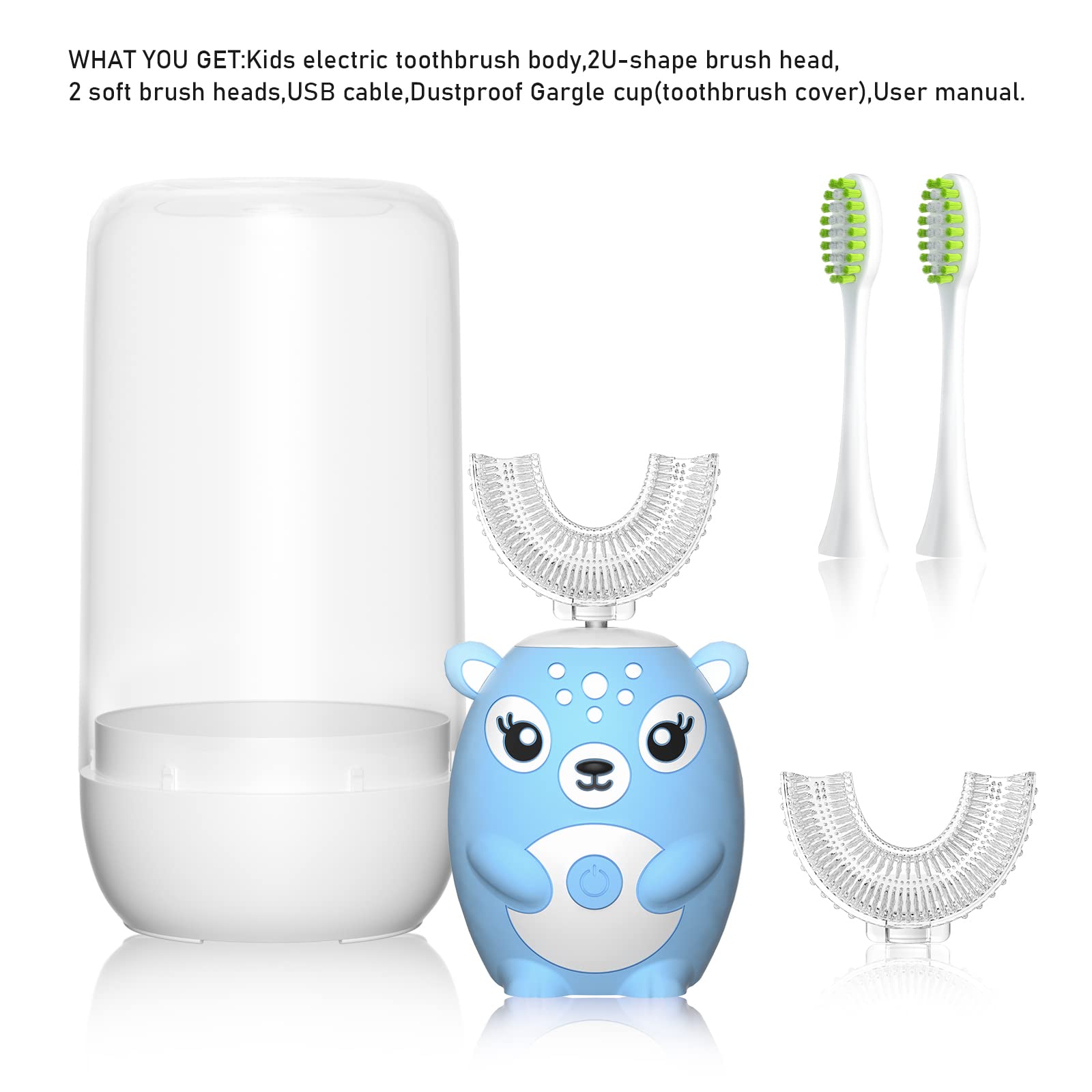 - WHAT YOU GET: Kids electric toothbrush body, 2 U-shape brush head, 3 soft brush heads, USB cable, Dustproof cup(toothbrush cover), User manual