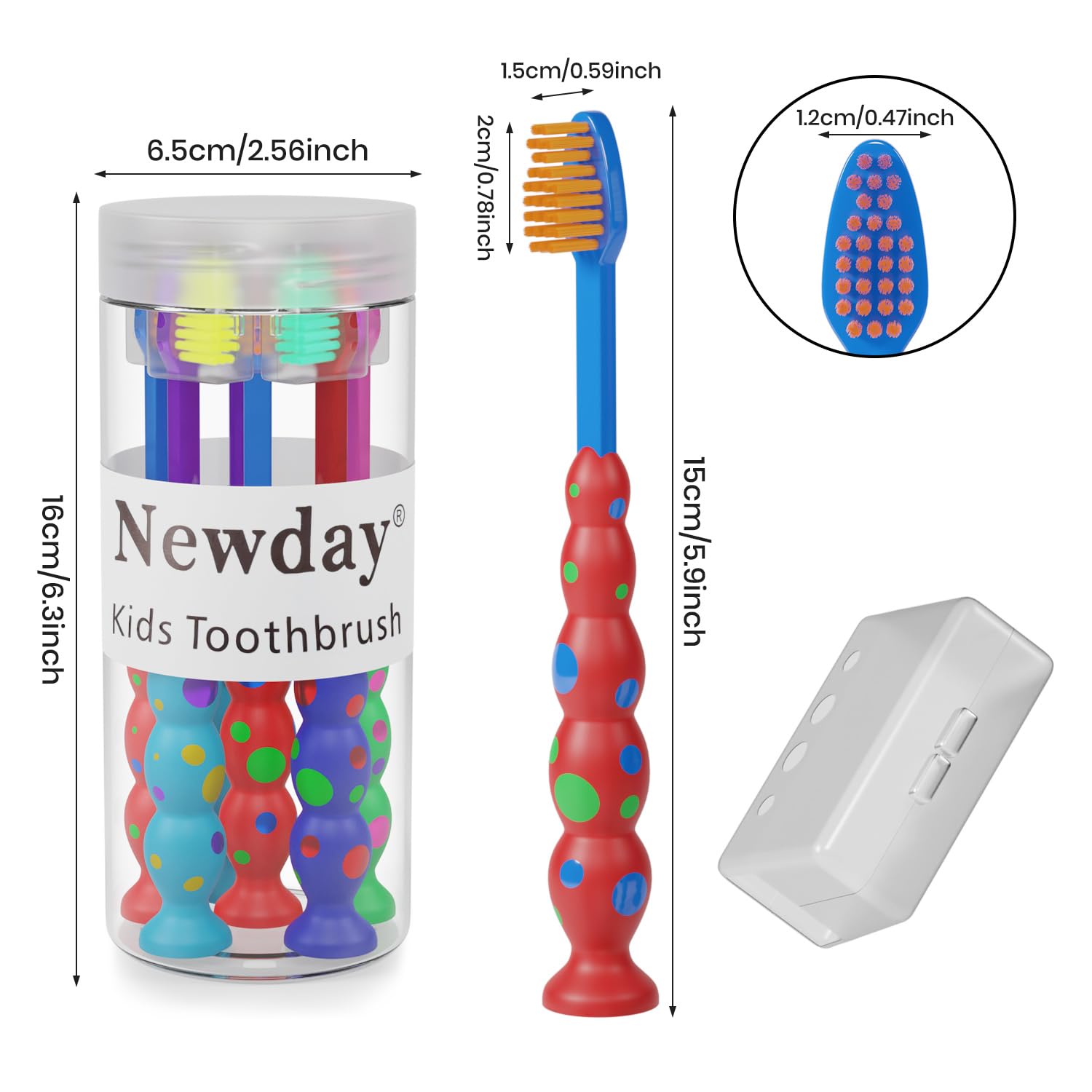 Newday Kids toothbrushes 6 Pack Set Soft Bristles with Suction Cup, Includes ...