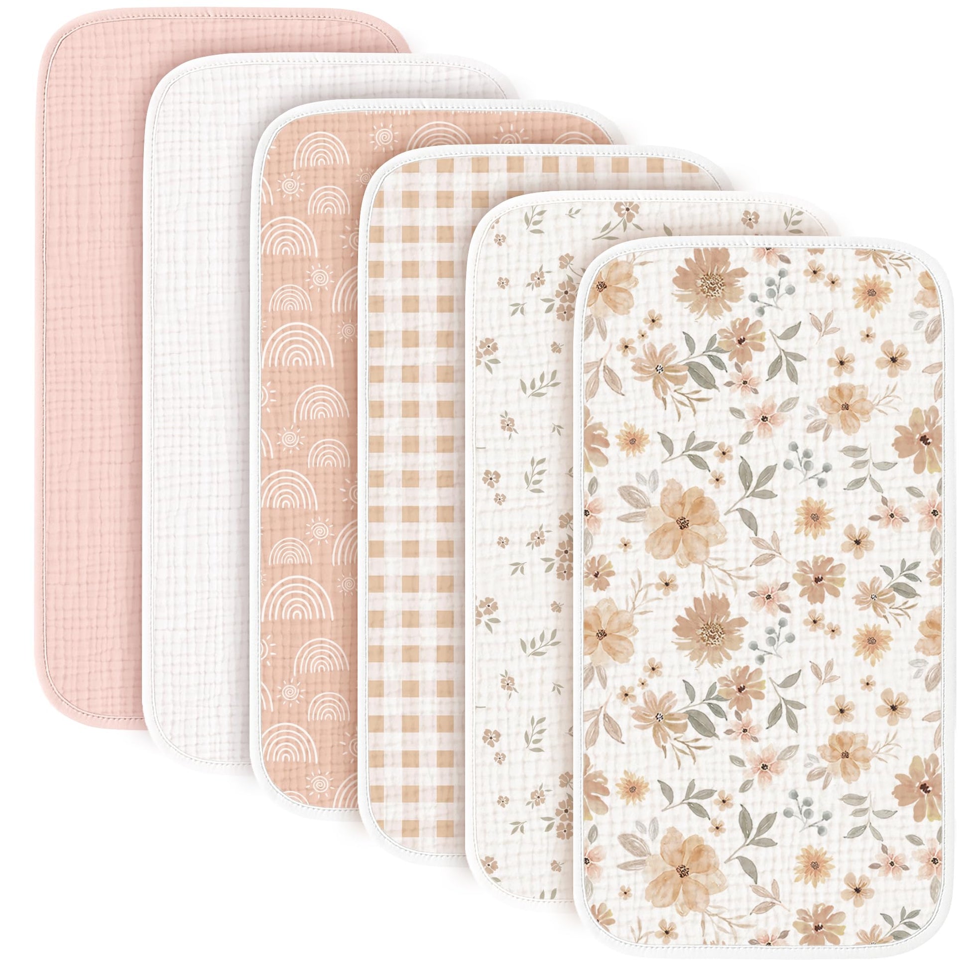 - Set of 6 Burp Cloths: Each burp cloth is thoughtfully crafted with classic designs and versatile colors, making them a great match for any outfit, great for both boys and girls. A stylish and practical solution for new moms