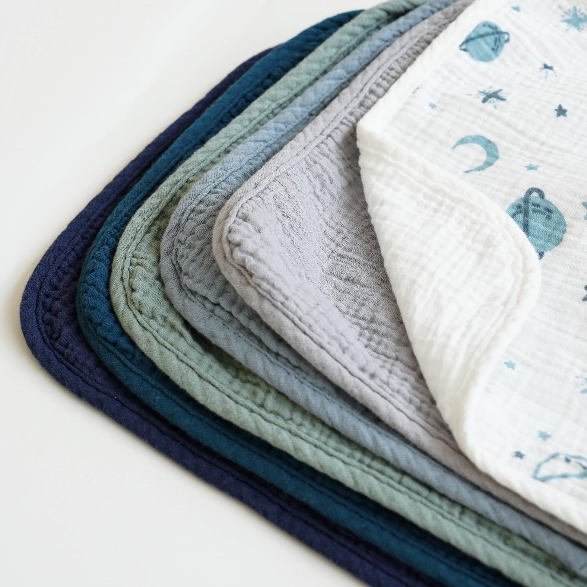 Various burp cloths, each offering gentle care