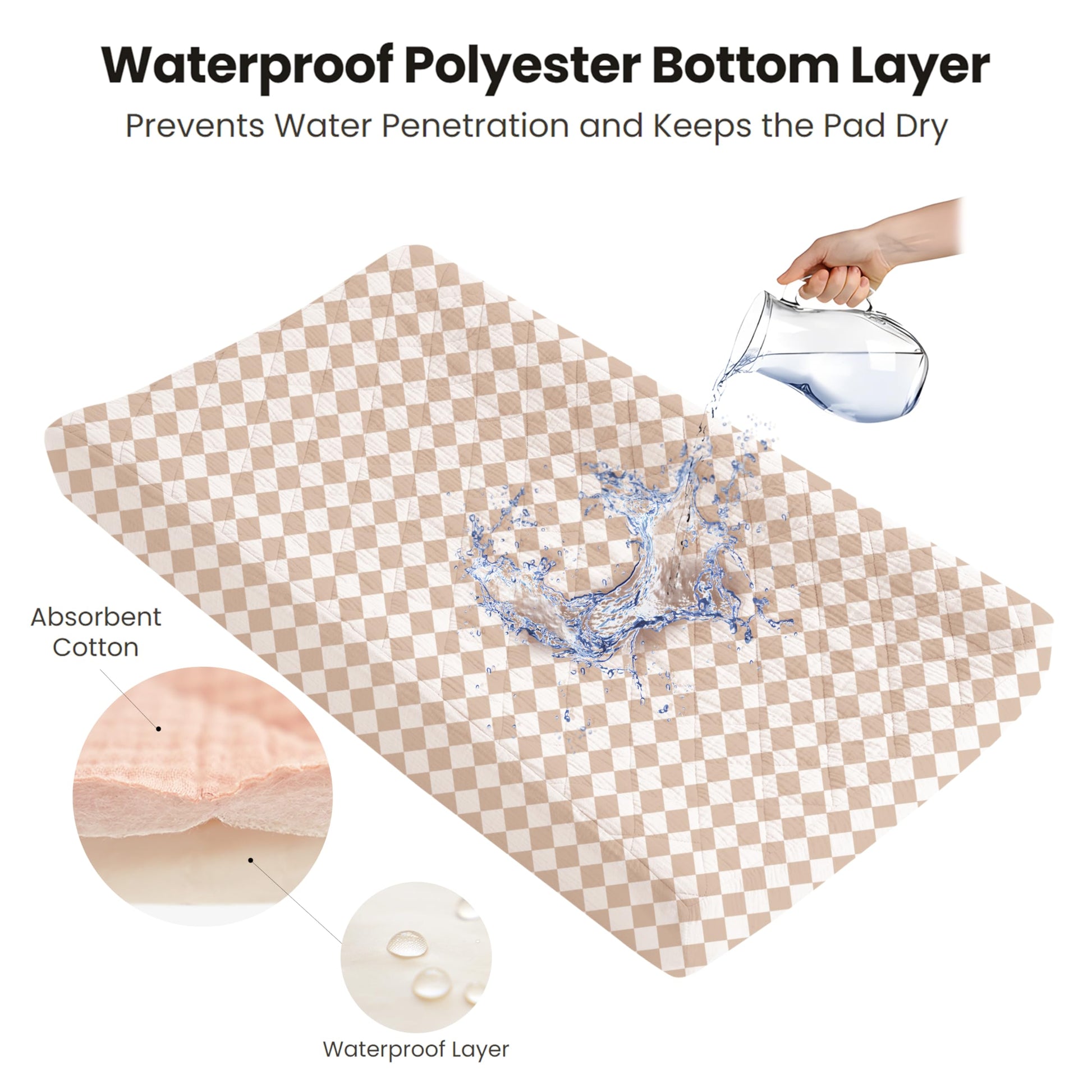 - Absorbent Surface and Waterproof Bottom: Our quilted cotton surface is highly absorbent and designed to trap air, providing a soft and comfortable feel. Meanwhile, it features a 100% waterproof polyester backside, designed with a seamless construction to prevent leakage. This ensures superior protection against sweat and any liquids, so you won't need extra liners.