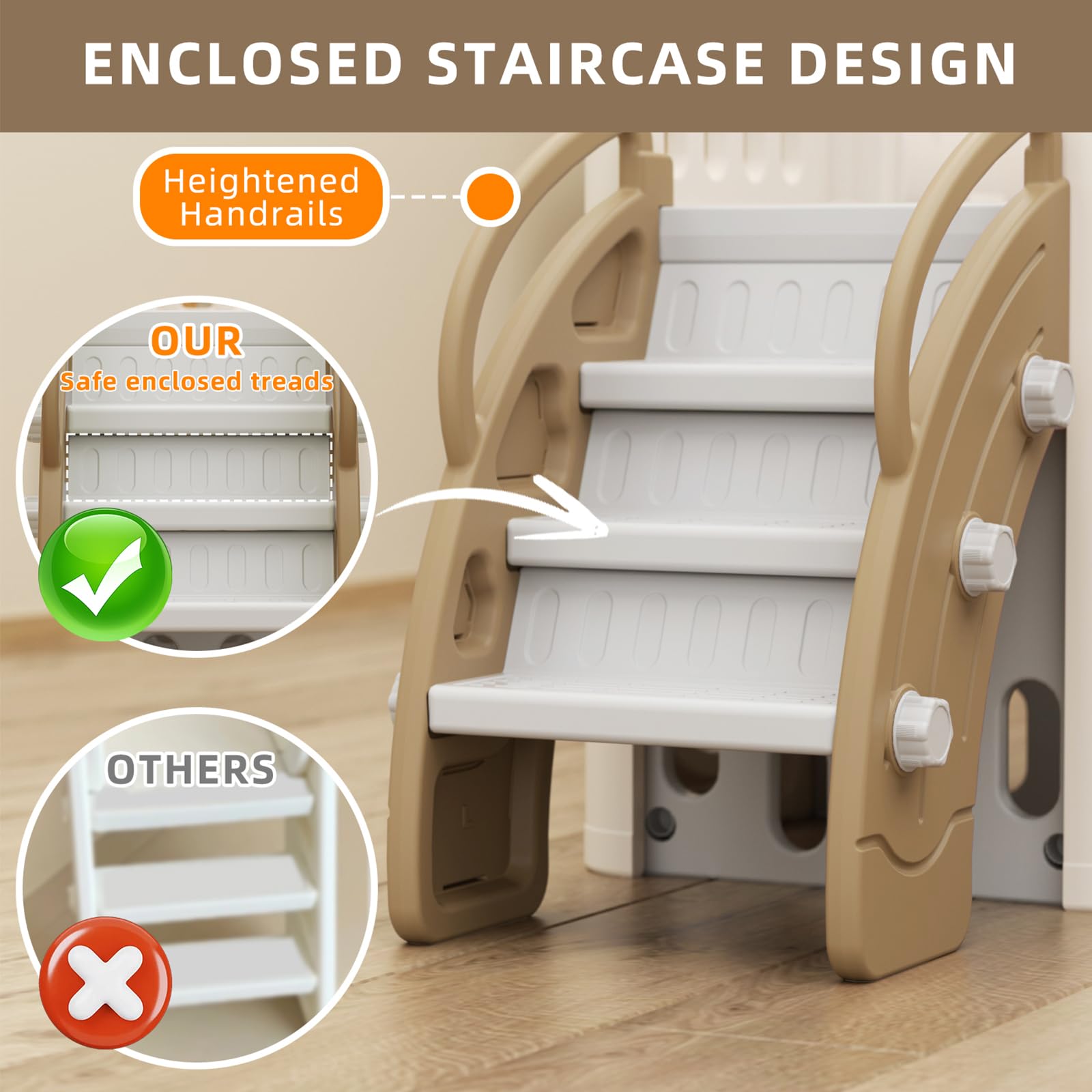 - Durable and Safe: Made from non-toxic HDPE material, this playset boasts anti-slip steps, full-length handrails, and a cushioned slide for a secure and thrilling play experience. Sturdy construction ensures stability and safety.