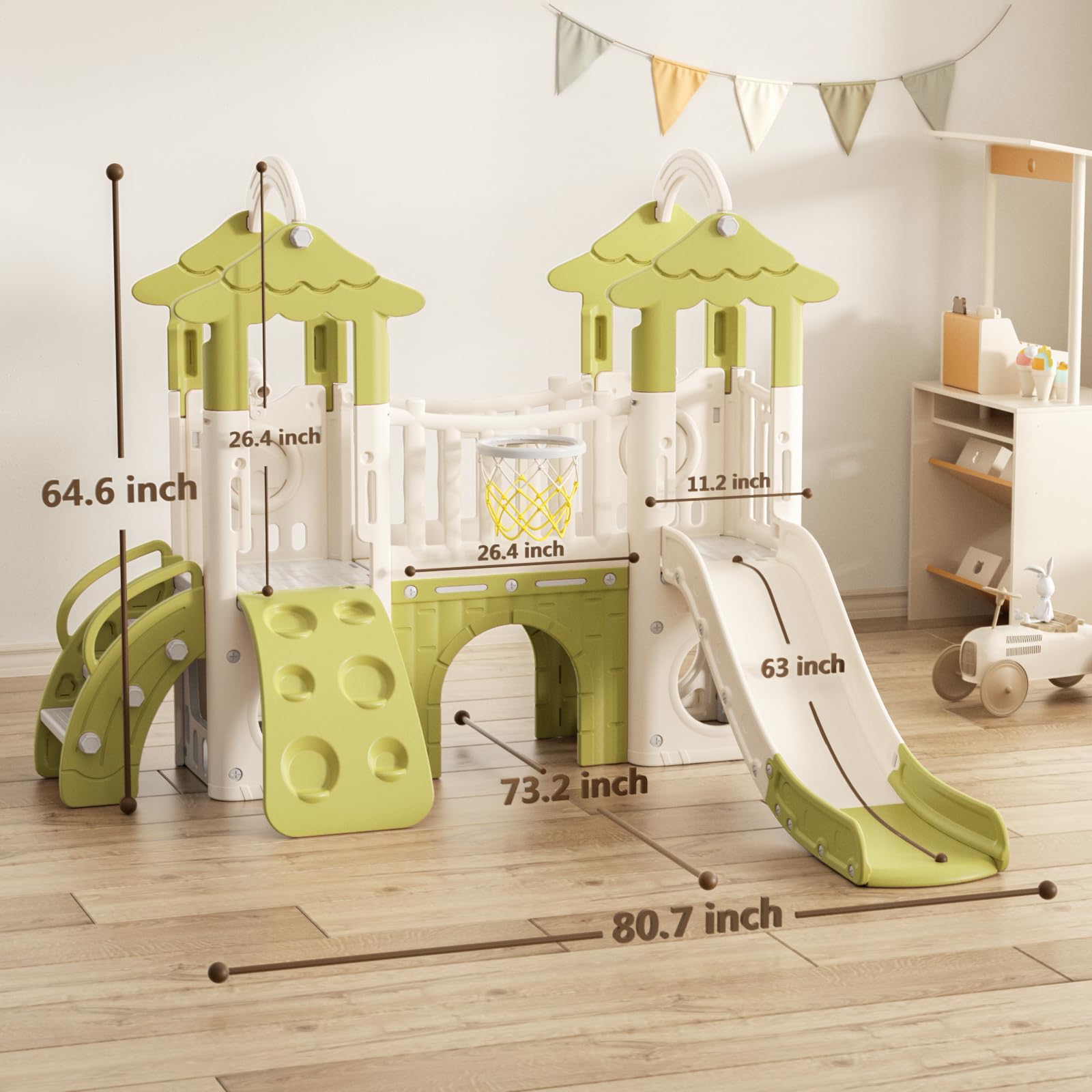 - Compact and Spacious: Measuring 80.7" L x 73.2" W x 64.6" H, this playset is designed for toddlers 1-3, offering ample space for safe and active play in any setting.